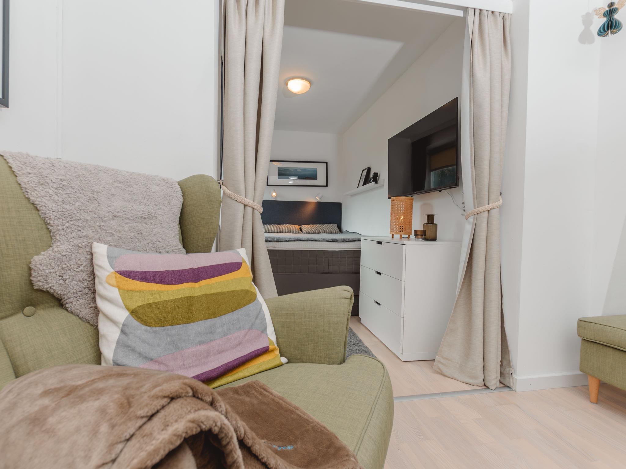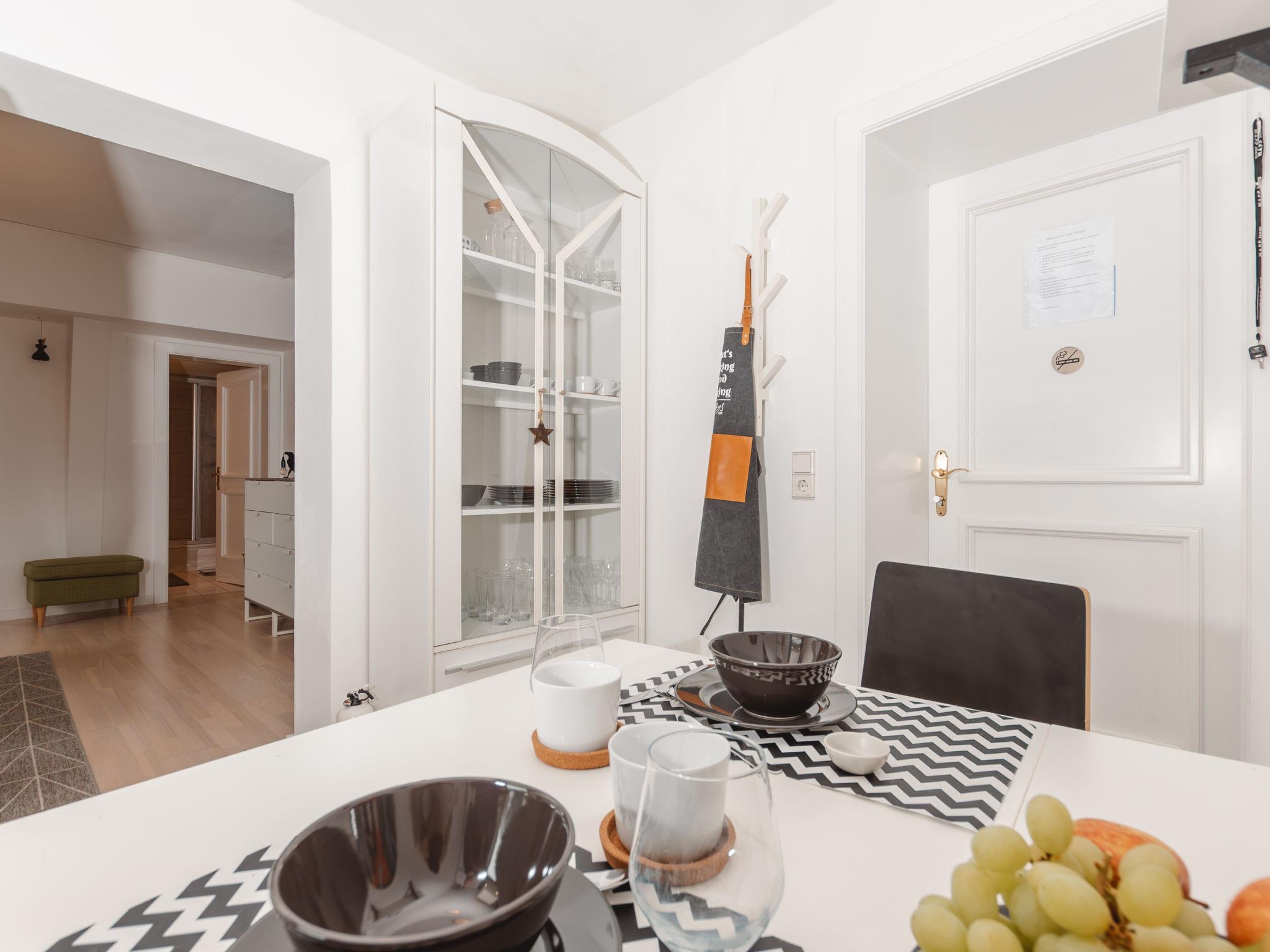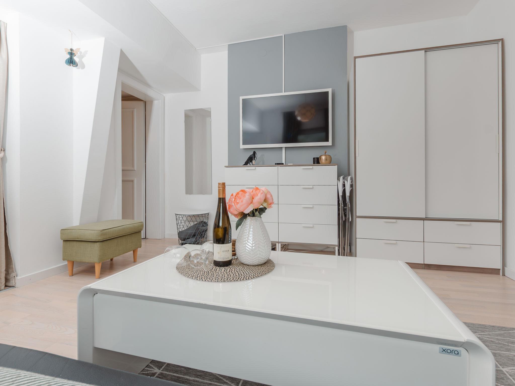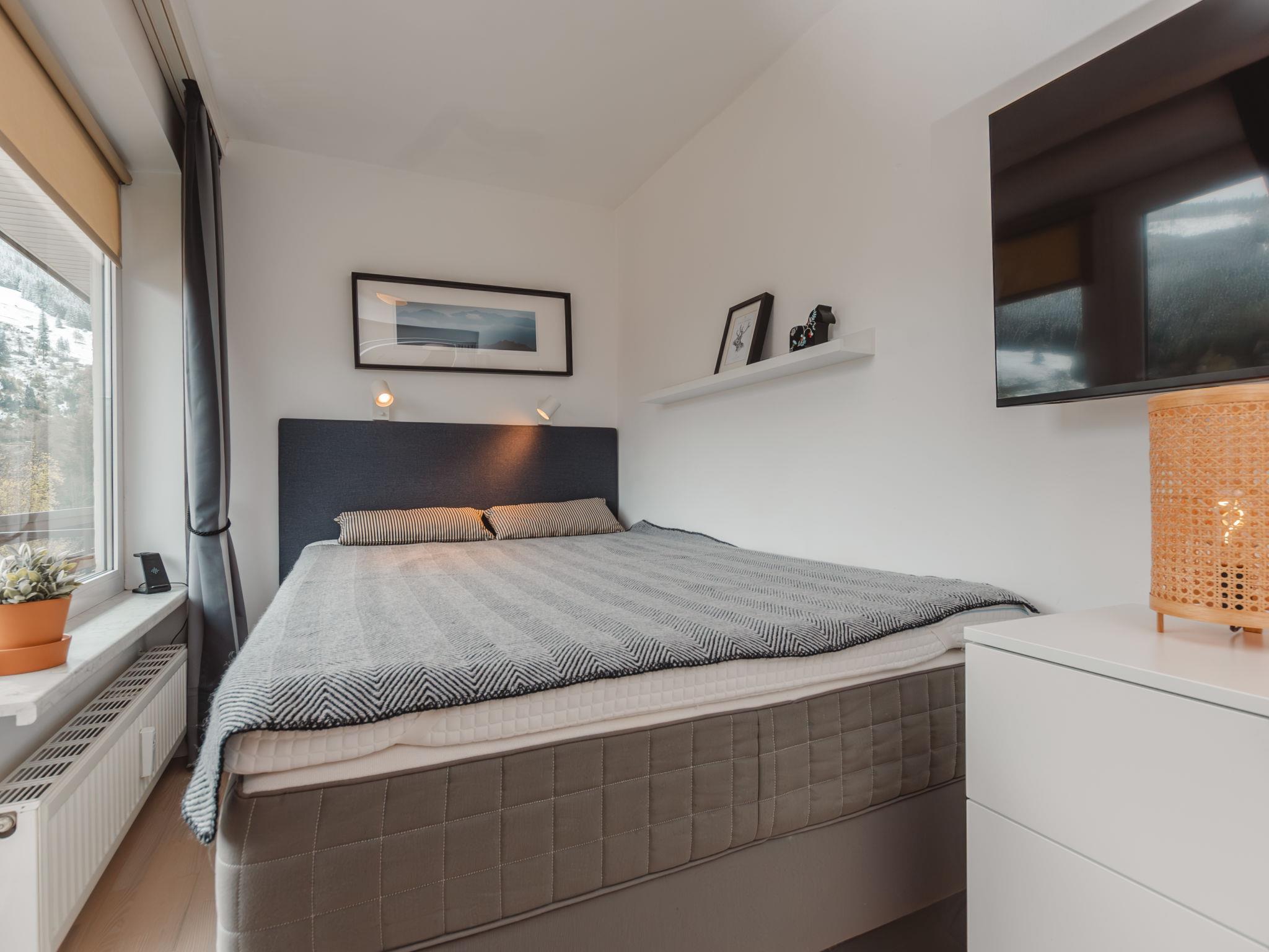 "The Bubble", 1-room apartment 36 m2 on 2nd floor. Spacious and bright, renovated in 2019, very tasteful furnishings: living/sleeping room with 1 double bed and satellite TV (flat screen). Exit to the balcony. Small kitchen (4 hot plates, oven, dishwasher, toaster, kettle, electric coffee machine) with dining table. Shower/WC. Parquet floors. Balcony furniture. Beautiful view of the mountains. 50403-000429-2020