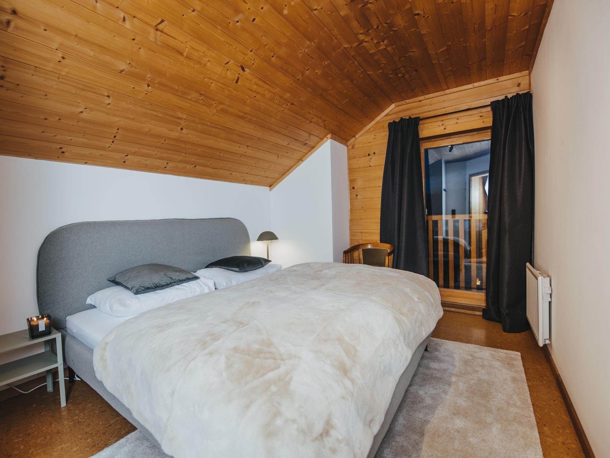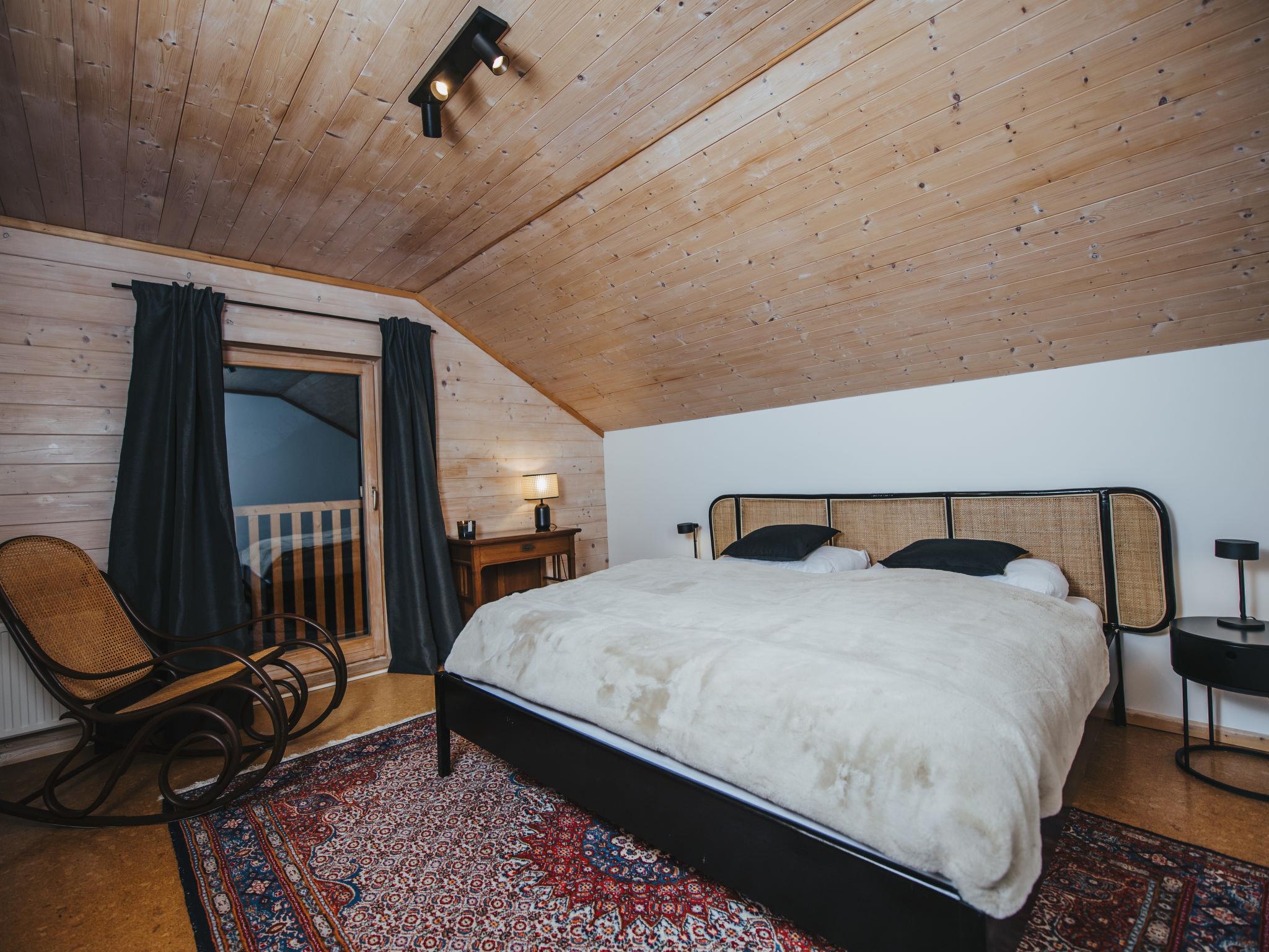 "Chalet 1018", 5-room chalet 110 m2 on 2 levels. Fully renovated in 2022, very beautiful and modern furnishings: entrance hall with separate WC. Living/dining room with dining table and cable TV (flat screen), tiled stove. Exit to the terrace. Large office. Large kitchen-/living room (4 hot plates, oven, dishwasher, 4 ceramic glass hob hotplates, toaster, kettle, microwave, freezer, electric coffee machine). Upper floor: 3 double bedrooms. Shower/WC, bath/shower/WC. Electric heating. Parquet floors. Terrace. Terrace furniture, balcony furniture, deck chairs. Beautiful view of the mountains and the forest. Facilities: washing machine, dryer, hair dryer. Internet (WiFi, free). Please note: non-smokers only. Smoke alarm, fire extinguisher. 50403-000483-2023