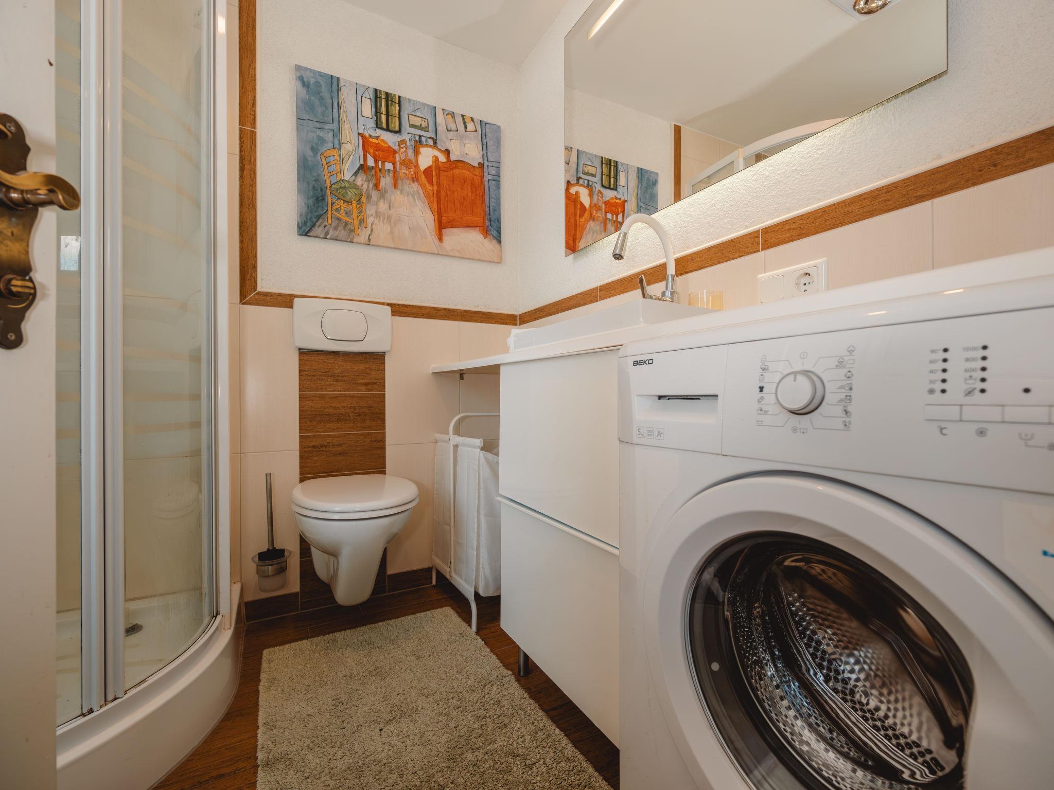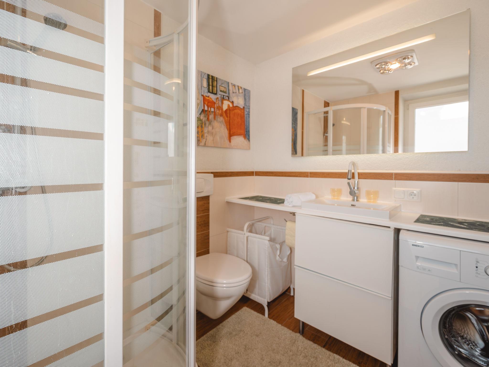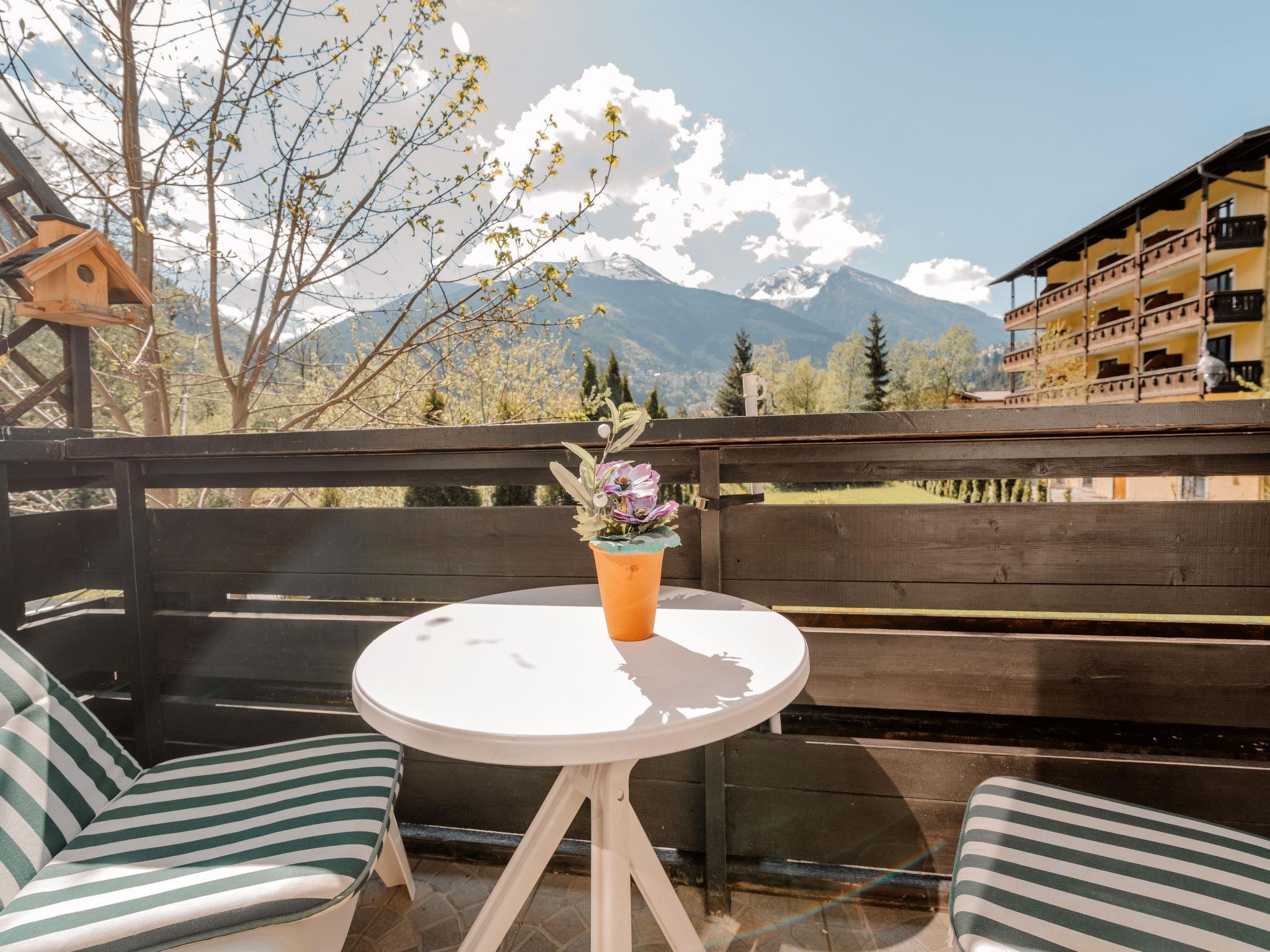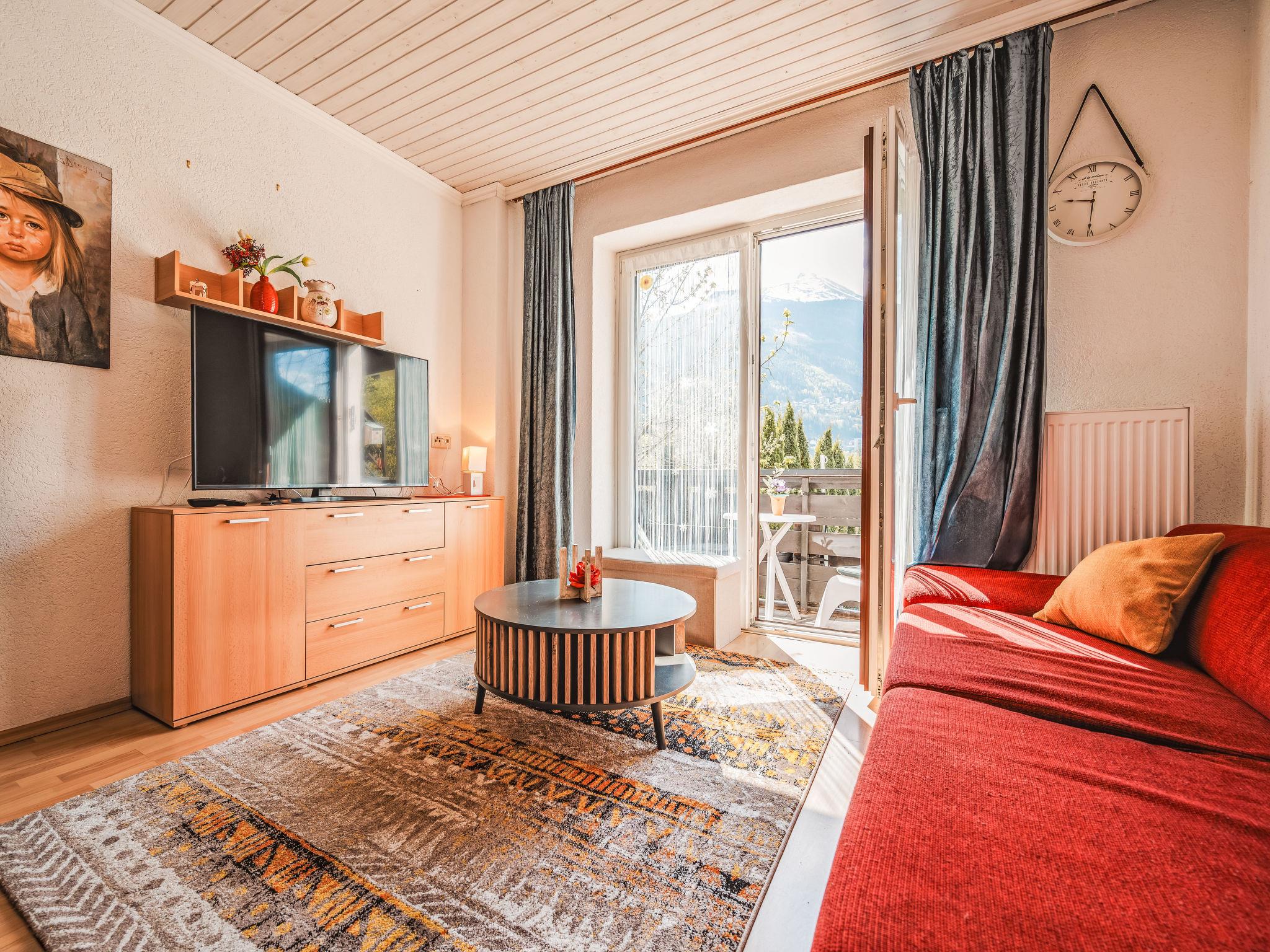 2-room studio 42 m2 on 1st floor. Fully renovated in 2013, modern and cosy furnishings: entrance hall. Living/sleeping room with 1 sofabed, dining table, satellite TV and radio. Exit to the balcony. 1 room with 1 double bed (140 cm, length 200 cm). Open kitchen (oven, dishwasher, 2 ceramic glass hob hotplates, toaster, kettle, electric coffee machine). Exit to the balcony. Shower/WC. Electric heating. Parquet floors. Balcony 4 m2. Terrace furniture. Marvellous view of the mountains and the valley. Facilities: washing machine, children's high chair, baby cot for up to 2 year olds. Internet (WiFi, free). Please note: apartment street side. Non-smokers only. Note: Infants and babies count as people and can not stay for free. 50403-000215-2020