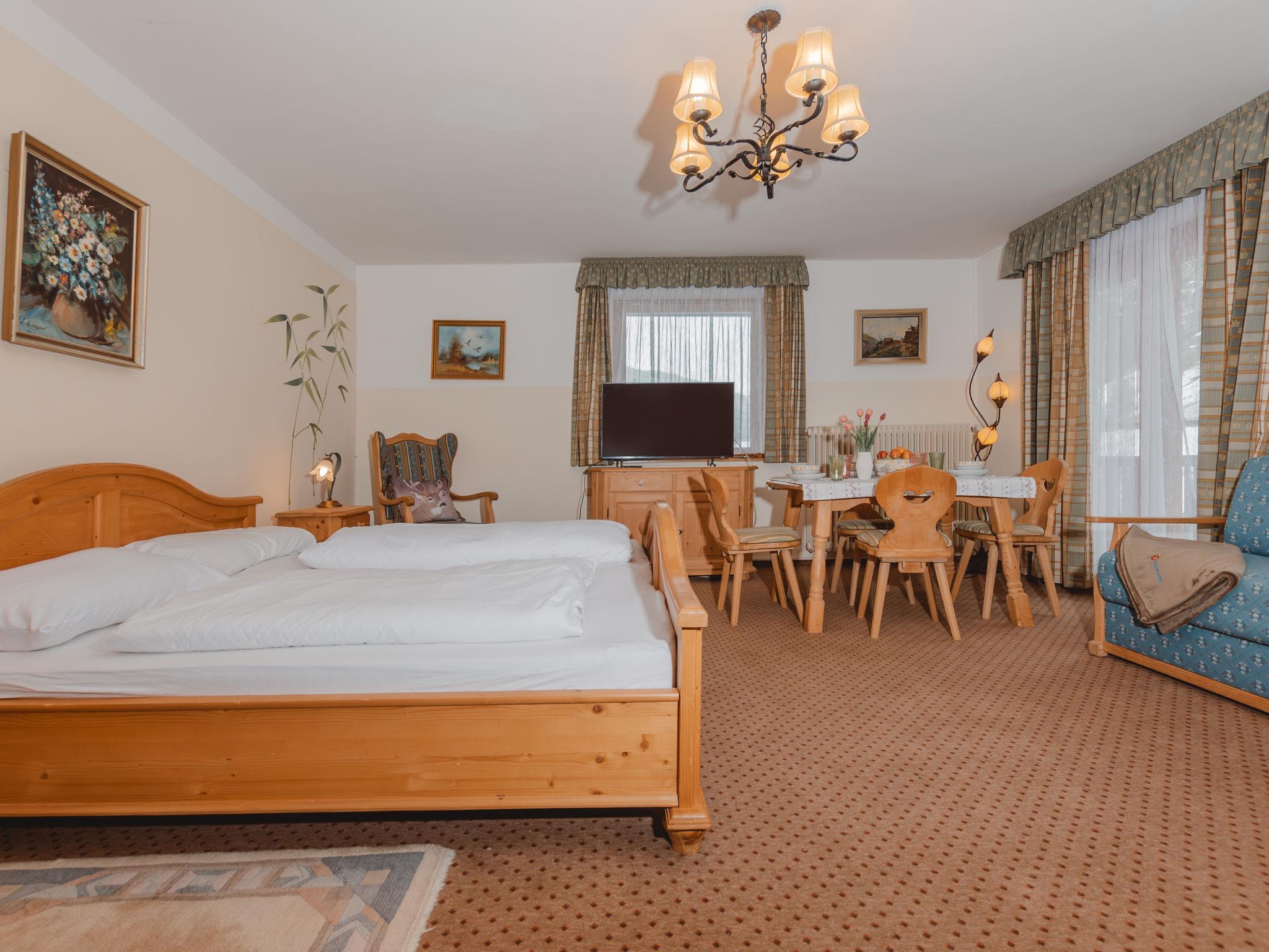 "Gertrud", 2-room apartment 40 m2. Spacious and bright, tasteful and cosy furnishings: entrance hall. Living/sleeping room with 1 double sofabed, 1 double bed, dining table and cable TV (flat screen). Exit to the balcony. Kitchen (oven, 4 ceramic glass hob hotplates, toaster, kettle, electric coffee machine) with small dining table. Exit to the balcony. Bath/WC. Parquet floors. Comfortable furnishings in the country house style. Large balcony. Balcony furniture. Beautiful view of the forest. Facilities: safe, hair dryer. Internet (WiFi). Parking, garage (extra) at the house. Please note: suitable for families. Non-smokers only. 2 pets/ dogs allowed. 50403-000158-2020