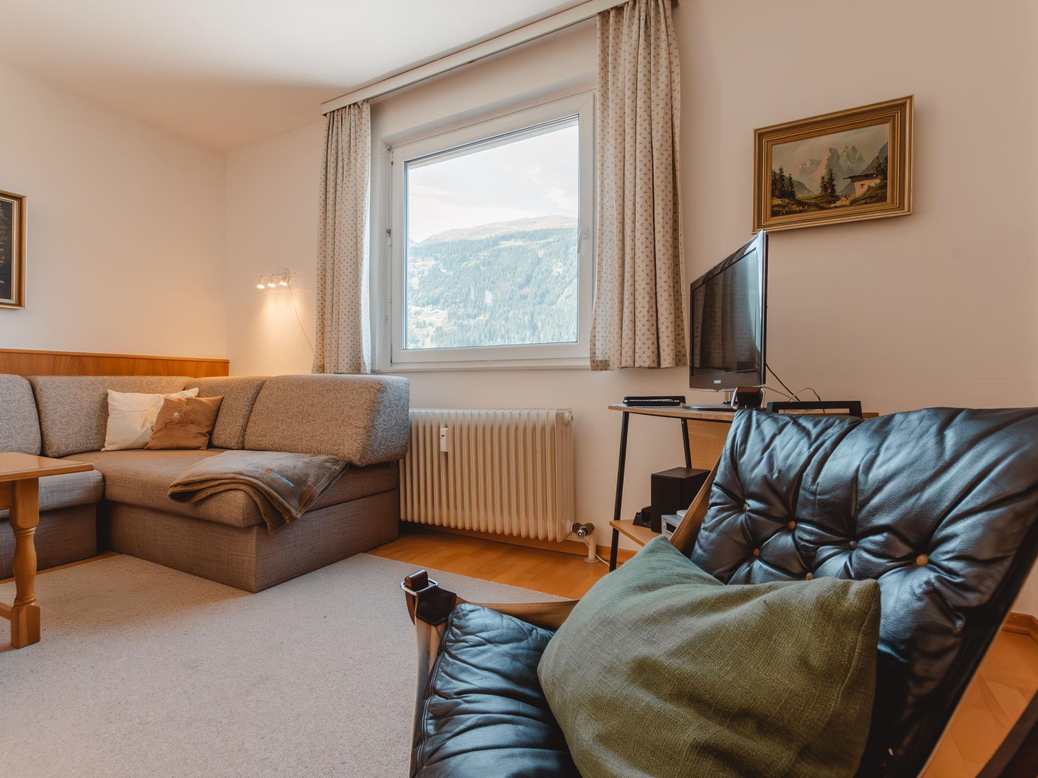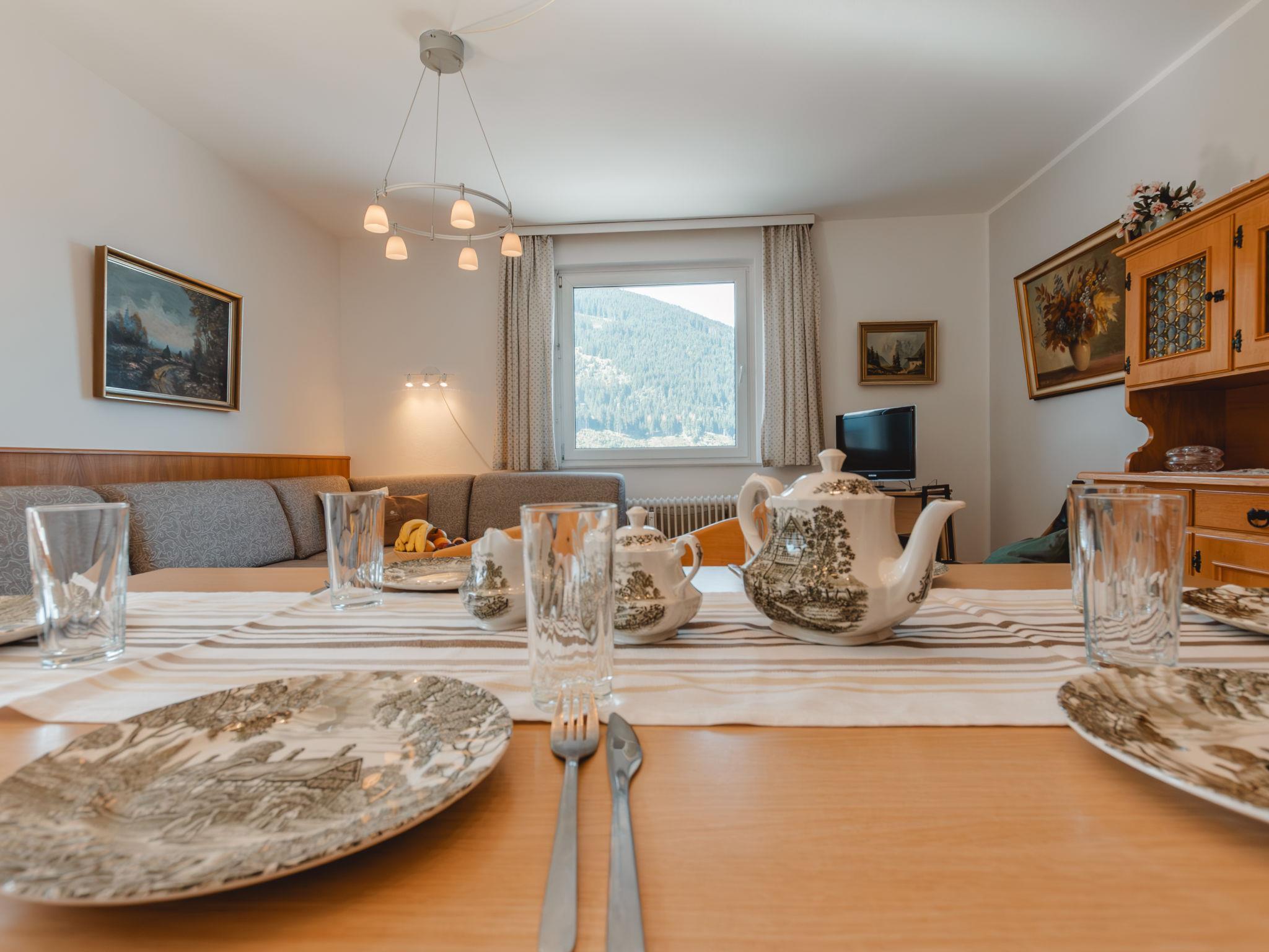 "Martini", 3-room apartment 75 m2 on 1st floor. Spacious and bright, very cosy furnishings: entrance hall. Living/dining room with 2 sofabeds, dining table and cable TV (flat screen), DVD. Exit to the balcony. 1 double bedroom. Exit to the balcony. 1 room with 2 beds. Kitchen (4 hot plates, oven, toaster, kettle, microwave, electric coffee machine) with hatch. Shower, sep. WC. Parquet floors. 2 balconies. Balcony furniture. Marvellous view of the mountains and the valley. Facilities: Internet (WiFi, free). Please note: fridge without freezer. Smoke alarm. 50403-000292-2020