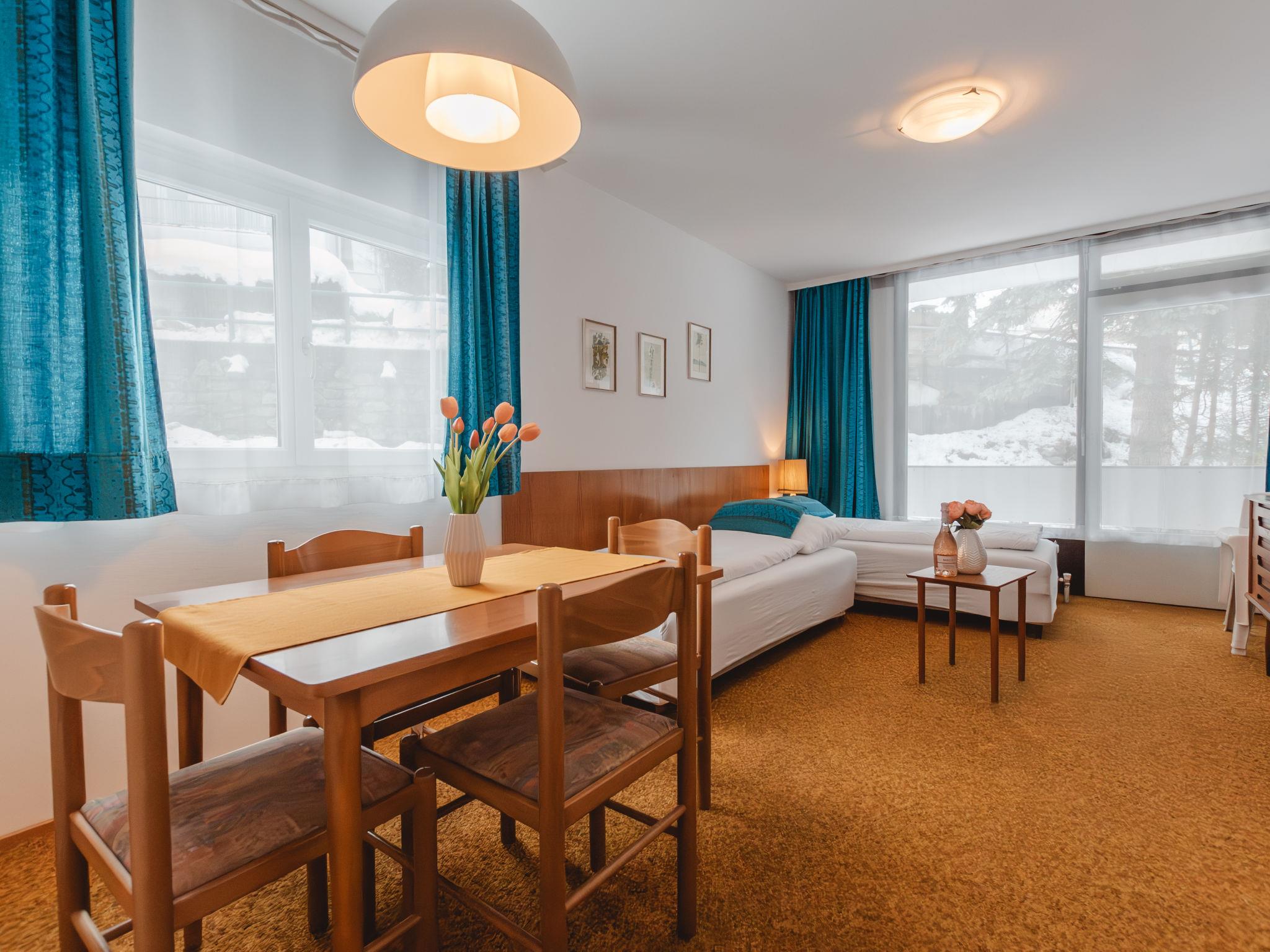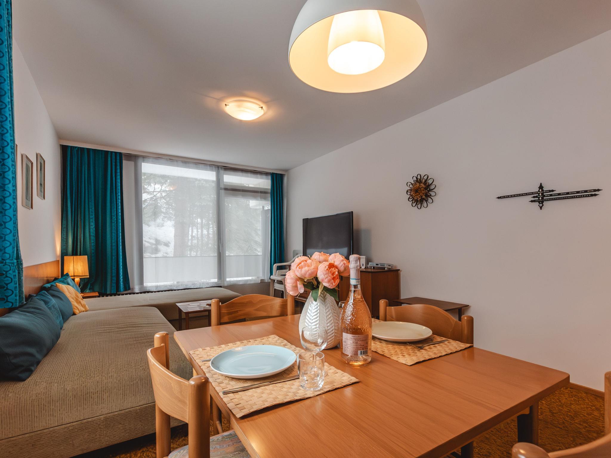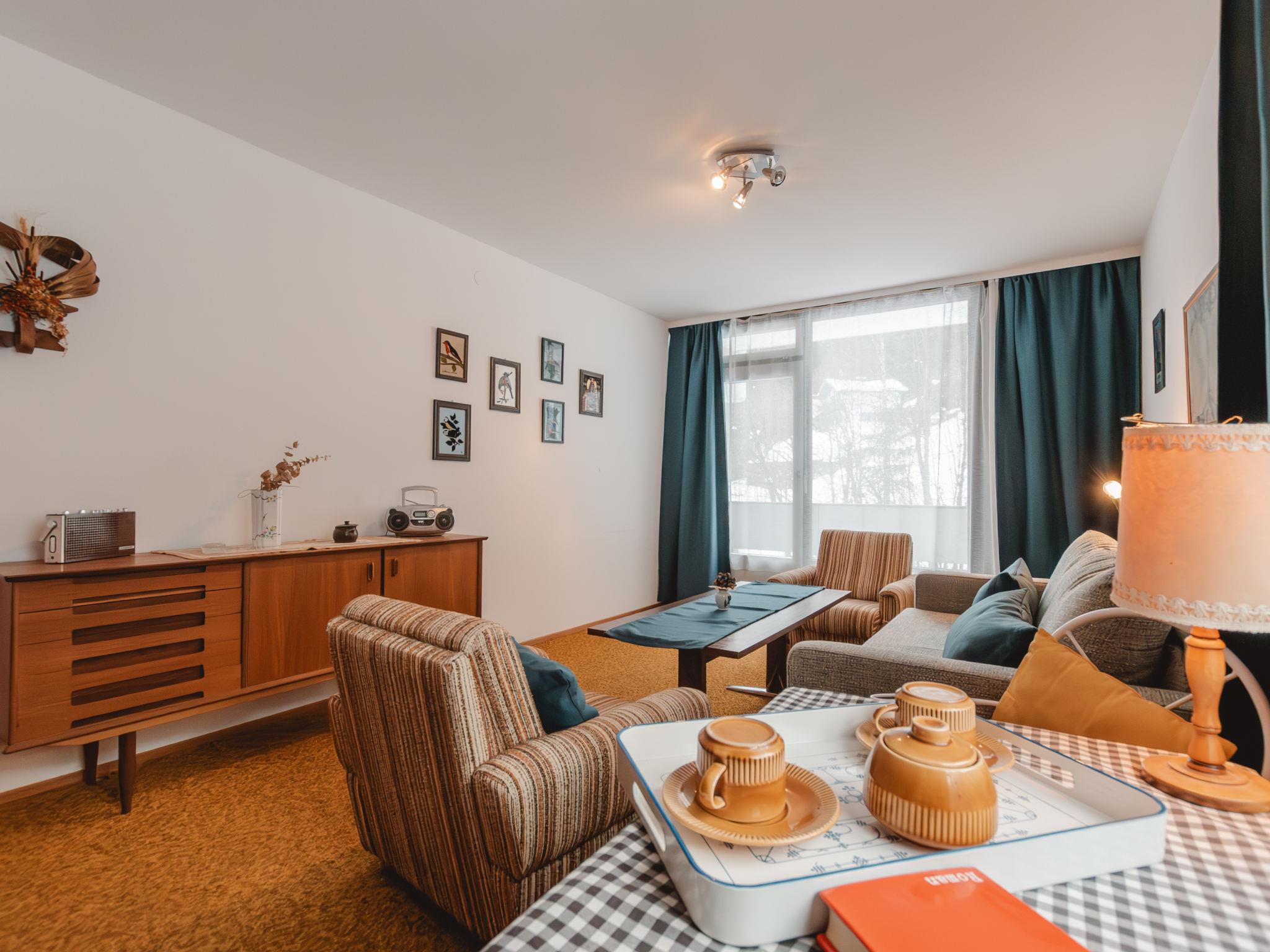 "Alpenpanorama", 2-room apartment 60 m2 on 1st floor. Object suitable for 4 adults. Simple and practical furnishings: entrance hall. Living/sleeping room with 1 double sofabed and radio. Exit to the balcony. Living/dining room with 2 beds (90 cm, length 200 cm), dining table, cable TV and flat screen. Exit to the balcony. Small kitchen (4 hot plates, oven, dishwasher, electric coffee machine). Bath/WC. Carpet. 2 balconies. Facilities: children's high chair. Internet (WiFi, free). Suitable for families. 50403-000507-2023