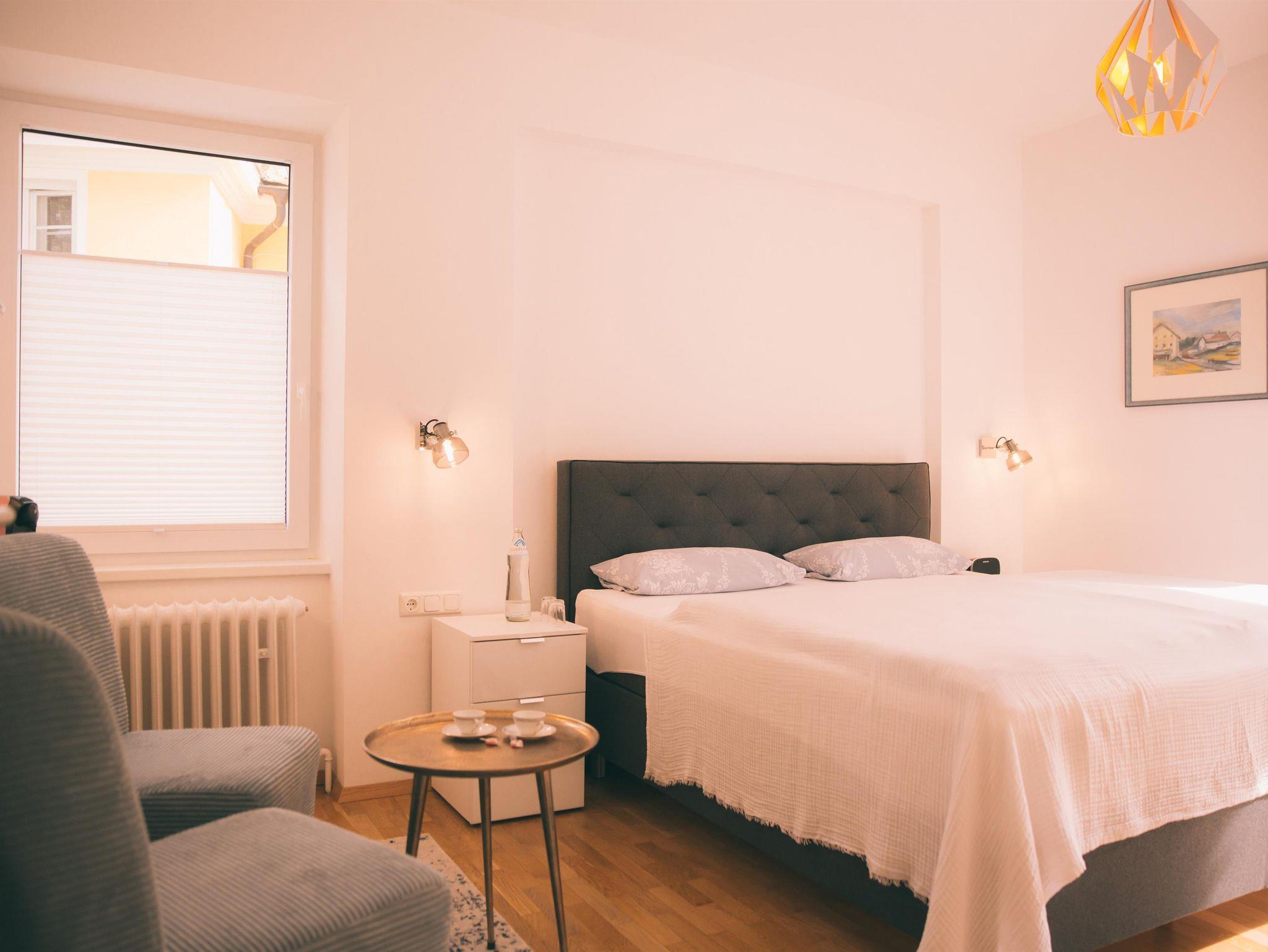 Unsere beiden kleineren Doppelzimmer (ab 83 € pro Nacht und Zimmer) sind jeweils etwa 20 m² groß und haben einen großzügigen Balkon mit Blick auf die Gasteiner Berge sowie ein Duschbad mit elektrischem Handtuchtrockner und Haartrockner und ein hochwertiges Boxspringbett