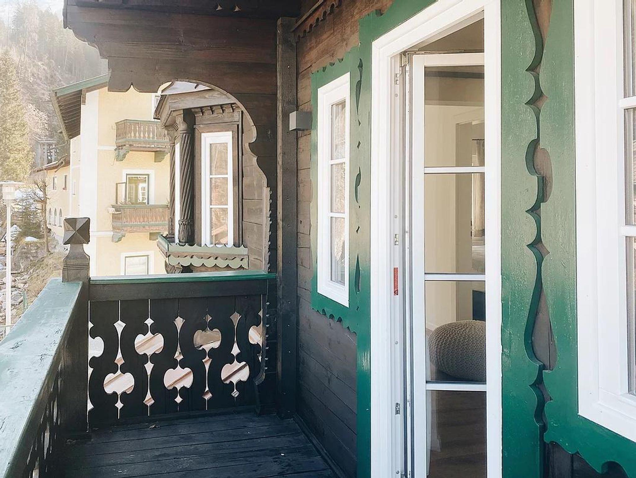 Drei Zimmer-Wohnung. Wohnzimmer die durch eine rustikale Schiebetür von der Wohnküche getrennt werden kann. Balkone and der Ache.