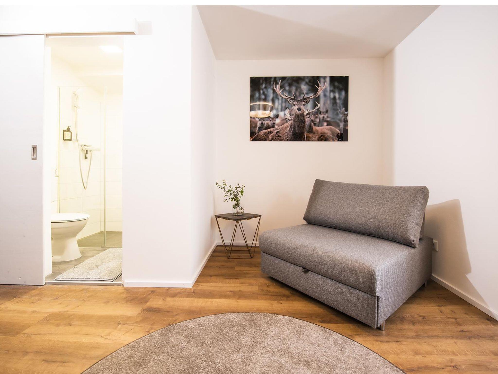 • Wohn-/Schlafraum mit Doppelbett und Schlafsessel