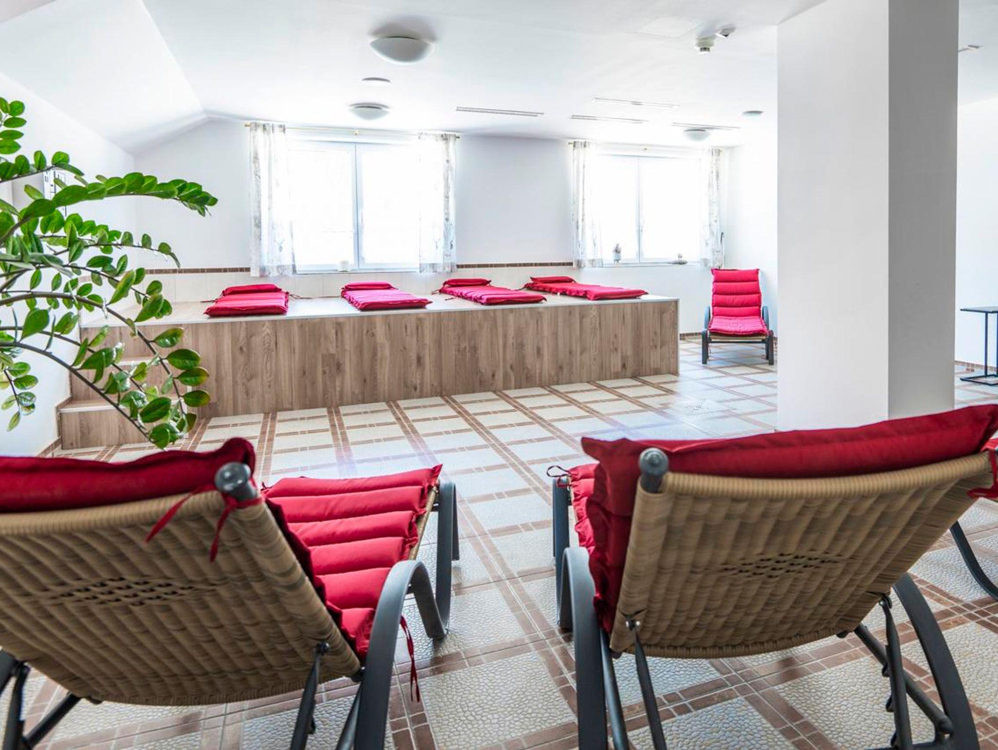 • kostenlose Nutzung unseres Wellnessbereiches mit Panorama Hallenbad, Sauna, alpiner Ruheraum, Sonnen Liegewiese mit Schirmen und Liegen