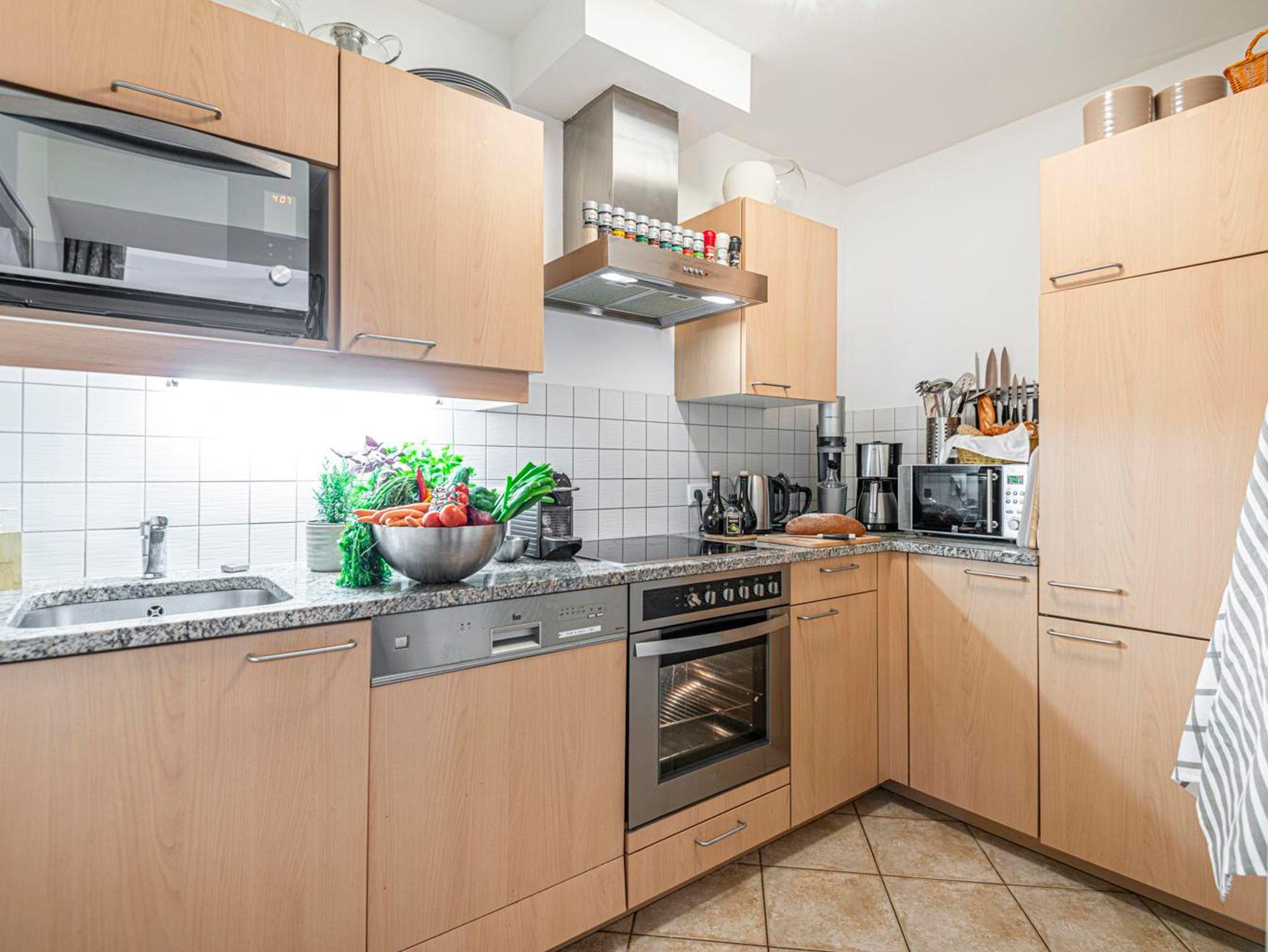 • Dampfgarer, Kühlschrank mit Gefrierfach, Herd, Backofen, Jura Bohnen Cafemaschine, Wasserkocher, Mikrowelle, Soda Stream