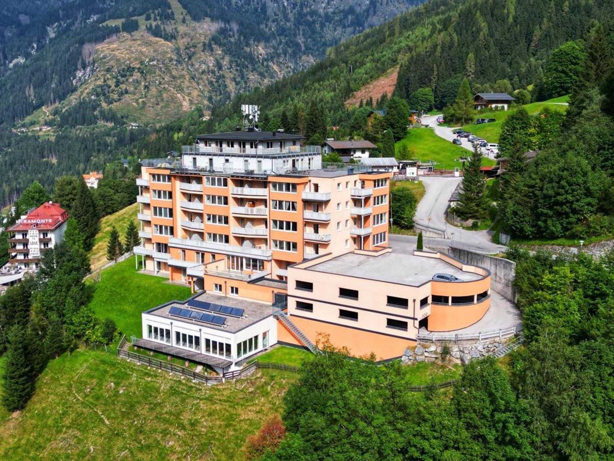 Fast schon trohnend, wie ein Beschützer über Bad Gastein, im orangen Flair, erwacht ein neues Familien Spa Panorama Appartement Haus DAS.SCHILLER.