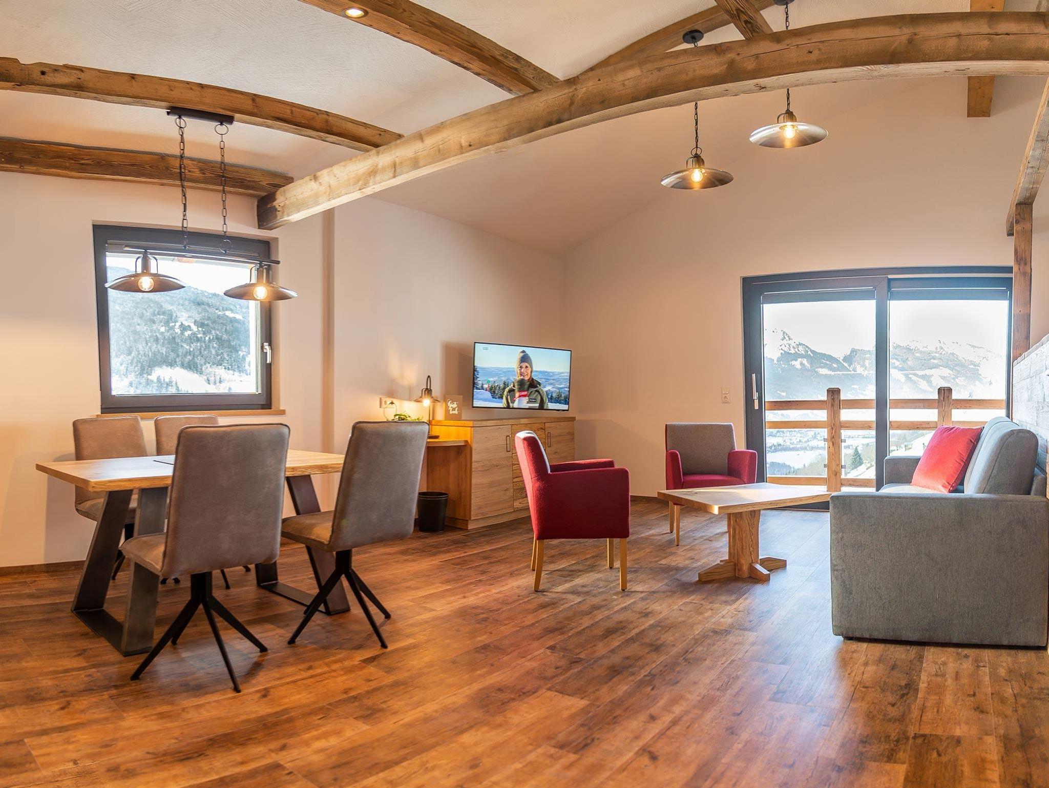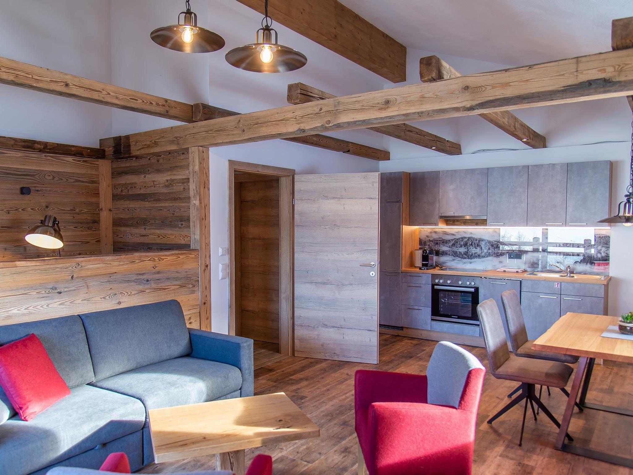Das Appartement STILLE liegt im Dachgeschoss vom Gasthof Gamskar und hat eine Grösse von 60 m².