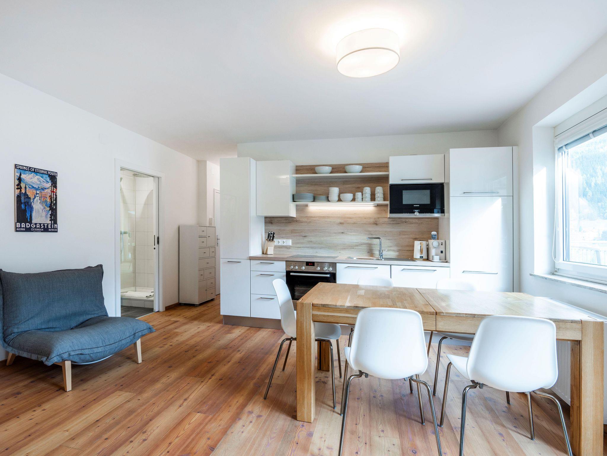 Die neu renovierte Dachgeschosswohnung befindet sich in einer Wohnanlage in der Nähe des Tourismusbüros in Bad Gastein. Die ca. 70m2 große Wohnung hat zwei Schlafzimmer, zwei Badezimmer (jeweils mit WC und entweder Badewanne oder Dusche) und ein voll ausgestattetes Wohnzimmer mit Küche und Kamin und eine vollausgestatte Dachterrasse (Tisch, Liegen, Gasgrill, etc.). WLAN und TV sind inklusive.