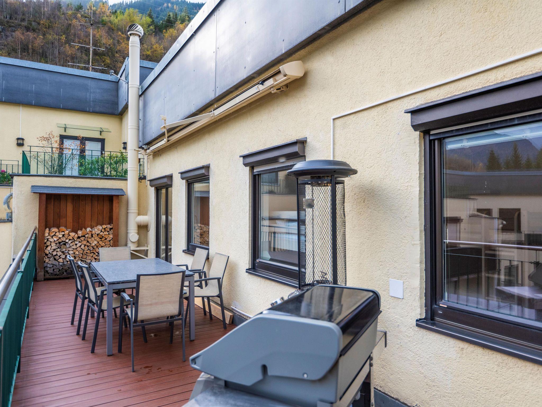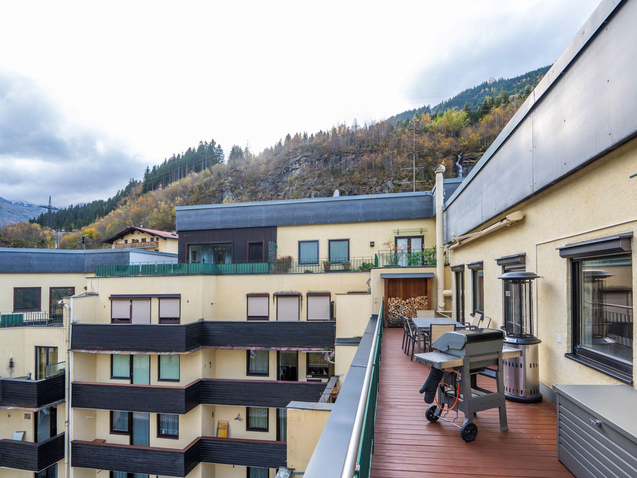 Weiters hat das Apartment eine große Dachterrasse mit Terrassenmöbel und Grill mit einem unvergleichlichen Blick über die Bergwelt Graukogel und Bad Gastein.