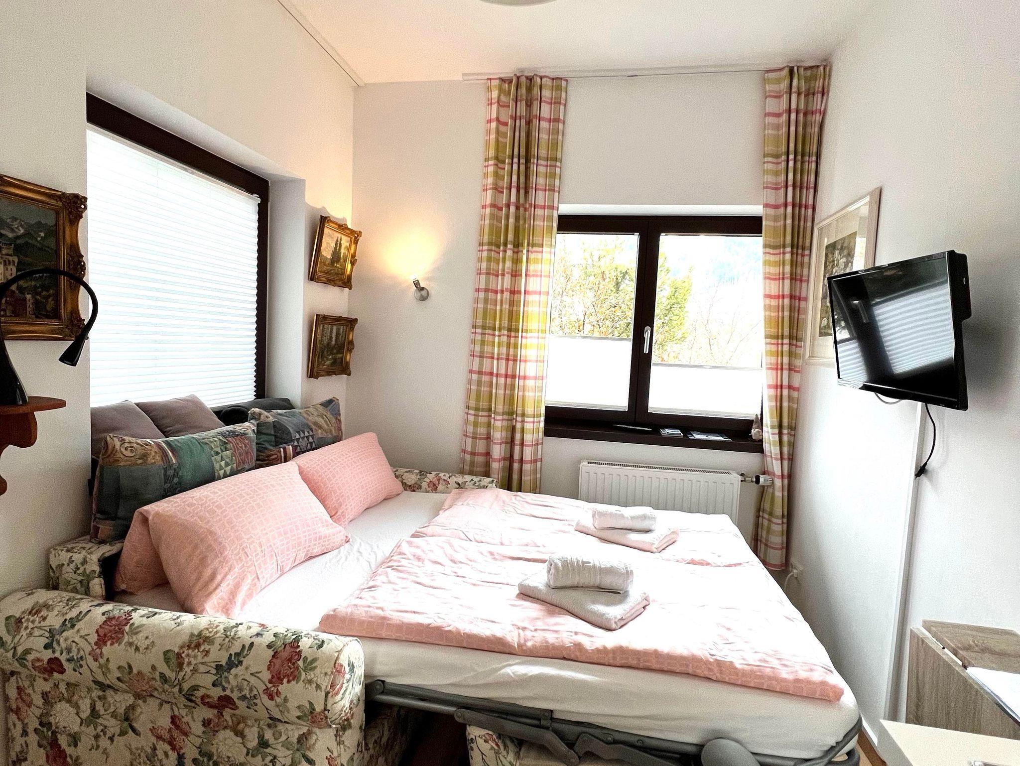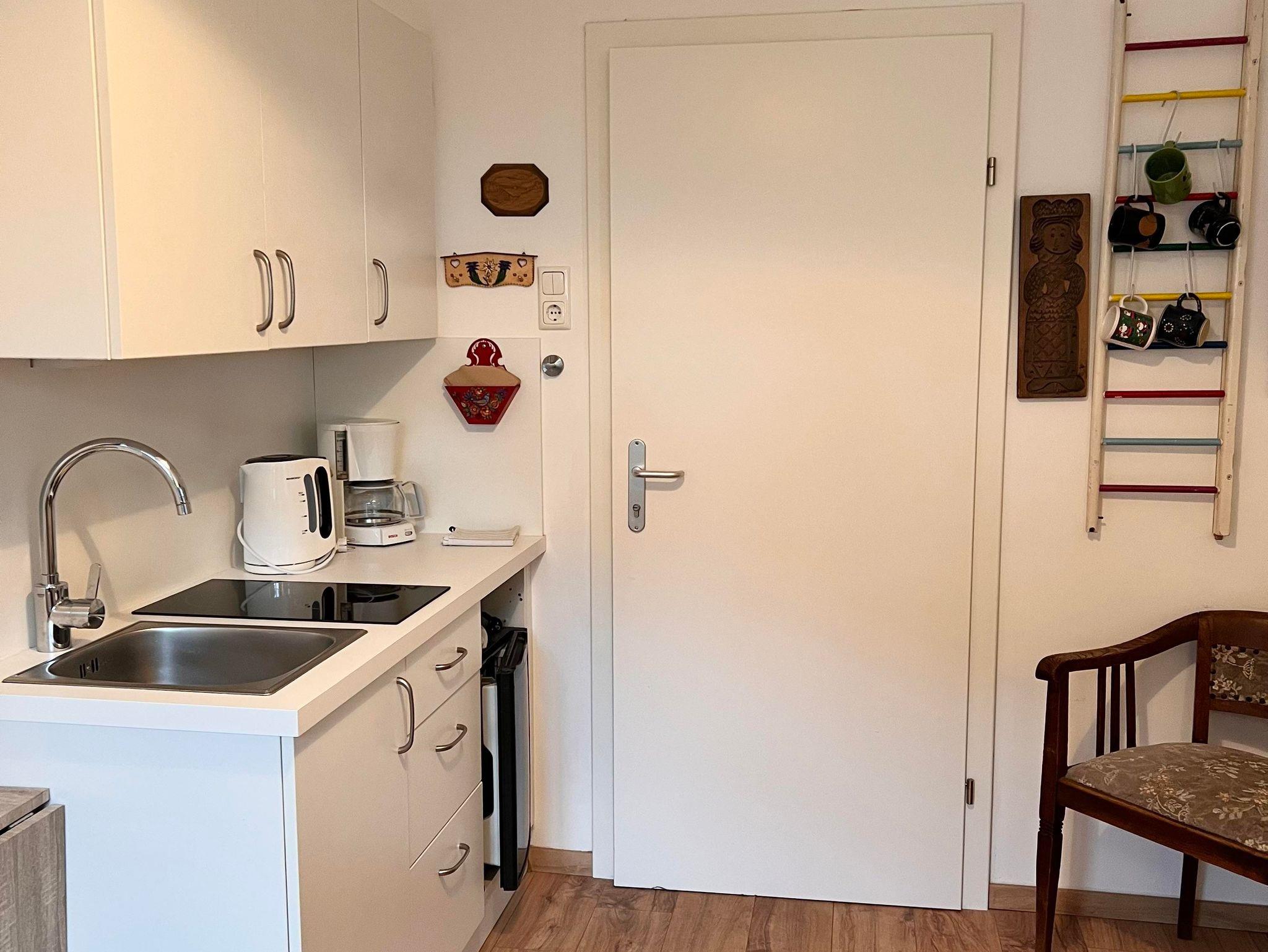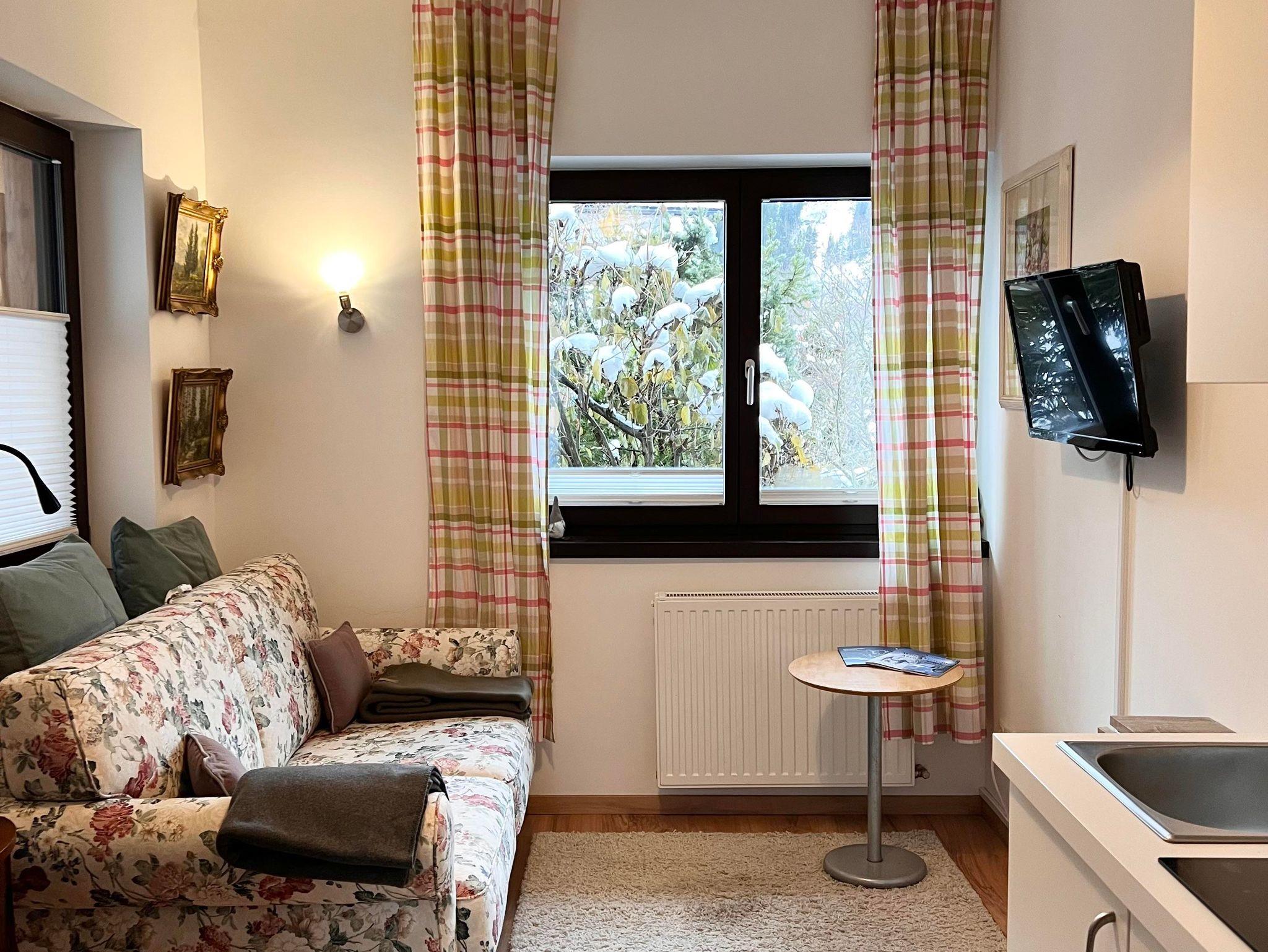 Das kleine helle kuschelige Appartement für 1-2 Personen mit Blick in den Garten und auf die Berge hat alles was man für einen perfekten Urlaub benötigt. Das Sofa wird im Handumdrehen zu einem bequemen Bett mit Ferderkernmatratze (1,40 m x 2,00 m, offenes Fußende), in der Pantryküche könnt ihr euer Essen zubereiten oder einfach nur den Kaffee genießen. Euer großes Bad mit Fenster liegt dem Appartement direkt gegenüber. Es gibt einen begehbaren Kleiderschrank mit vielen Staufächern und Gardrobe. Zusätzlich gibt es einen Skistall im Haus. Euer Appartenemt liegt im Erdgeschoss.