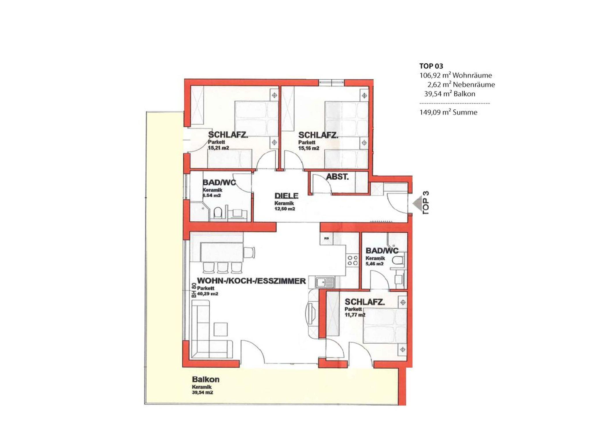 • 3 Schlafzimmer mit je einem Doppelbett 160x200cm, inklusive Bettwäsche