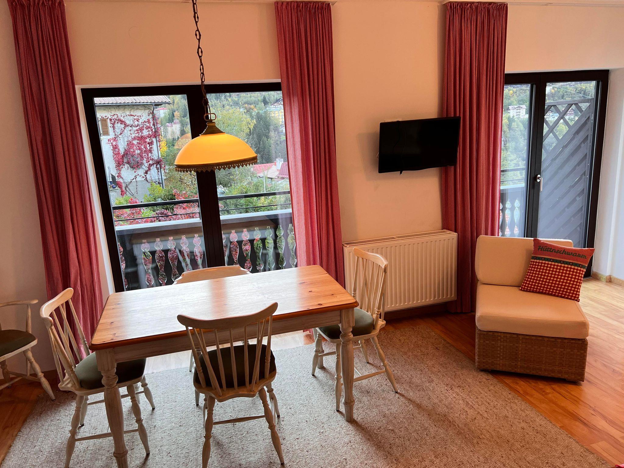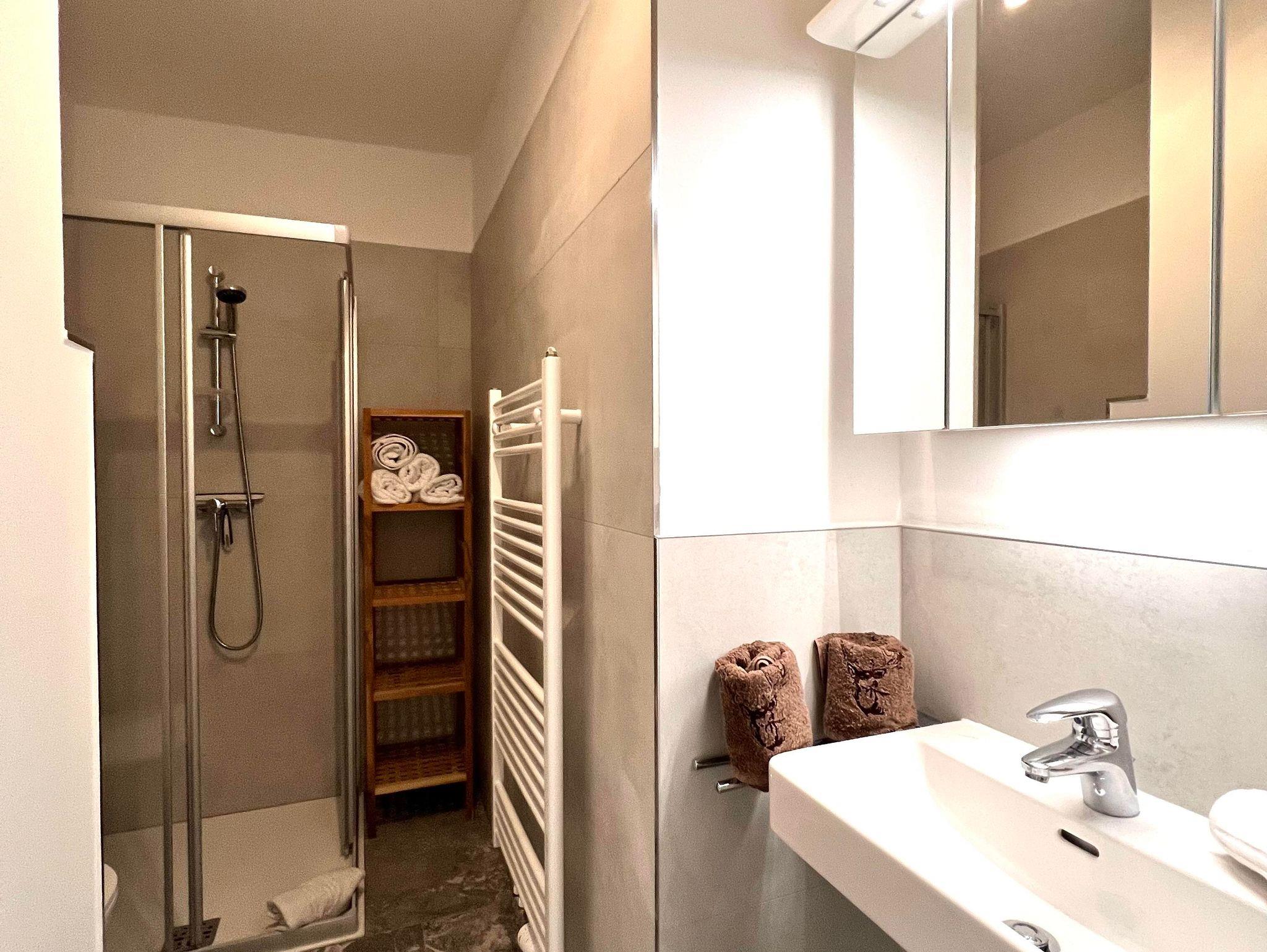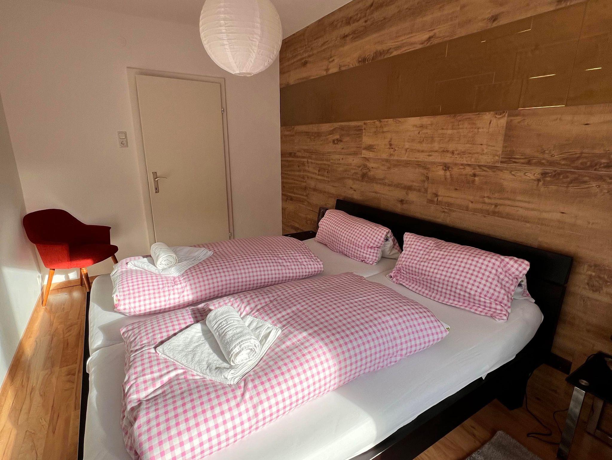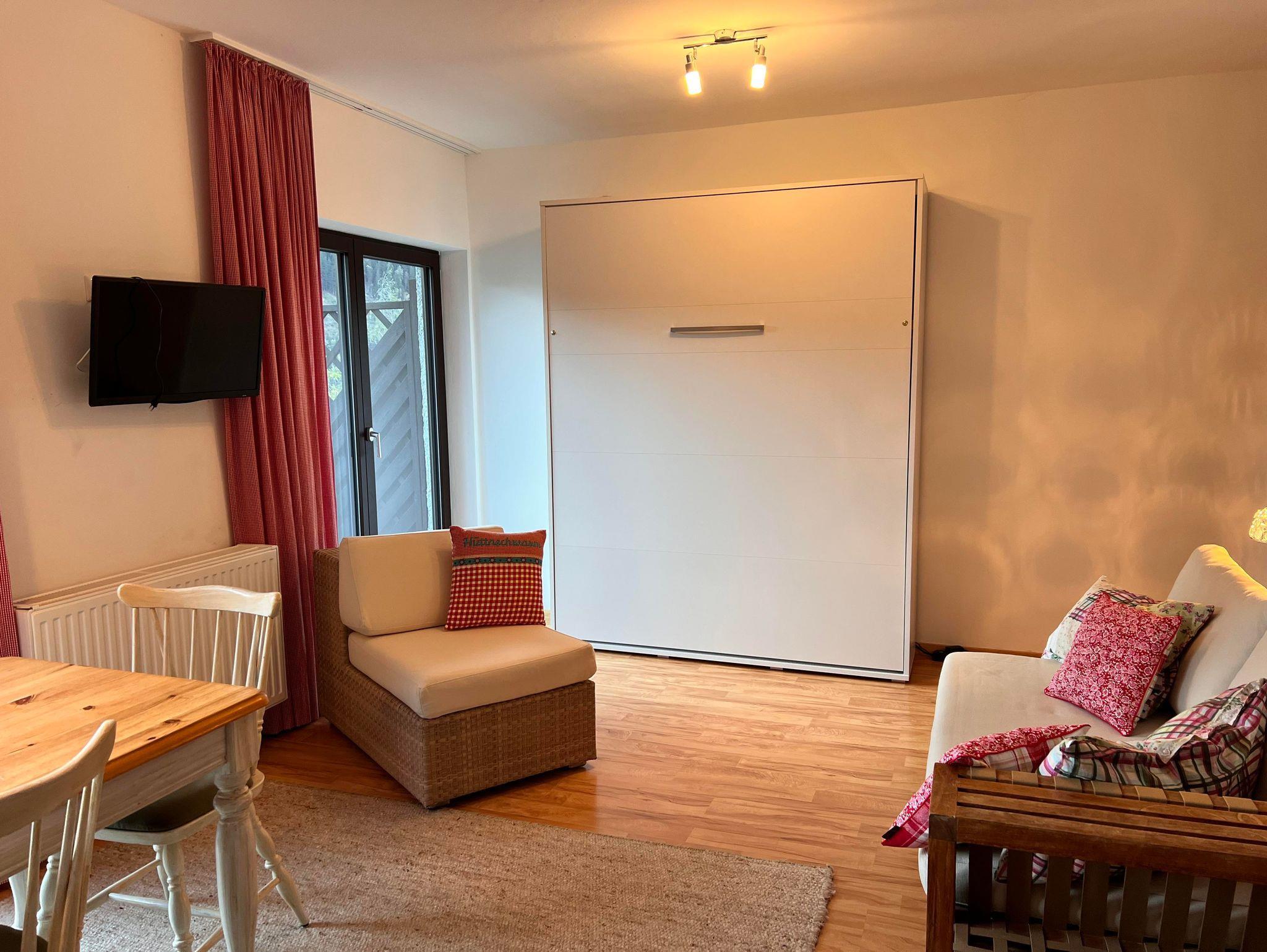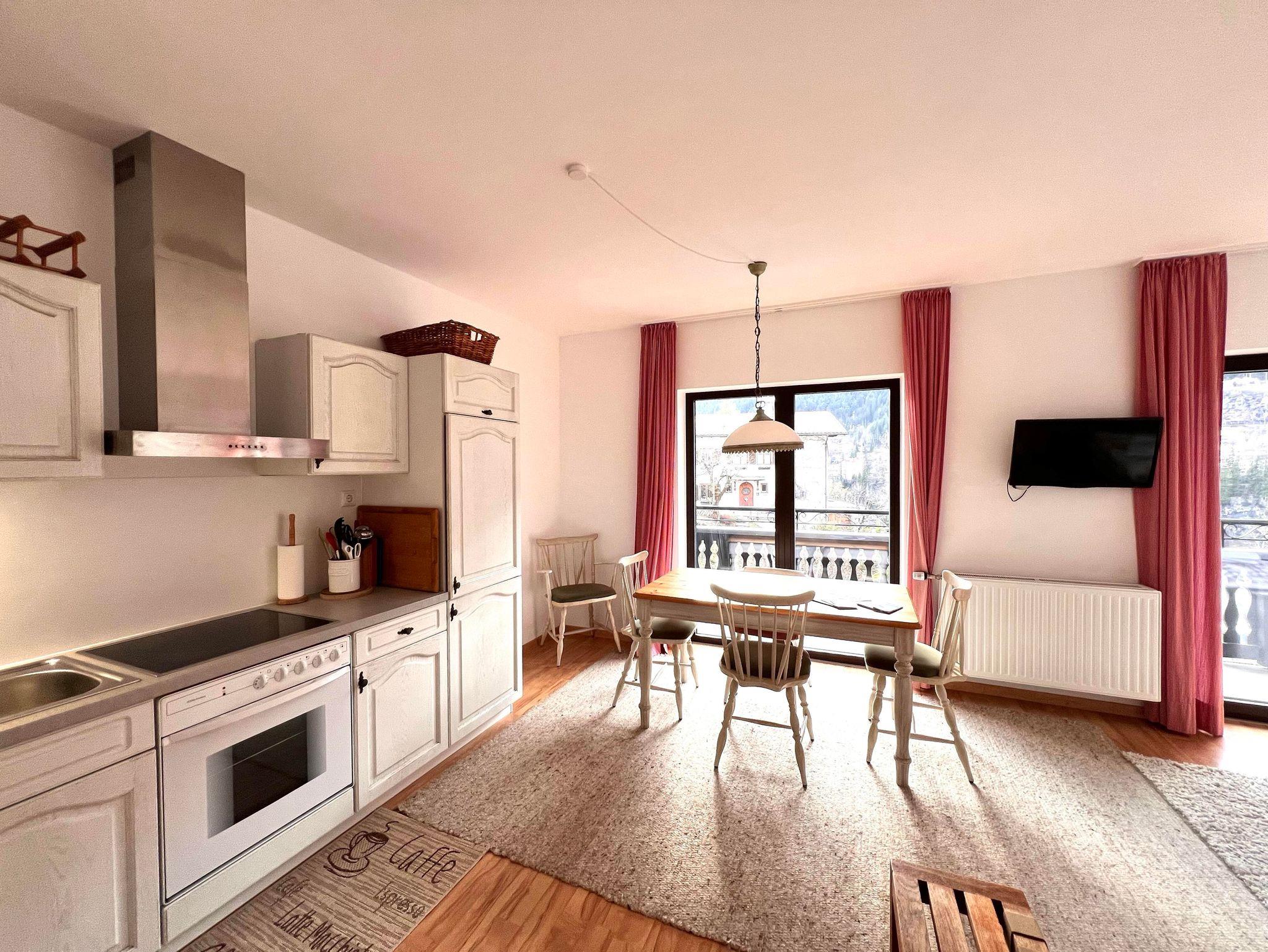 Das Appartement verfügt ausschließlich über bodentiefen Fenster die einen herrlichen Blick auf die Berge, das Tal und die Stadt freigeben. Vom Bett aus seht ihr auf die herrlichen Pisten des Stubnerkogles und könnt am Abend die Pistenraupen verfolgen. Das gesamte Appartement umspannt ein großer überdachter Süd-Westbalkon. Hier stehen selbstverständlich Balkonmöbel für euch bereit. Das Bad ist innenliegend. Das Appartement befindet sich im 1. OG.