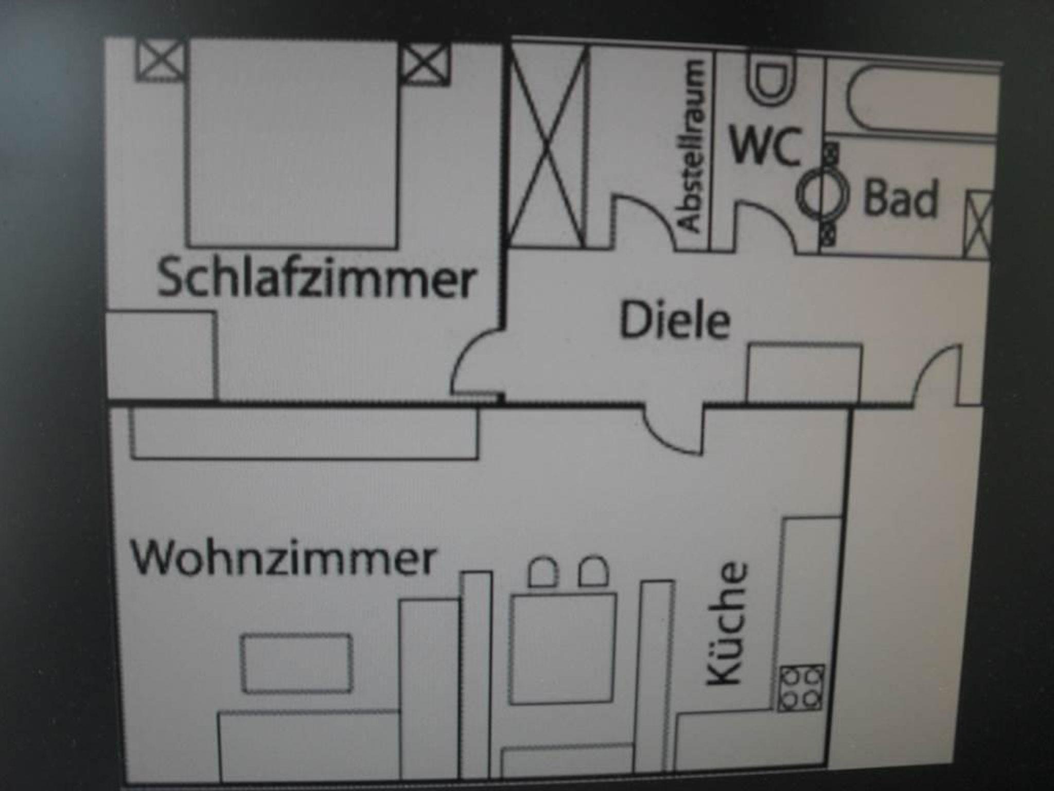 2-Zimmerwohnung (50qm) für 2-4 Personen mit Diele, Dusche, WC, Küche mit Essecke ( Geschirrspülmaschine), mit Schlafzimmer, Wohnschlafraum , TV und W-LAN und mit sonniger Terrasse.