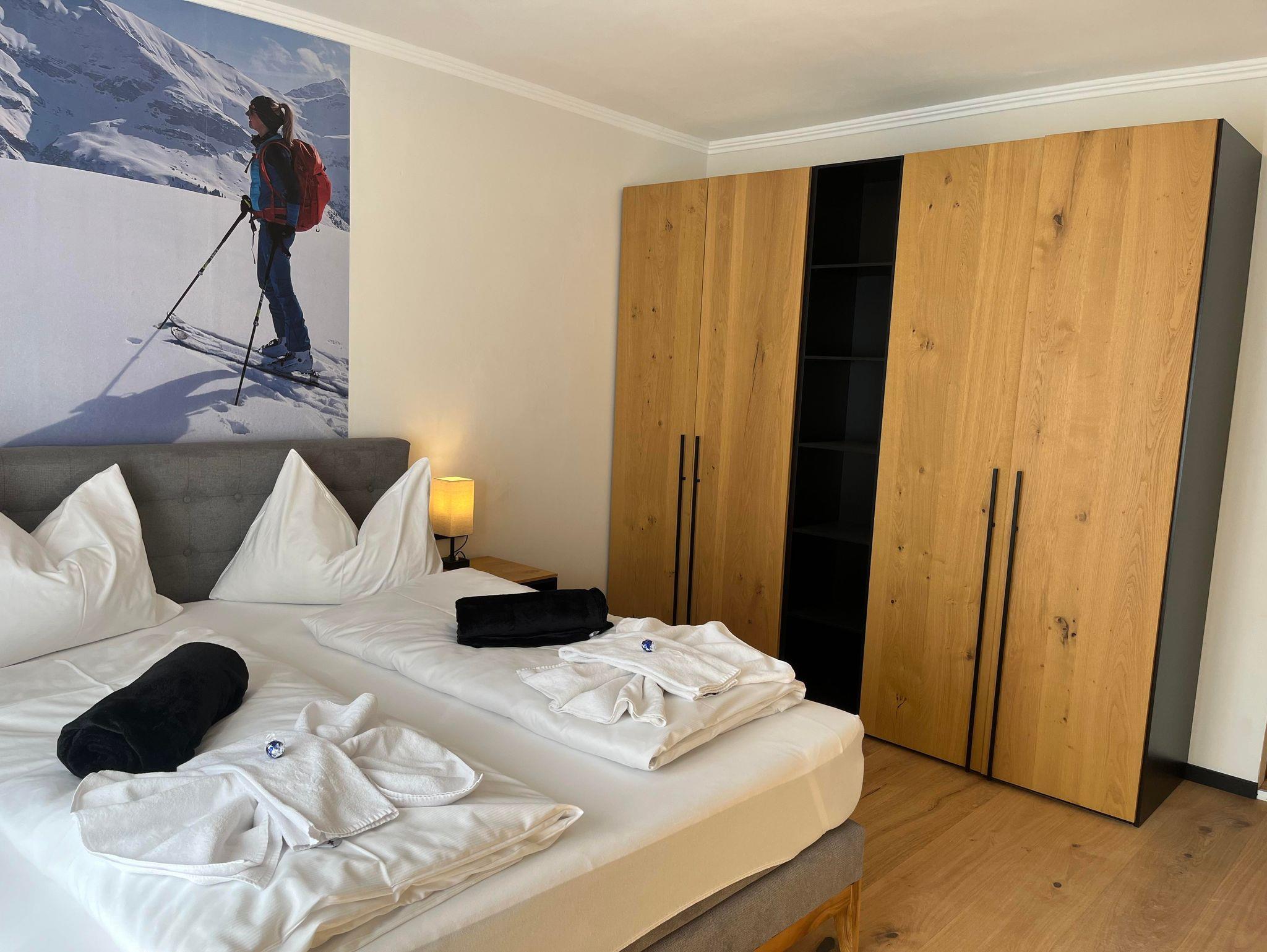 Unsere renovierten Appartements, ideal für Einzelreisende, Paare und Familien, bieten Platz für bis zu 6 Personen. Jedes Appartement verfügt über eine voll ausgestattete Küche, einen Essbereich, ein Bad mit Dusche/WC, Fernseher, WLAN (200 Mbit) und einen gemütlichen Wohnbereich. Entspannen Sie sich auf Ihrem privaten Balkon oder im Garten und genießen Sie die atemberaubende Aussicht. Zusätzlich stehen Ihnen kostenlose Parkplätze, ein Skikeller und einWaschraum mit Waschmaschine und Trockner zur Verfügung.