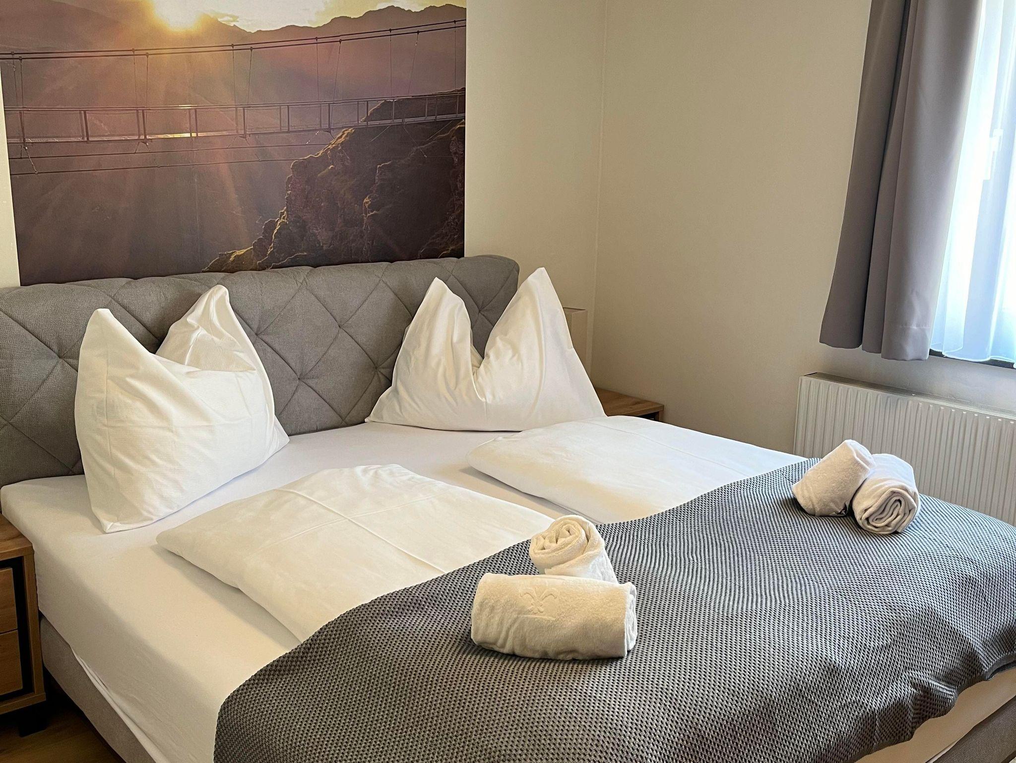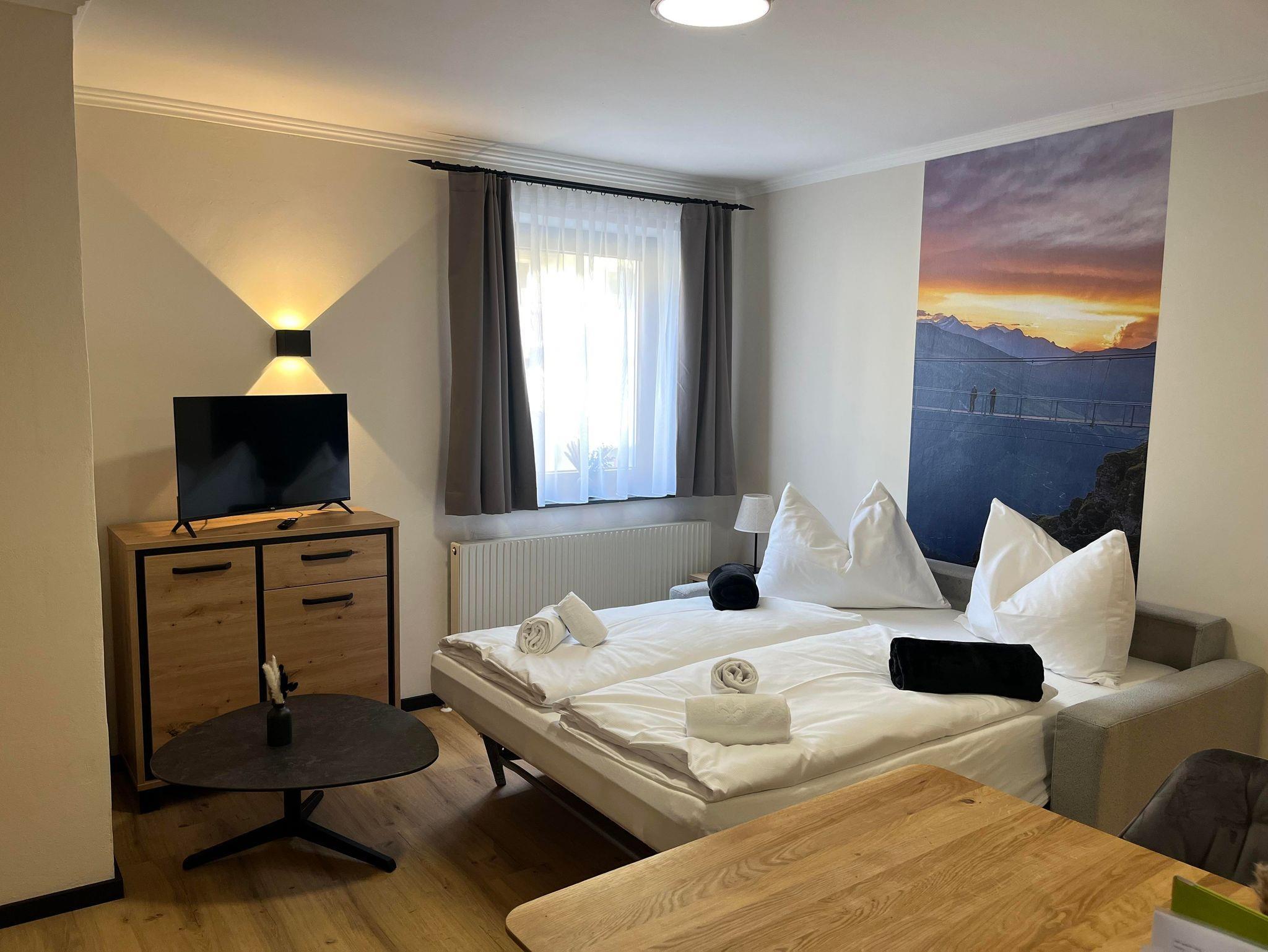 Unsere renovierten Appartements, ideal für Einzelreisende, Paare und Familien, bieten Platz für bis zu 6 Personen. Jedes Appartement verfügt über eine voll ausgestattete Küche, einen Essbereich, ein Bad mit Dusche/WC, Fernseher, WLAN (200 Mbit) und einen gemütlichen Wohnbereich. Entspannen Sie sich auf Ihrem privaten Balkon oder im Garten und genießen Sie die atemberaubende Aussicht. Zusätzlich stehen Ihnen kostenlose Parkplätze, ein Skikeller und einWaschraum mit Waschmaschine und Trockner zur Verfügung.