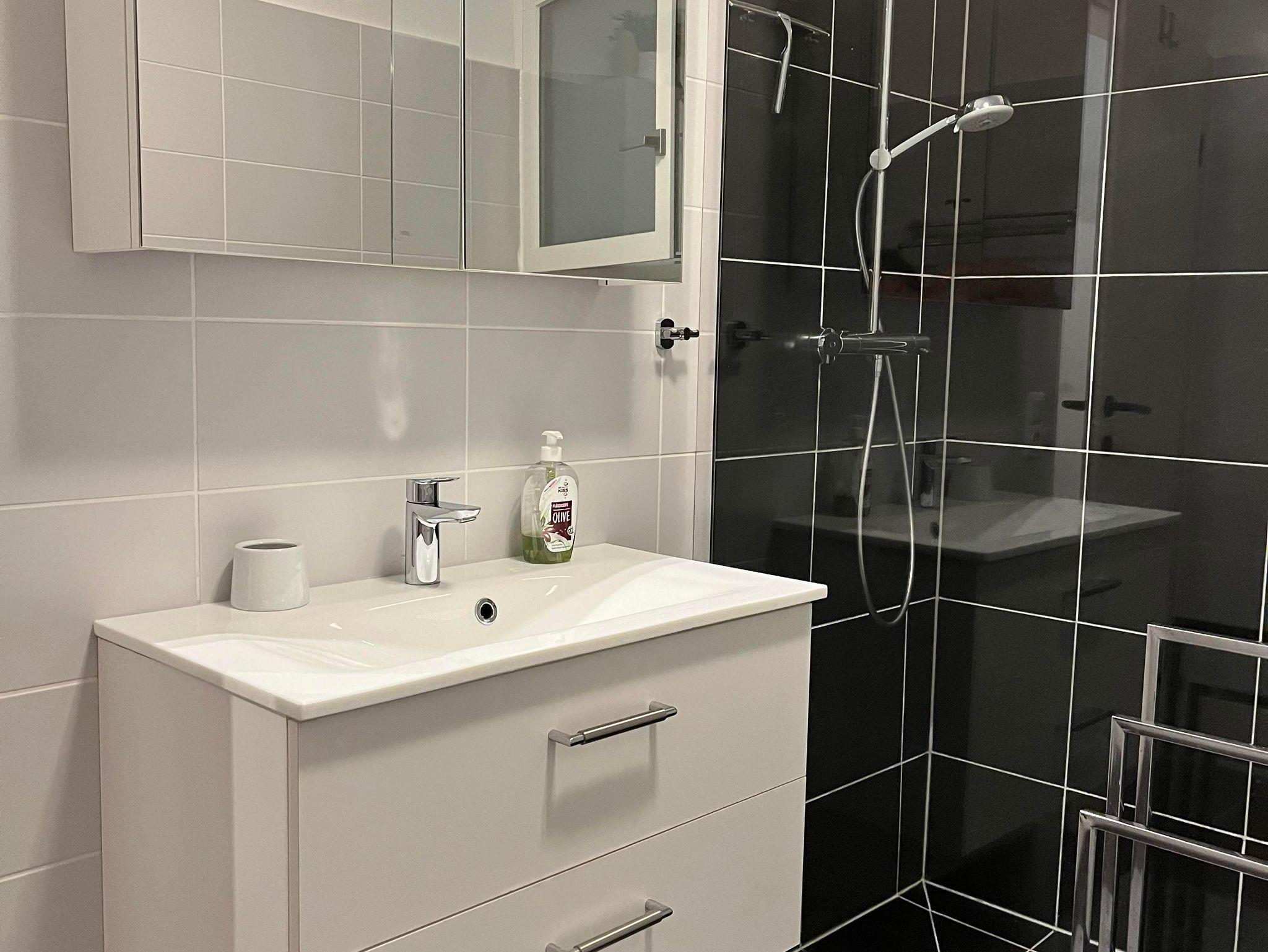 Die Unterkunft verfügt über eine große, voll ausgestattete Küche, ein Badezimmer mit barrierefreier Dusche sowie ein separates WC. Geräumiges Wohnzimmer mit Essecke und gemütlichem Sofa, direkter Ausgang auf die Terrasse. Eigenes Schlafzimmer mit großem Kleiderschrank.