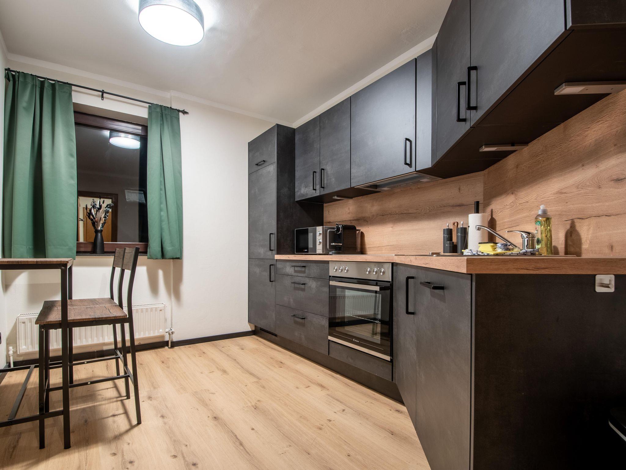 OFFENES WOHNKONZEPT FÜR FREIHEITSLIEBENDE Das Kreuzkogel Appartement bietet ein einladendes, offenes Raumkonzept, ideal für diejenigen, die Freiheit und Weite schätzen. Es vereint Wohnküche, Schlafbereich und Bad in einem harmonischen Raum. Die Ausstattung mit einer vollausgestatteten Küche und modernen Annehmlichkeiten, kombiniert mit der naturnahen Einrichtung, macht dieses Appartement zu einem einzigartigen Erlebnis.