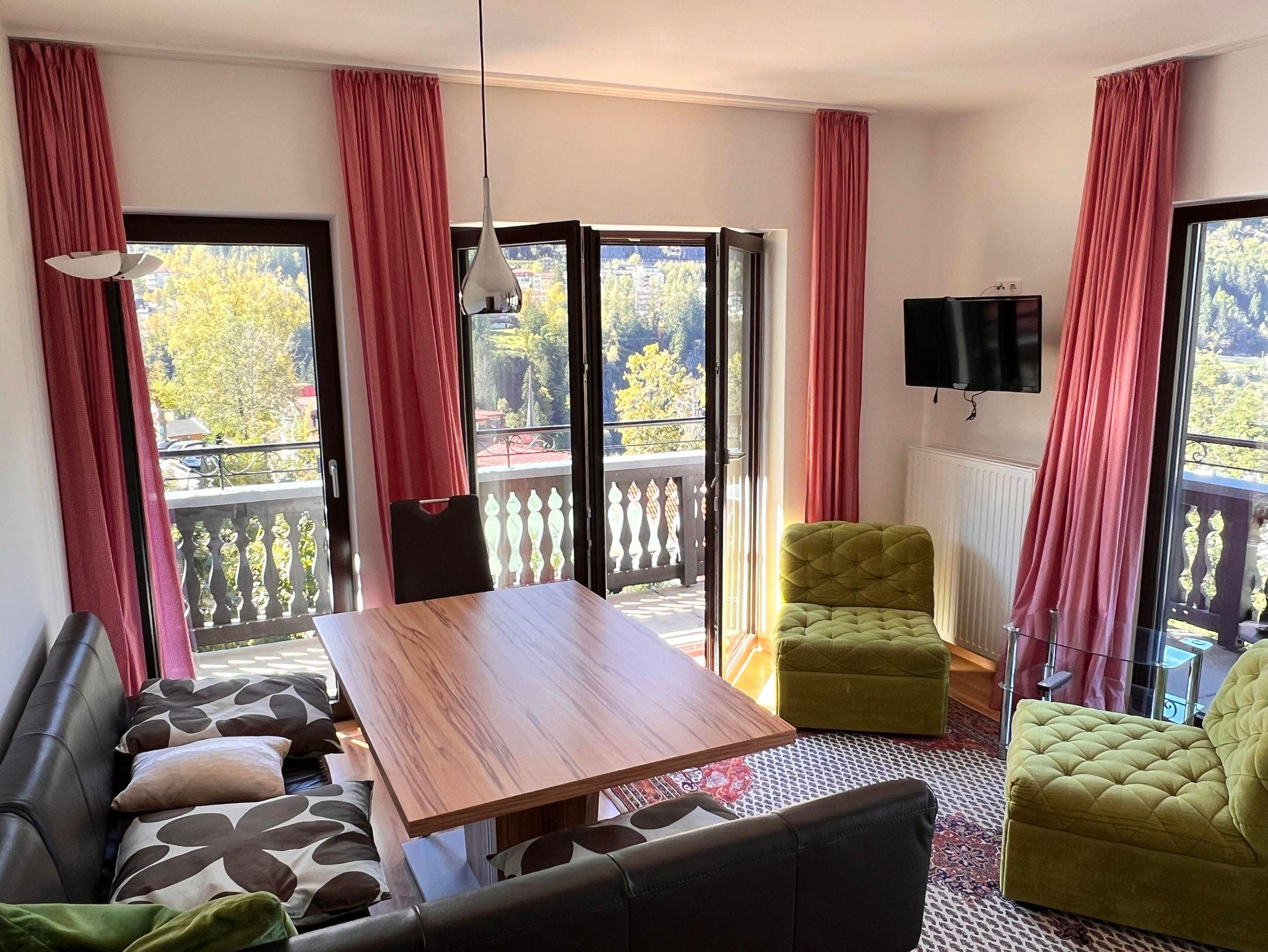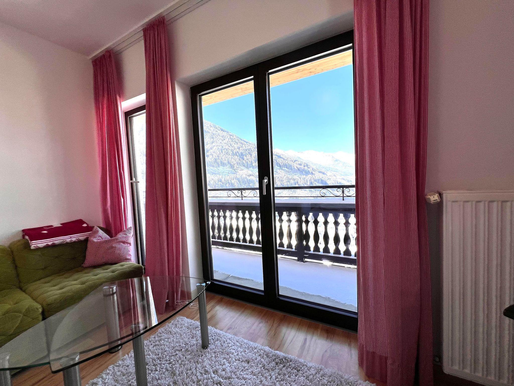 Diese Wohnung gibt durch seine bodentiefen Fenstern einen fantastischen Blick auf die Bergwelt, das Tal und auf die Stadt frei.