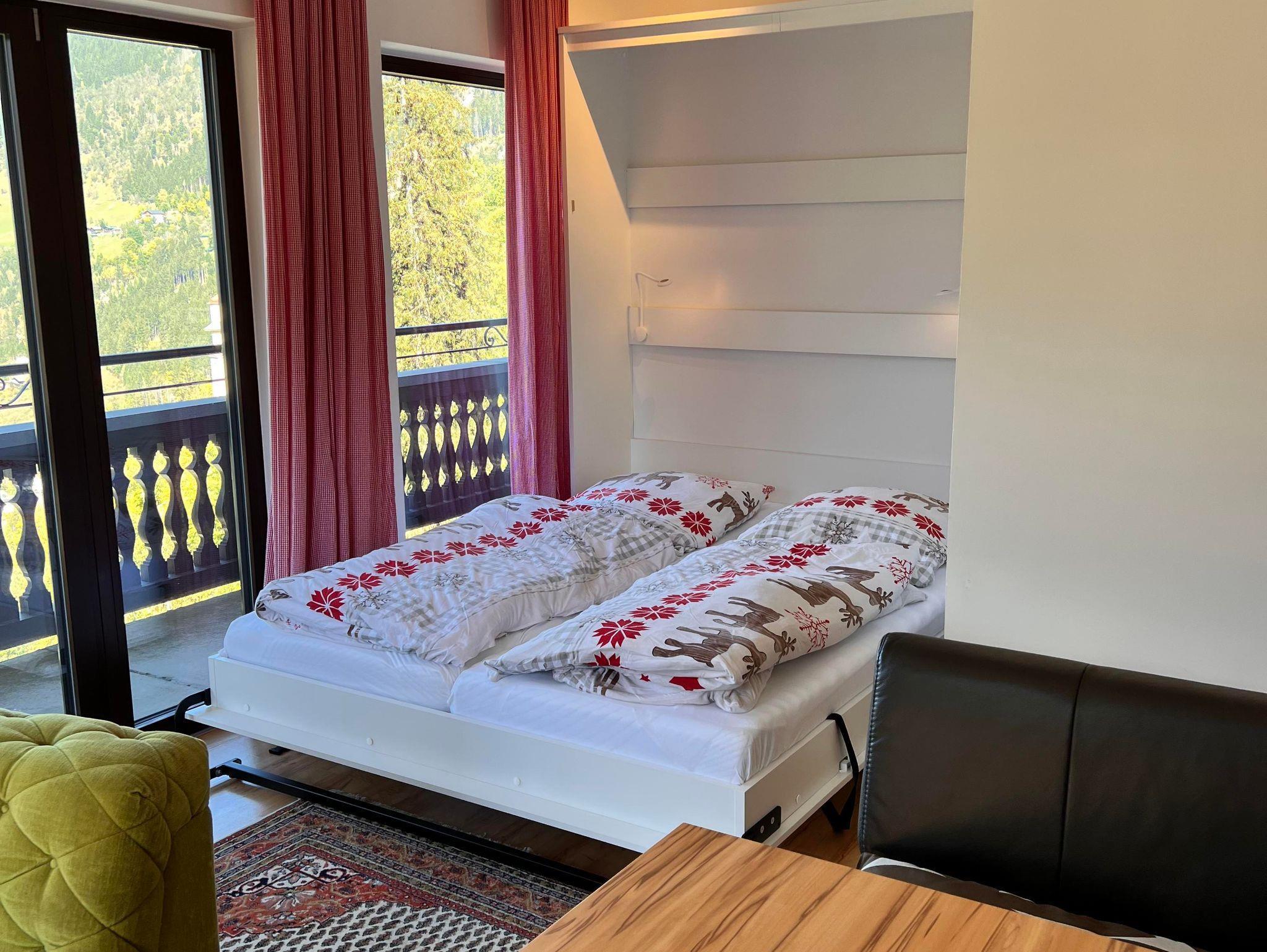 Schon vom Bett aus seht ihr die Sonnenstrahlen über die Berggipfel klettern, könnt die prächtigen Skiabfahrten verfolgen und die herrliche Ruhe genießen.