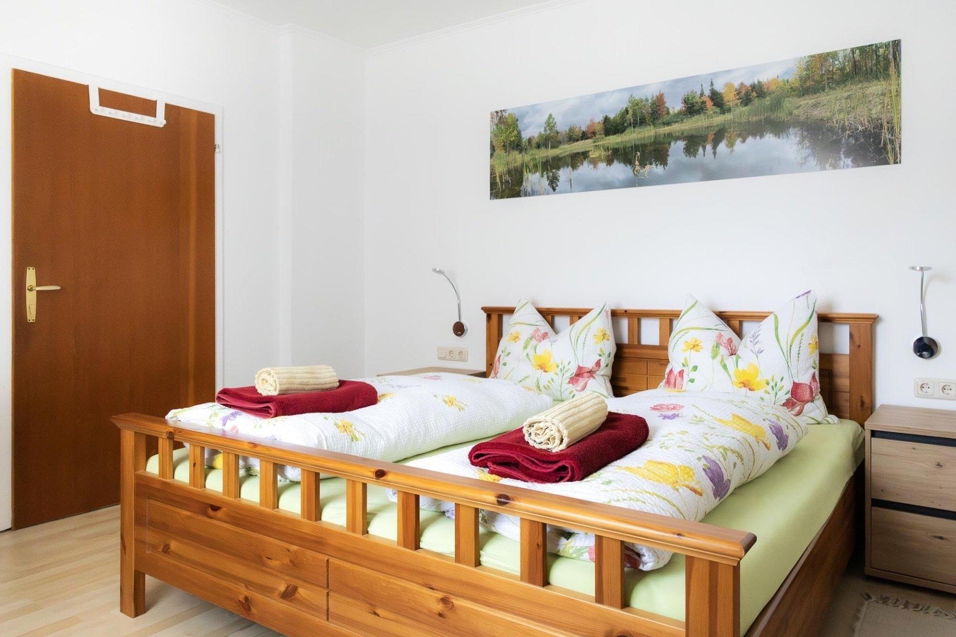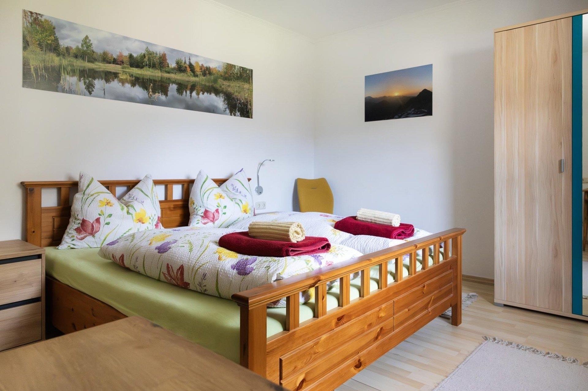 Das Appartement Schareckblick befindet sich im Obergeschoß eines Reihenhaus-Fünftels. Die Wohnung besteht aus einem großen Schlafzimmer mit Doppelbett, einem kleineren Schlafzimmer mit einem für Erwachsene geeignetem Etagenbett sowie einer Wohnküche mit einer Schlaf-Couch für weitere zwei Personen. Ein getrenntes Bad und WC runden das Angebot ab. Zusätzlich gibt es noch eine ca. 8 qm große, südseitige Loggia.