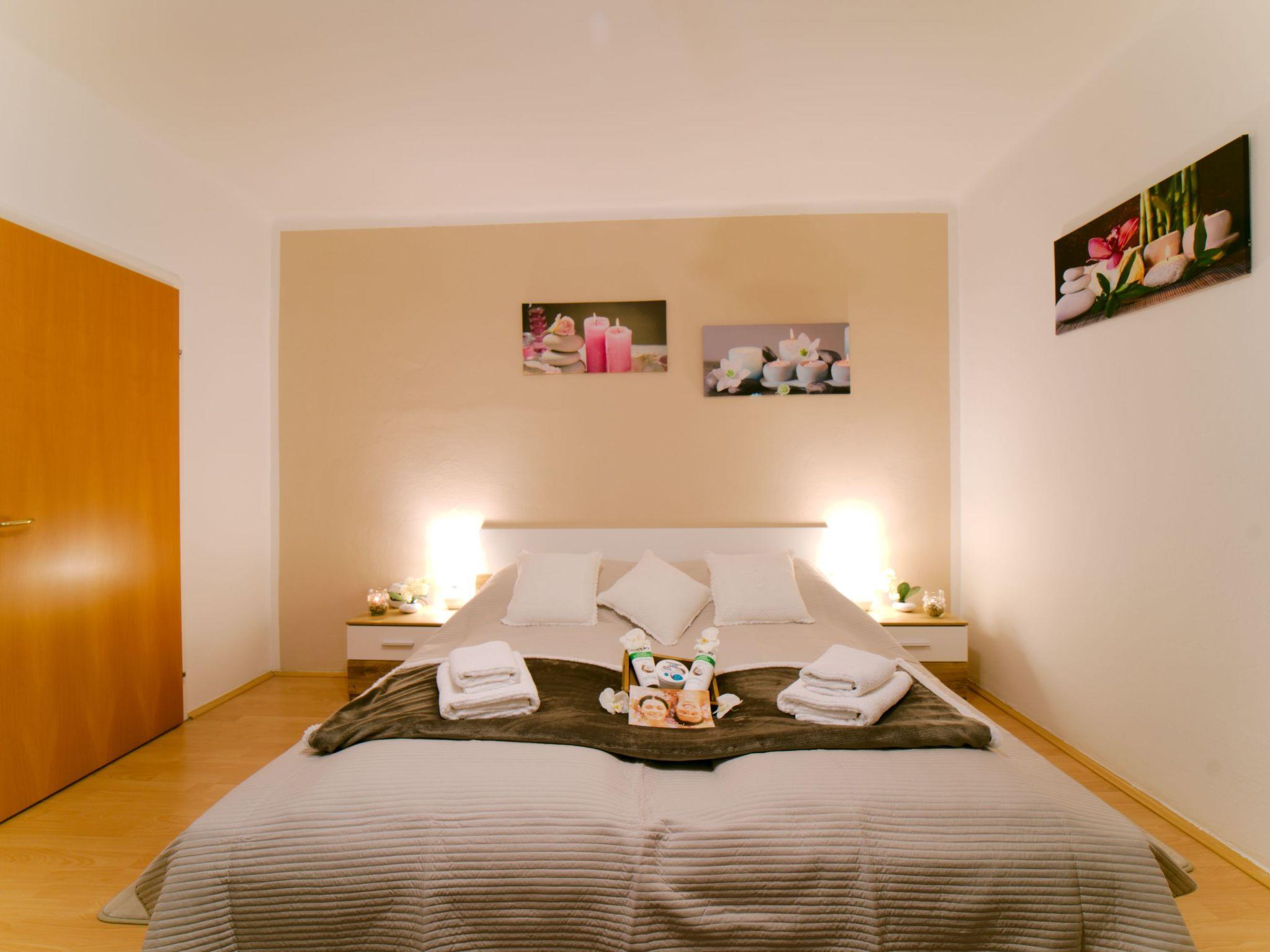 The ANDA holiday flat has its own entrance. A staircase leads to the first floor where you can use the two rooms, kitchen, toilet, bathroom, balcony and terrace without being disturbed. Our beautiful holiday flat offers: two very cosy bedrooms with double bed, flat screen TV, satellite TV, kitchenette with sink, fridge, microwave, cooker, toaster, coffee machine, kettle, terrace (8m²) and balcony (3m²), bathroom with bathtub and shower with free care products, bed linen, towels, bath towels are provided, WLAN and parking free of charge.