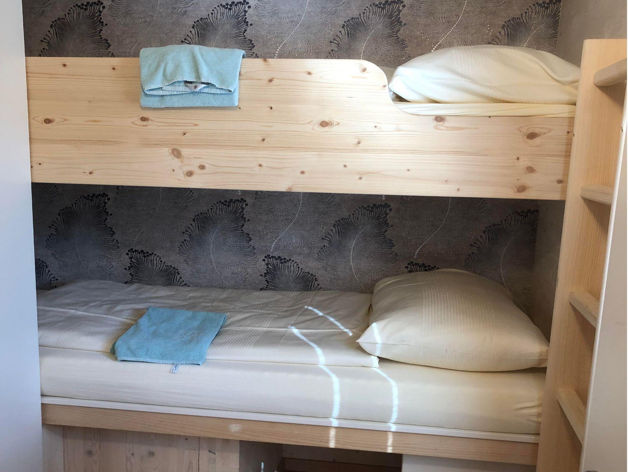 Unsere ebenerdigen Holuiday-Appartements (Cubes) befindet sich direkt neben unserer hauseigenen Poolanlage mit Salzwasserpool und Wasserrutsche. Diese Zimmer sind mit 2 getrennten Schlafzimmern (1x Doppelbett + 1x Stockbett) sowie einer Küche mit Essecke als auch einem Badezimmer mit WC, Dusche und Waschbecken sowie einer Außenterrasse ausgestattet.