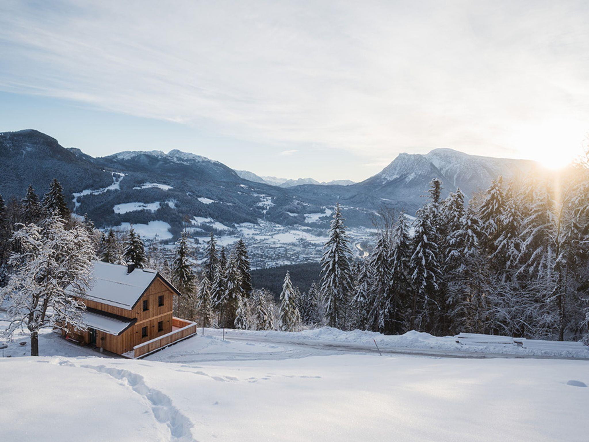 In absoluter Ruhe und Abgeschiedenheit liegt das Chalet Jochwand mit Blick auf den Hallstättersee und die umliegende Bergwelt.