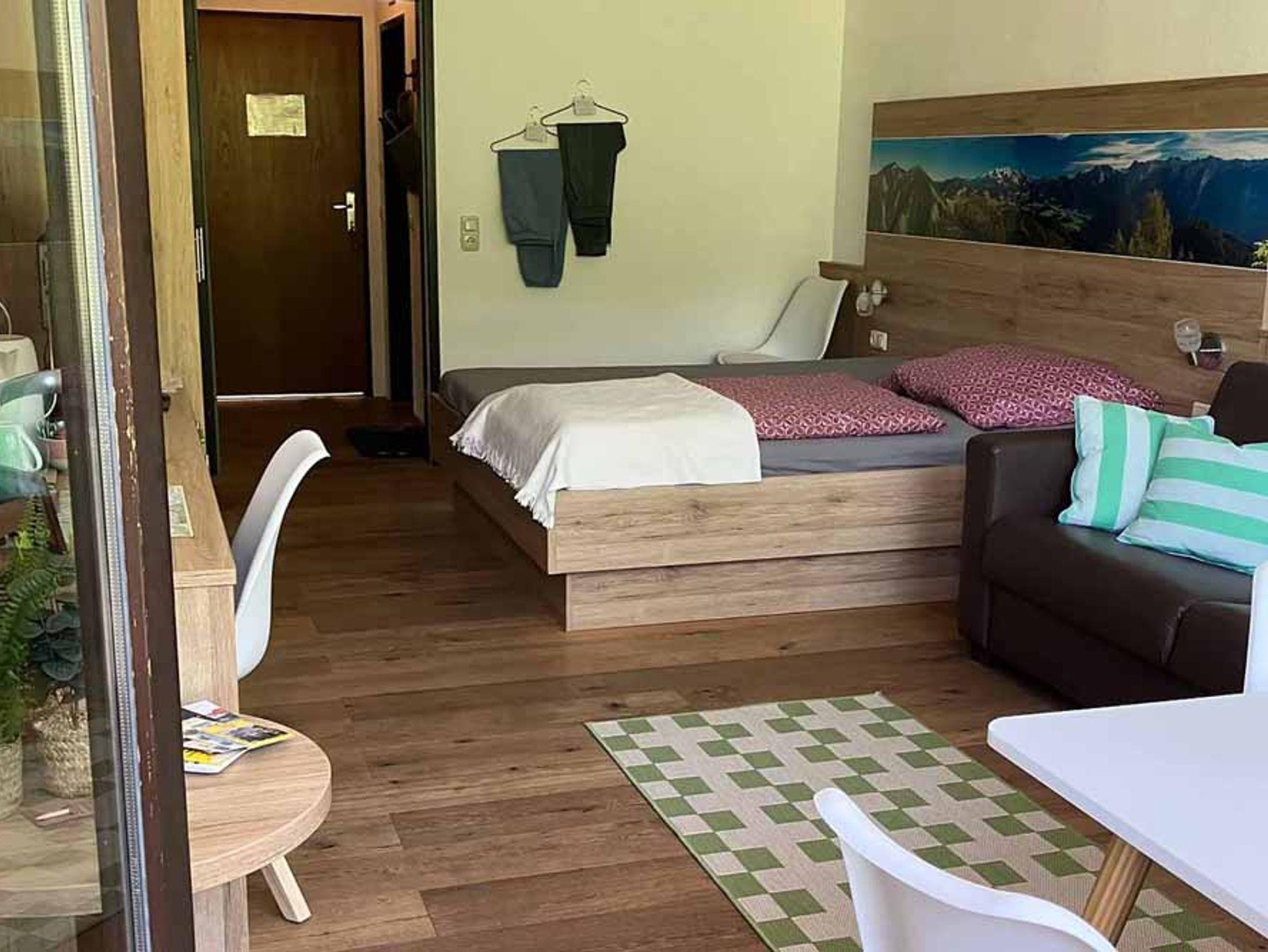 • 1 Wohn-/Schlafraum mit Doppelbett und Schlafsofa für bis zu 4 Personen