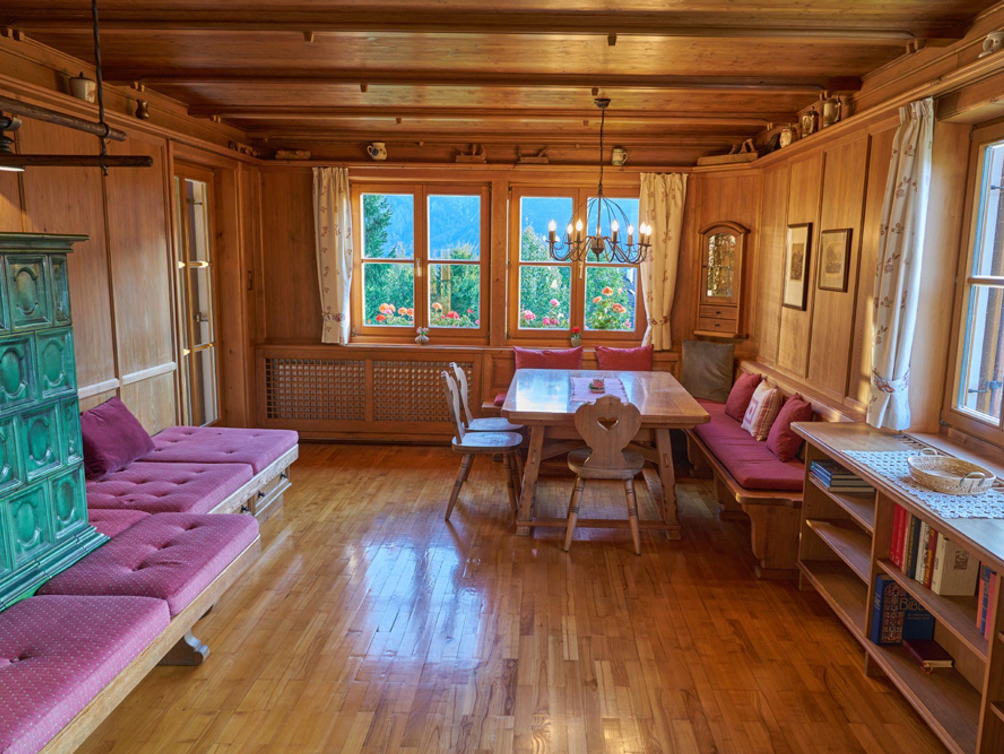 Hoch über dem 'Goiserer' Tal am Fuße der Ewigen Wand liegt die Ewinger Lodge, in absoluter ruhiger und sonniger Lage. Das Ferienhaus verfügt über vier Schlafzimmer in traditionellem alpinen Stil mit Zirbenholz, drei Bäder, drei separate Toiletten, einer kleinen Bücherei/Fernsehzimmer, sowie einem großzügigen und gemütlichen Ess- und Wohnbereich mit einem Kachelofen. Eines der vier Schlafzimmer verfügt darüber hinaus, noch über einen Balkon mit Blick auf die umliegenden Berge. Auf der Terrasse mit anschließendem weitläufigen Garten, gibt es eine Grillmöglichkeit und einen Außenessbereich. Hier können Sie nach einem ereignisreichen Tag mit Blick über die Berge entspannen und den Tag ausklingen lassen. Und wenn das Wetter einmal nicht so mitspielt, können Sie die Sauna im Untergeschoß nützen oder es sich in der Stube, mit Büchern oder im Fernsehzimmer gemütlich machen. Lodge = Eine Unterkunft für Bergsport und Naturerlebnis.