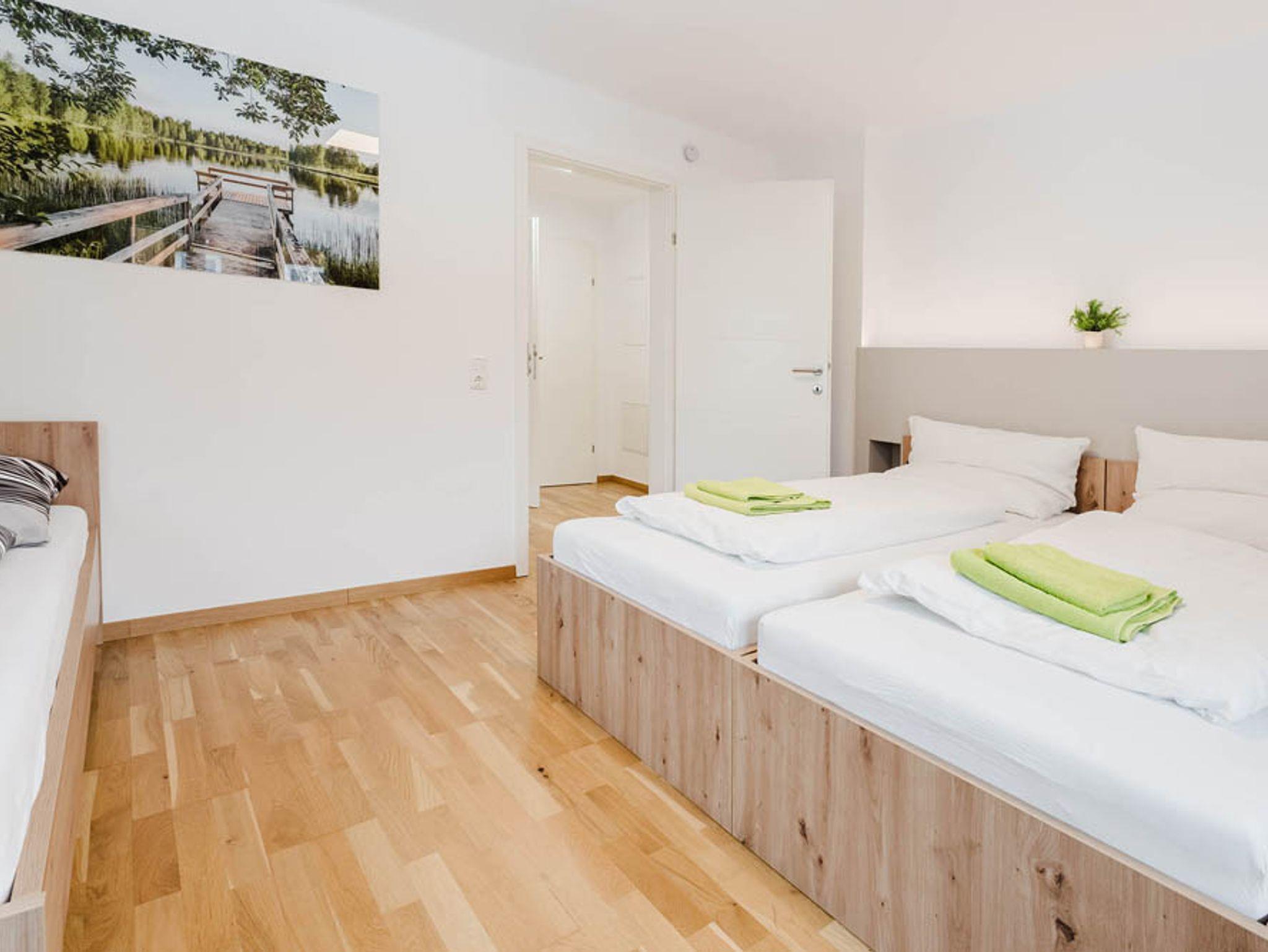 Das Apartment im Erdgeschoß verfu¨gt u¨ber ein gemu¨tliches Wohnzimmer mit vollausgestatteter, moderner Einbauku¨che und großzu¨giger Essgruppe, ein gefa¨lliges Badezimmer mit Walk-In Dusche und Doppelwaschbecken, extra WC und 2 gera¨umige Schlafzimmer. Die Bettenverteilung in den Schlafra¨umen ist individuell gestaltbar und wird fu¨r Ihre Bedu¨rfnisse hergerichtet.