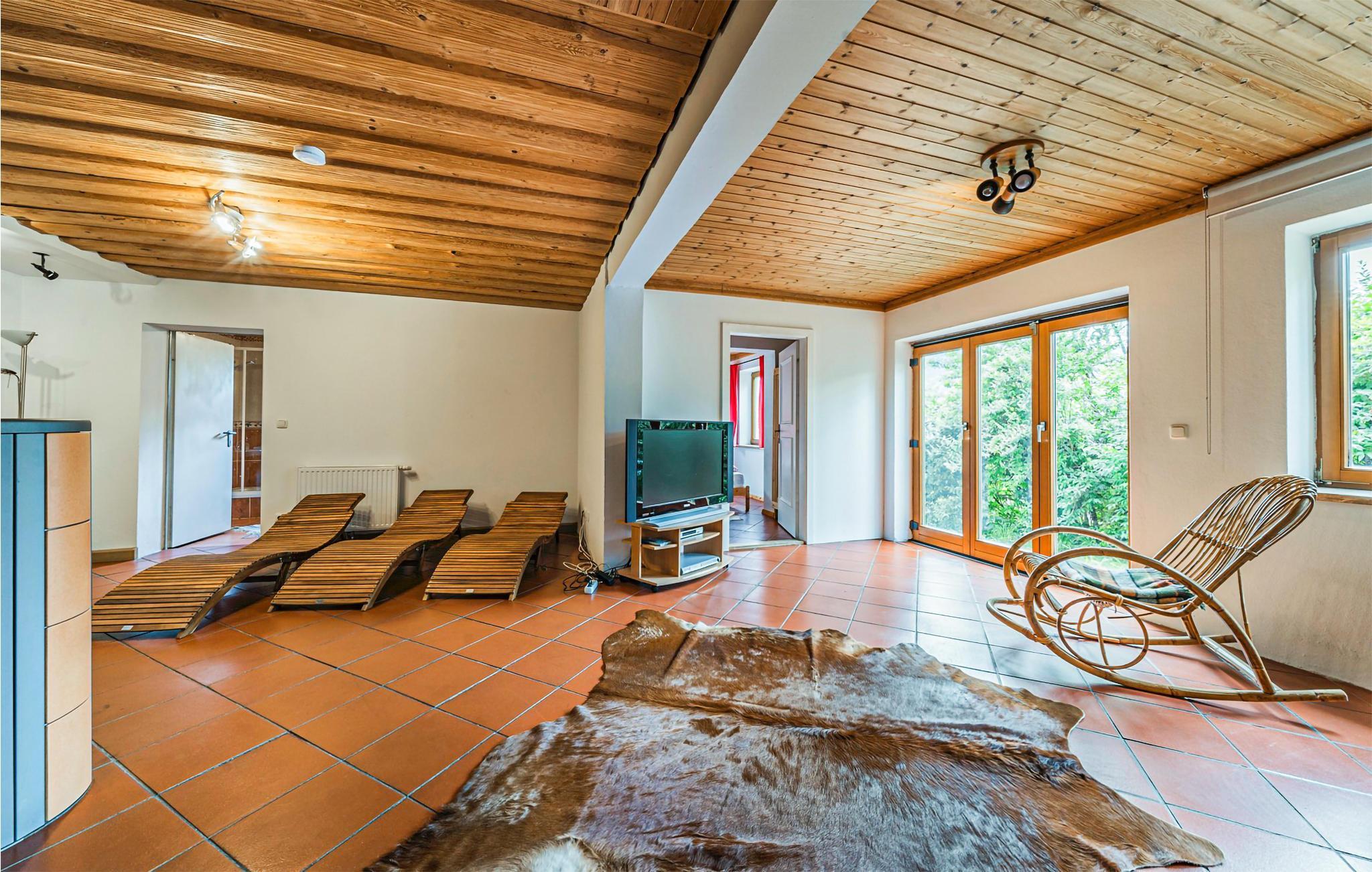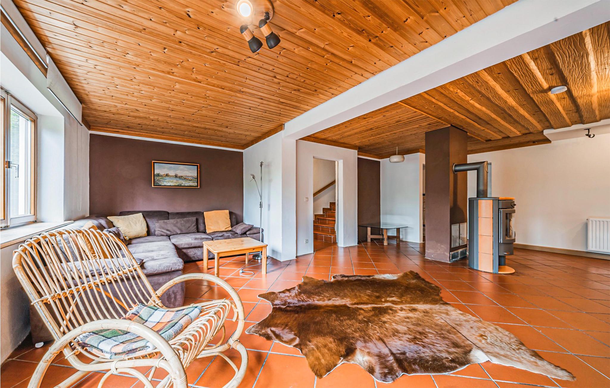 Stort, rustikt feriehus med brændeovn og udsigt til de smukke omgivelser.