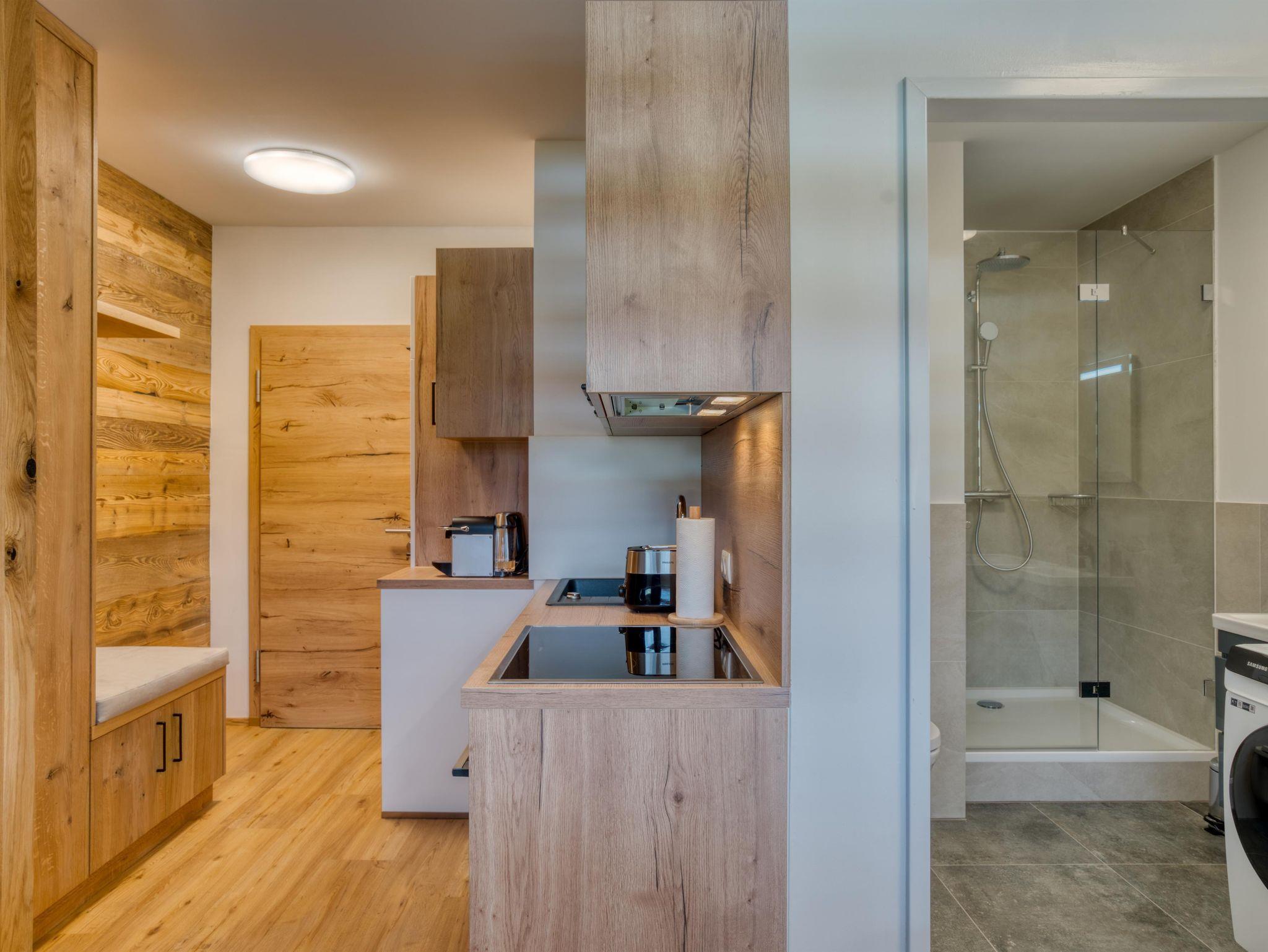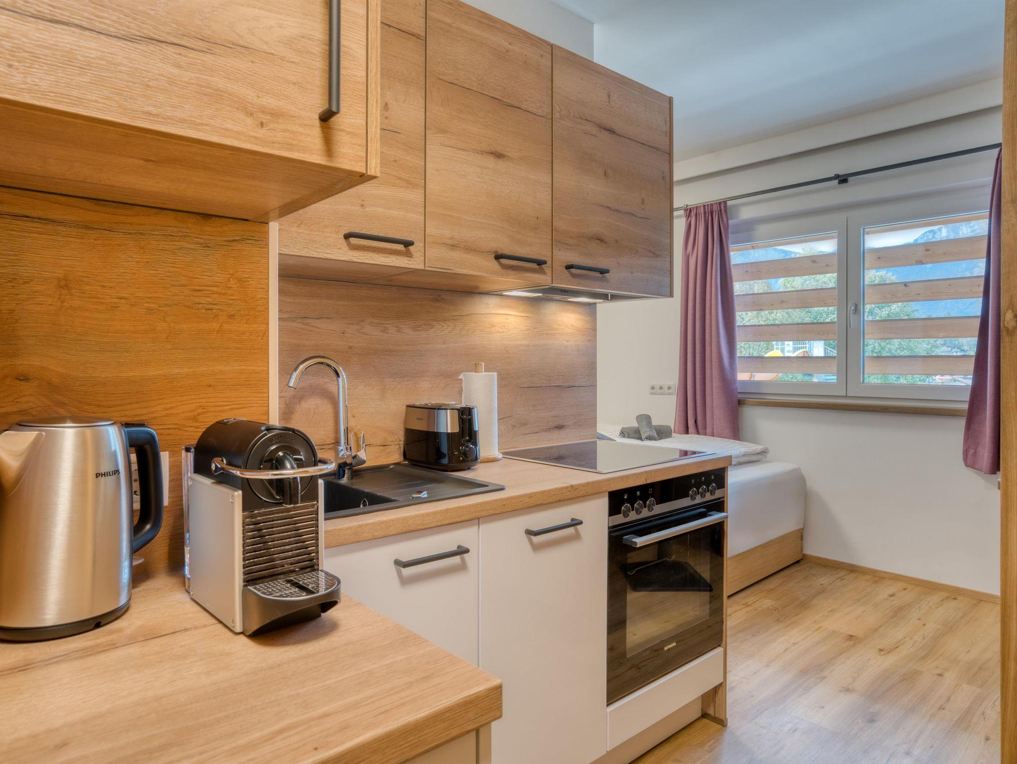 Unser Mini-Apartment 9 ist Dein zu Hause auf Zeit im malerischen Bad Häring. Durch eine Souterrain Lage befindet sich das Apartment etwa 0,5m unter Bodenniveau. Trotzdem bietet die Wohnung genügend Tageslicht. Auf 20 Quadratmetern erwartet dich ein Schlafzimmer (Doppelbett). An der Küchzeile lassen sich wohlschmeckende Mahlzeiten zubereiten.