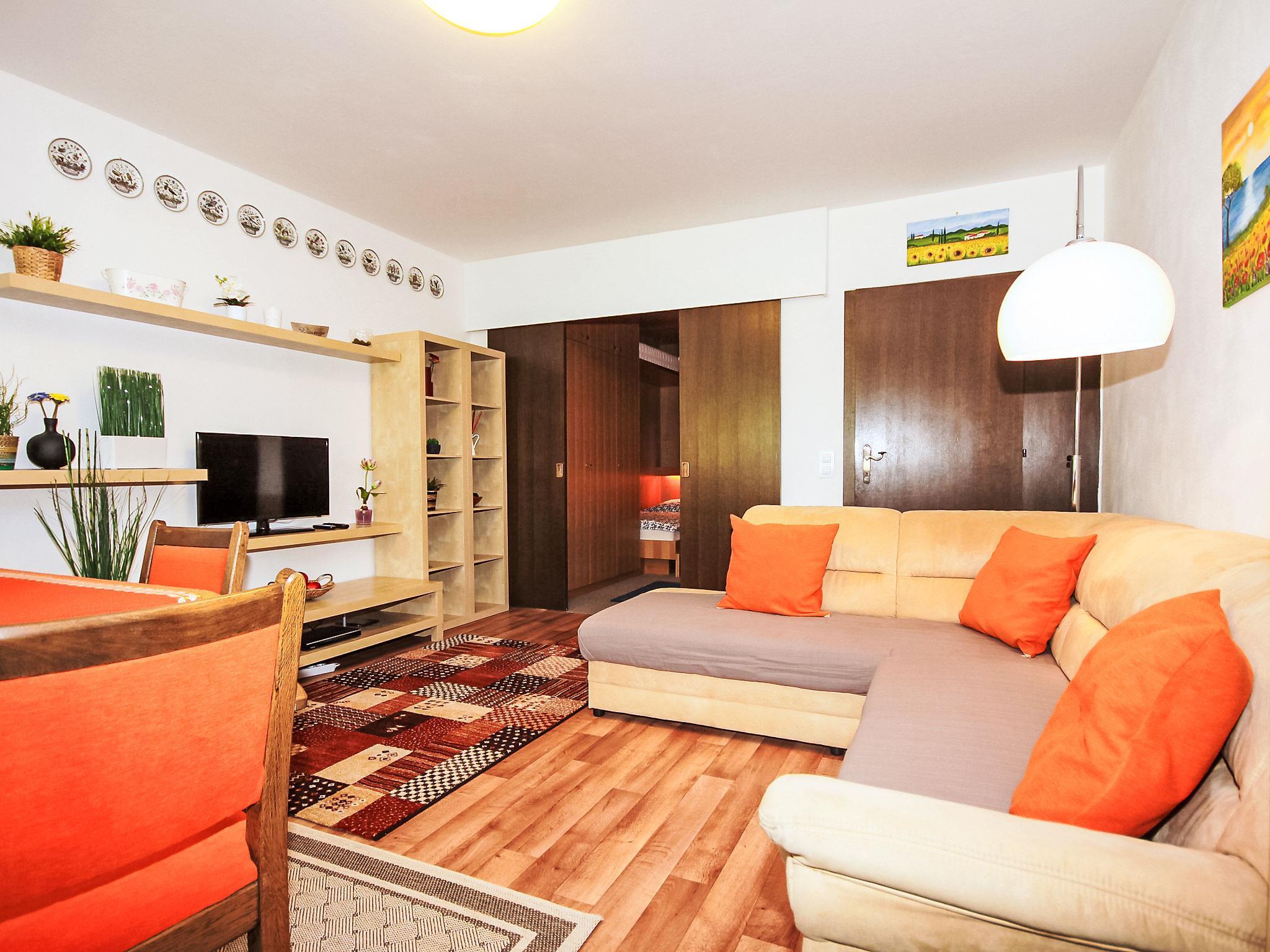 "Walter", 2-room apartment 42 m2 on 2nd floor. Object suitable for 3 adults. Renovated in 2014, comfortable and cosy furnishings: entrance hall with separate WC. Living/dining room with 1 sofabed, dining nook and satellite TV (flat screen). Exit to the balcony. 1 small room with sliding door, without window with 2 beds (90 cm, length 200 cm). Open kitchen (oven, dishwasher, 4 ceramic glass hob hotplates, toaster, kettle, microwave, electric coffee machine). Bath/shower. Parquet floors. Small balcony 7 m2. Balcony furniture. Very beautiful view of the mountains. Please note: non-smokers only. Smoke alarm. Underground parking space is in the building with lift access. 50402-000685-2020