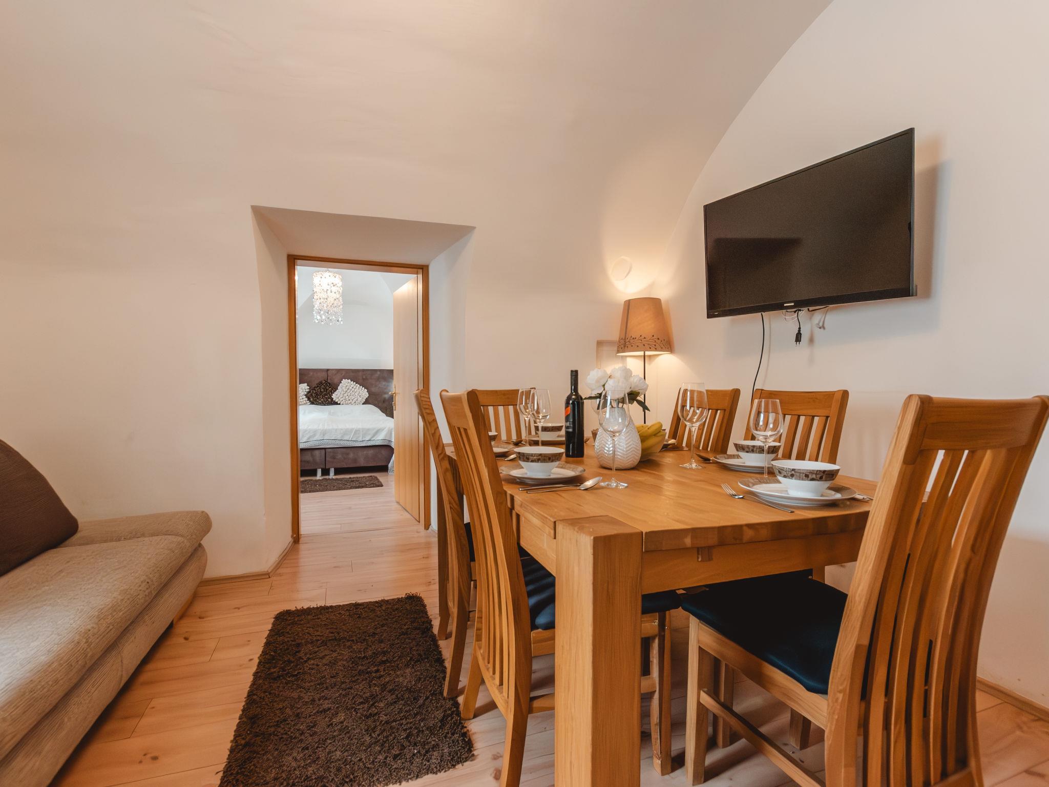 "Top 1", 3-room apartment 56 m2, on the ground floor. Object suitable for 4 adults. Spacious, fully renovated in 2014, comfortable and cosy furnishings: entrance hall. Living/dining room with 1 double sofabed, dining table and cable TV (flat screen). 2 double bedrooms. Open kitchen (oven, dishwasher, 4 ceramic glass hob hotplates, toaster, kettle, electric coffee machine). Shower/WC. Parquet floors. Facilities: washing machine. Internet (WiFi). Parking at the house. Please note: non-smokers only. 50402-000068-2020