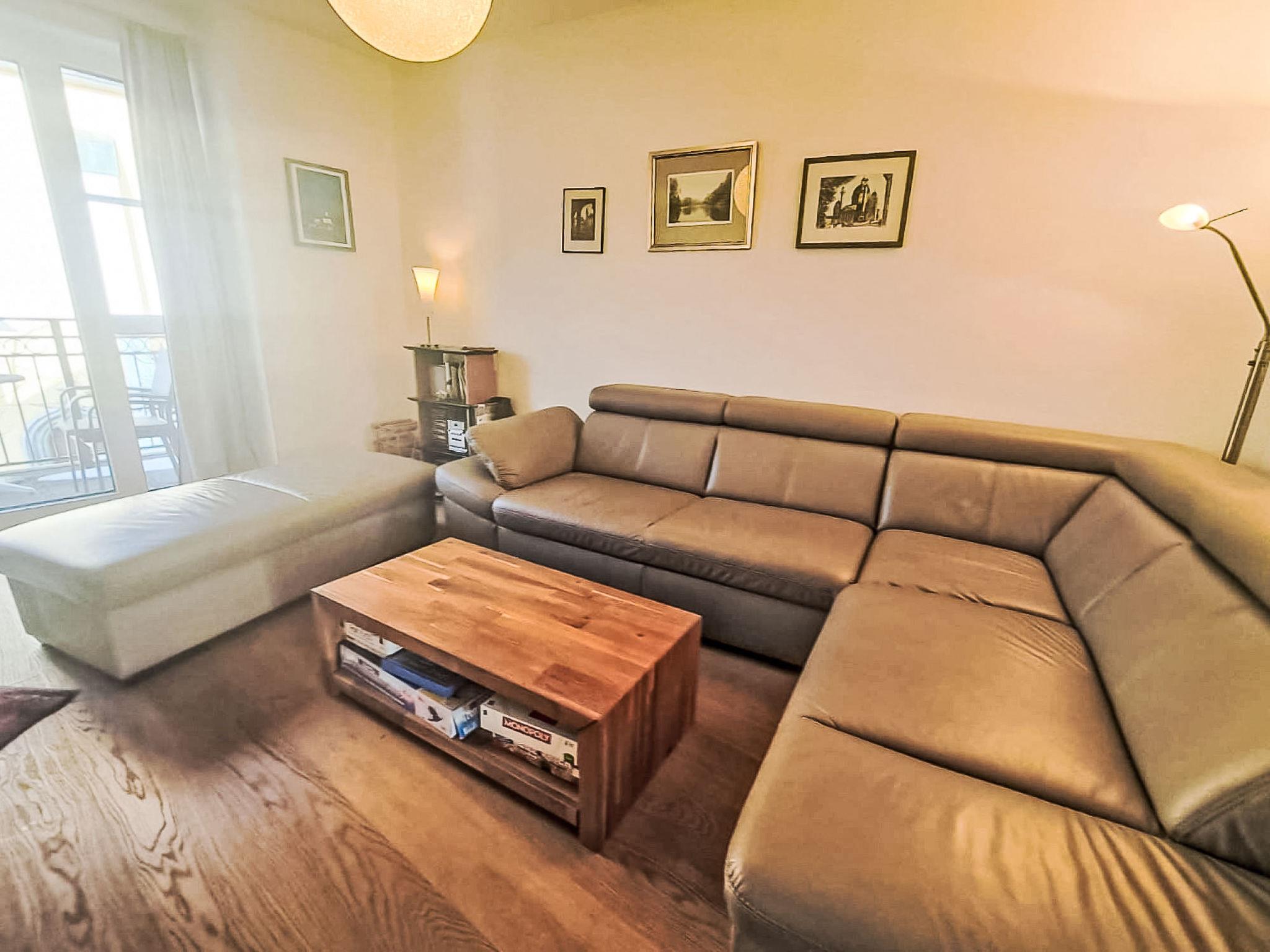 "Dr. Adler Top 2", 3-room apartment. Spacious and bright, very comfortable and tasteful furnishings: entrance hall. Living/dining room with 1 sofabed, dining table and TV (flat screen). Exit to the balcony. 1 double bedroom. 1 room with 2 beds. Open kitchen (oven, dishwasher, 4 ceramic glass hob hotplates, toaster, kettle, microwave). Shower/WC, sep. WC. Wooden floors. Garage space n 2. Please note: suitable for families. Non-smokers only.