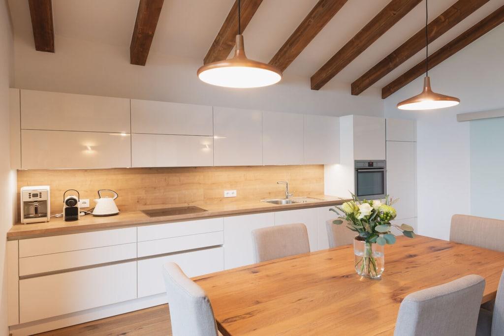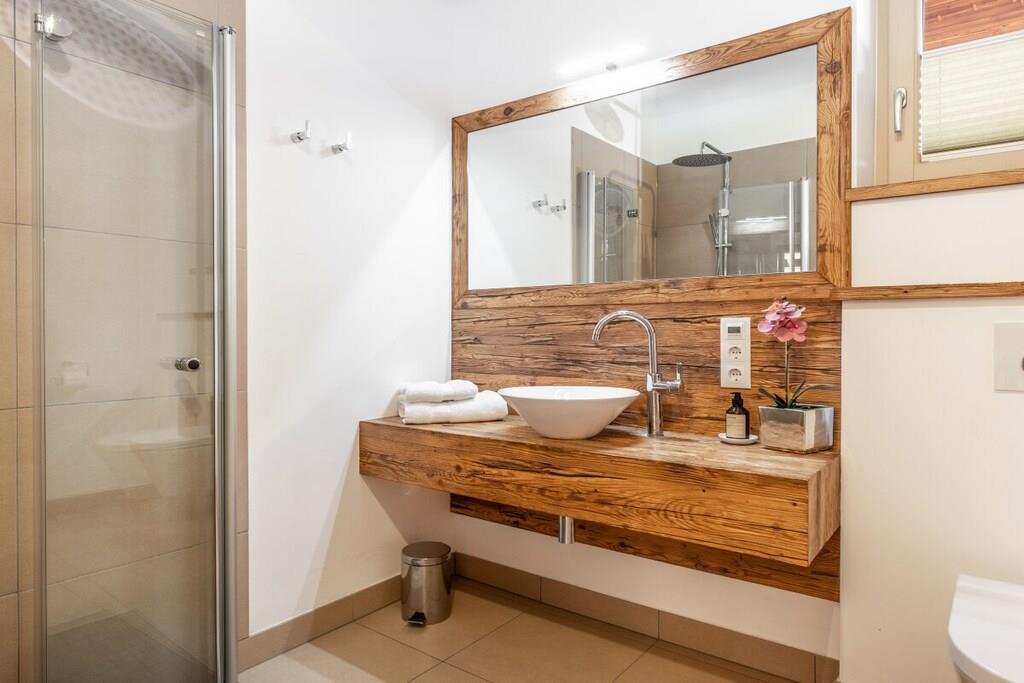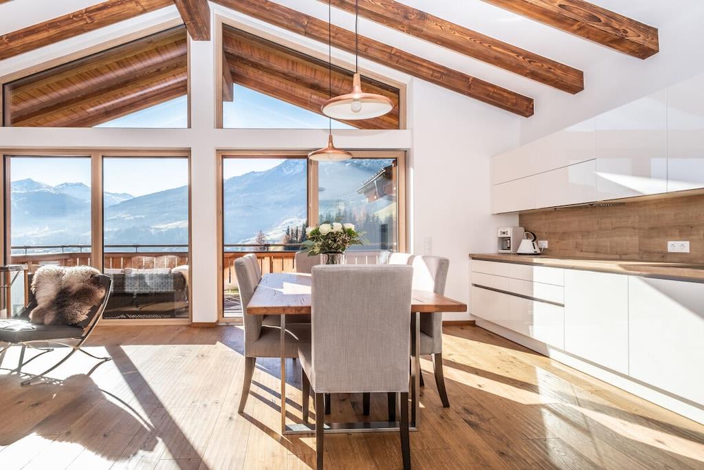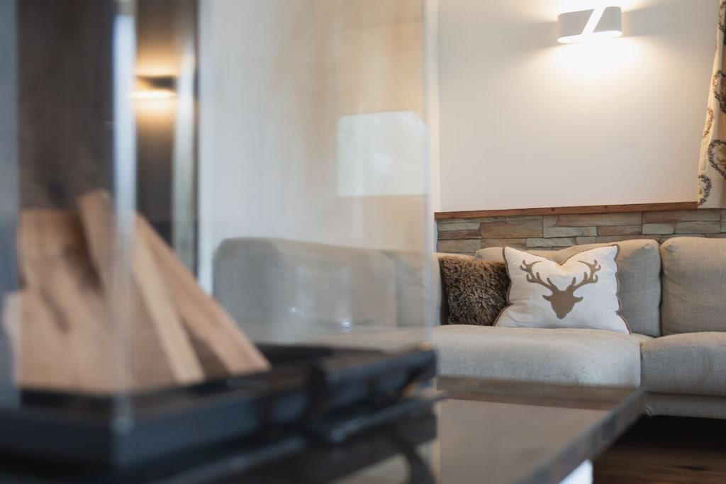 Chalet-Apartment mit Penthouse Flair Mit viel Liebe zum Detail und traditionellen Elementen ausgestattet, fügt sich unser Chalet-Apartment nahtlos in die alpine Umgebung ein. Es bietet Platz für insgesamt bis zu 8 Personen. Neben einer Fußbodenheizung bringt der Kamin in den kalten Wintermonaten eine wohlige Wärme. Durch die große Panoramafront, scheint die Gasteiner Bergwelt zum Greifen nah. Die hochwertige Ausstattung, eine freistehende Badewanne und der Balkon laden zum Entspannen ein. Das Chalet-Apartment ist ganzjährig mit dem Auto erreichbar. Im Winter ist die Mitnahme von Schneeketten empfehlenswert. Ein überdachtes Carport und ein weiterer Parkplatz steht Ihnen zur Verfügung.