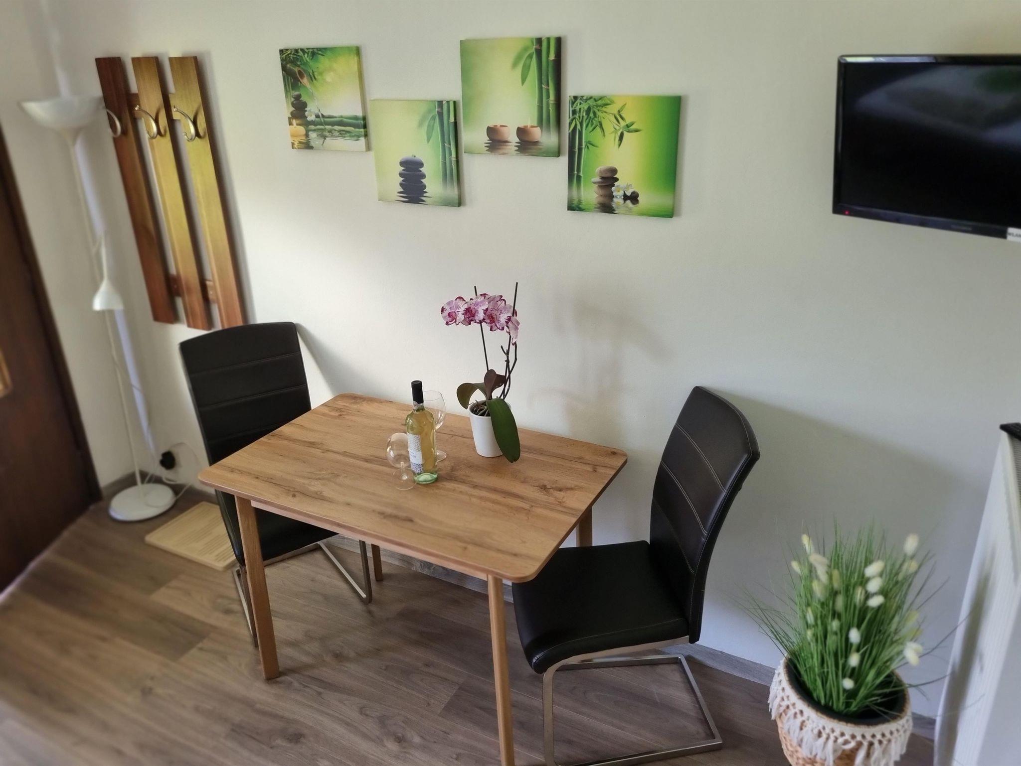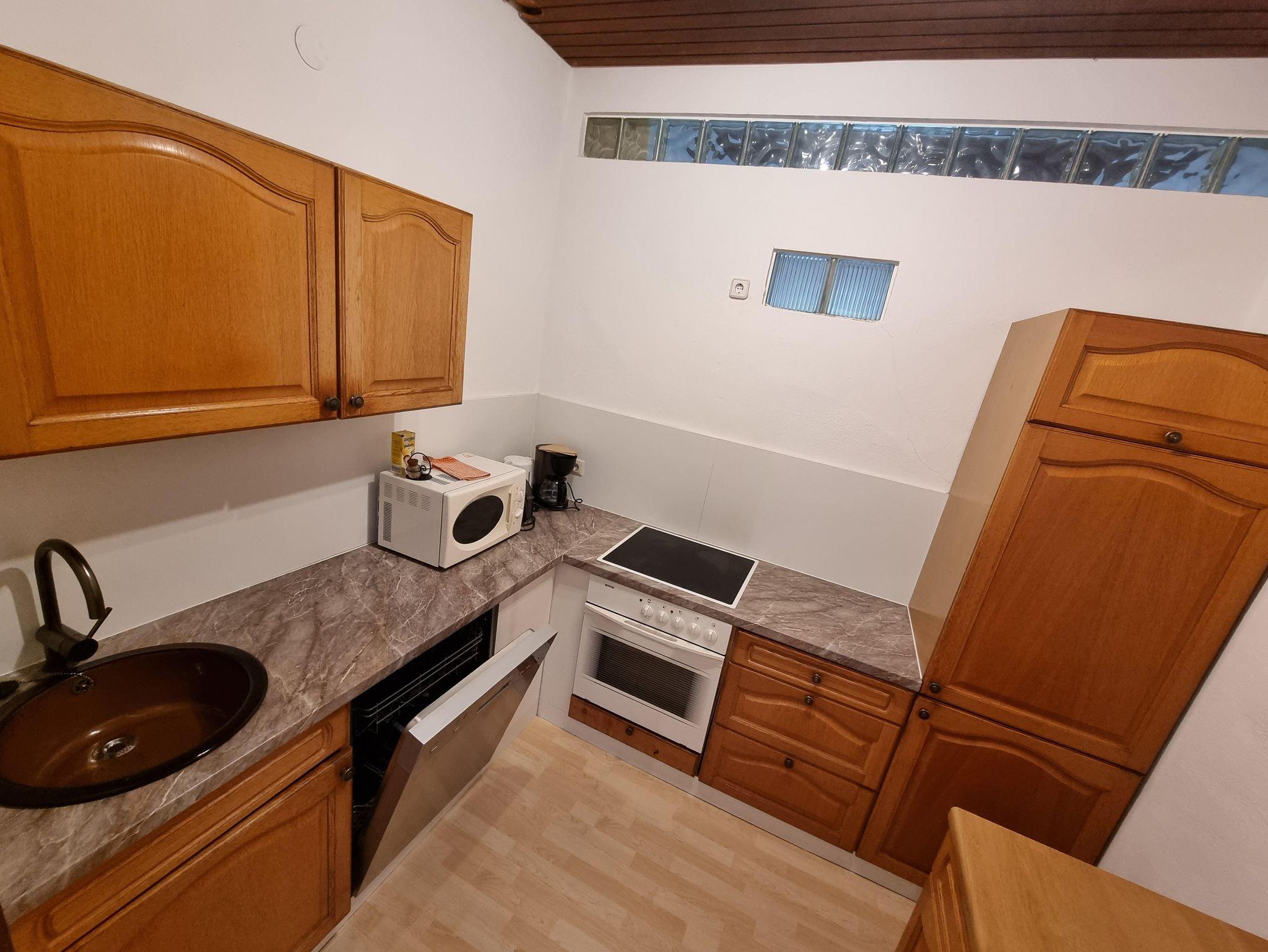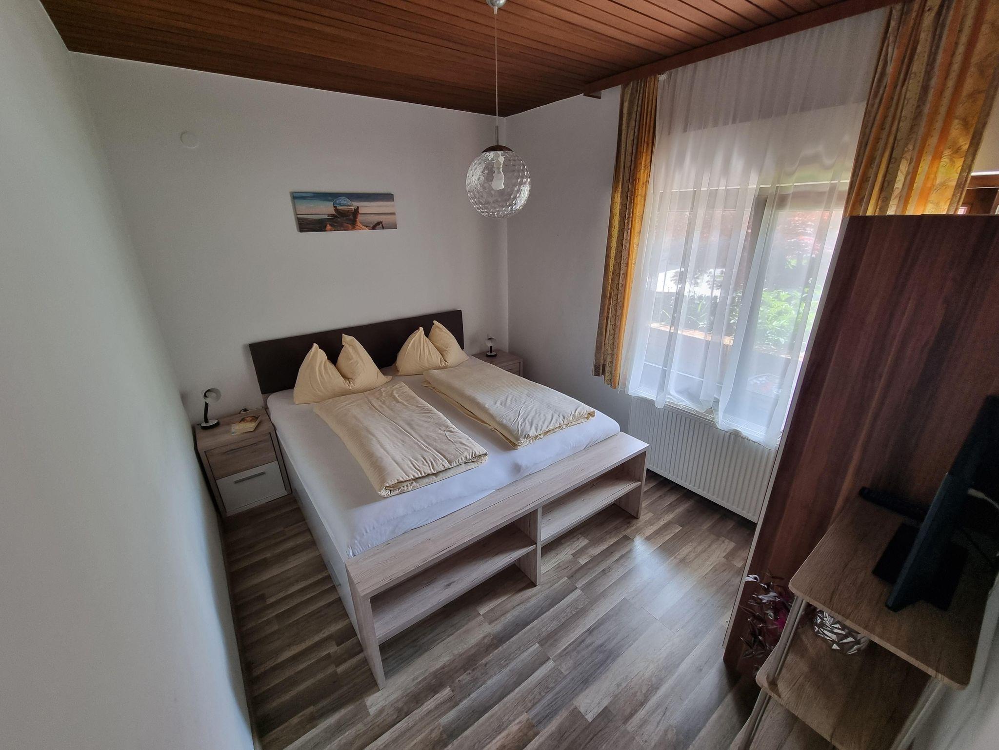 Dieses Appartement bietet Platz für bis zu 6 Personen und hat eine Größe von ca. 60 m2 und befindet sich im Erdgeschoss. Es verfügt über ein Schlafzimmer mit Doppelbett und Schlafsofa, einem Wohn- / Essbereich mit Schalfcouch, einer komplett ausgestatteten Küche (E-Herd mit Backofen, Kühlschrank , Mikrowelle, Filter Kaffeemaschine, Toaster und Wasserkocher) und einem Badezimmer. Ein weiteres Schlafzimmer mit Doppelbett und eigenem Badezimmer befindet sich gegenüber dem Flur.