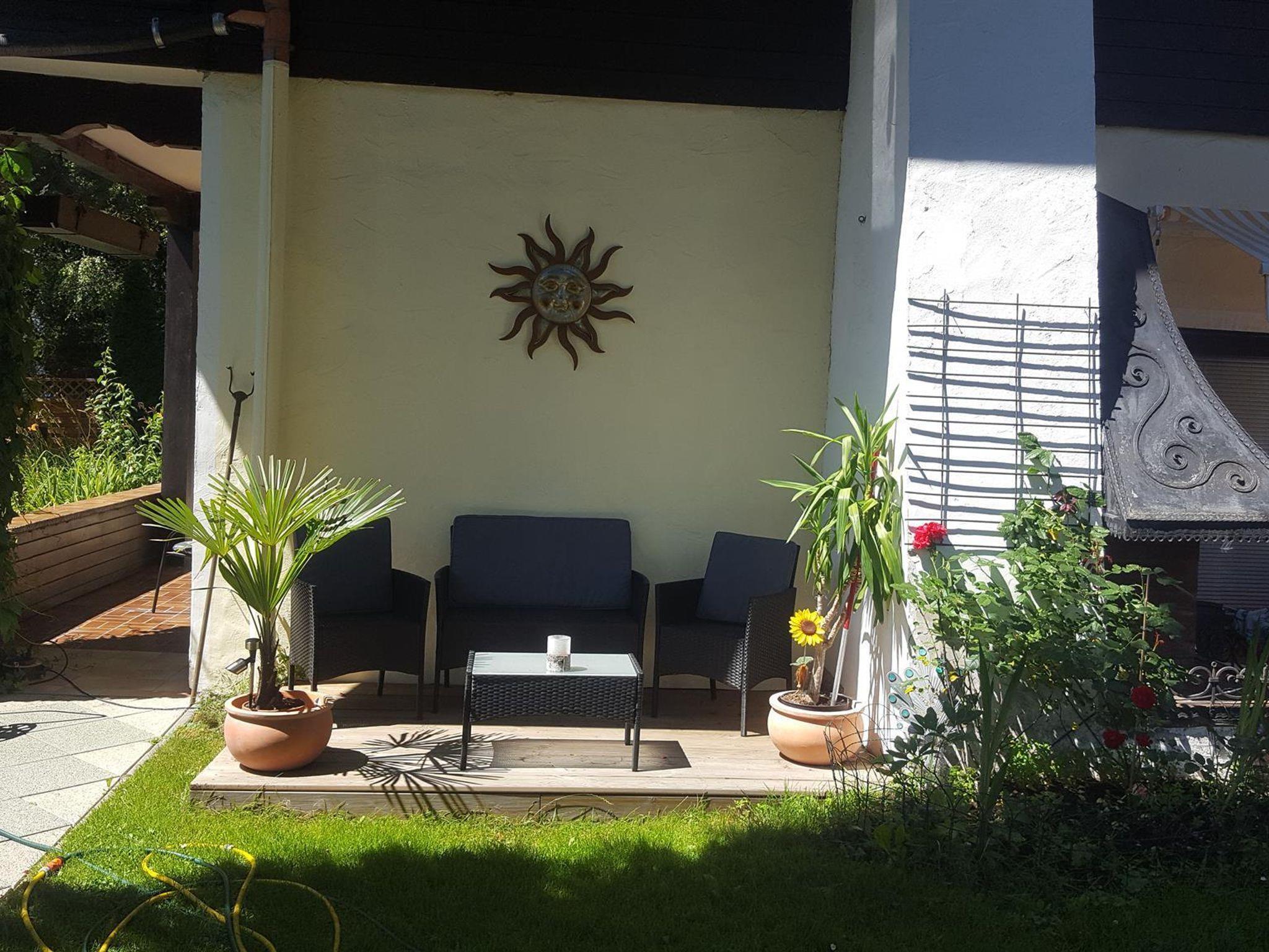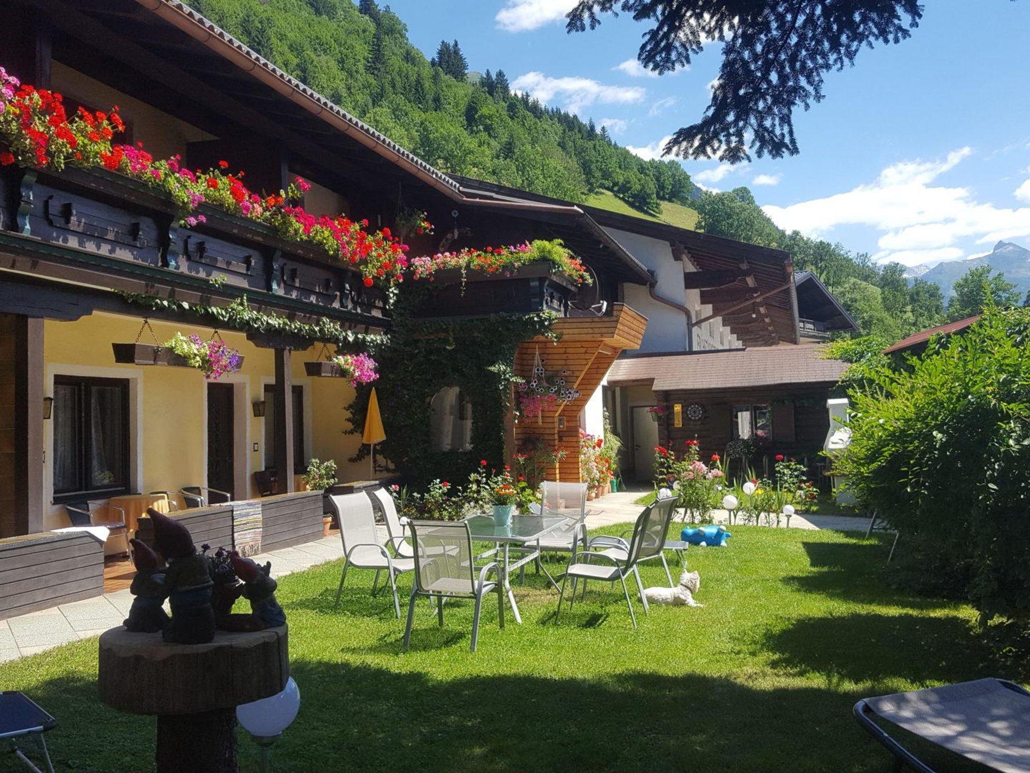 Der dazugehörige Vorgarten lädt ein die letzten Sonnenstrahlen des Tages zu genießen bevor die Sonne über den Gasteiner Bergen verschwindet.