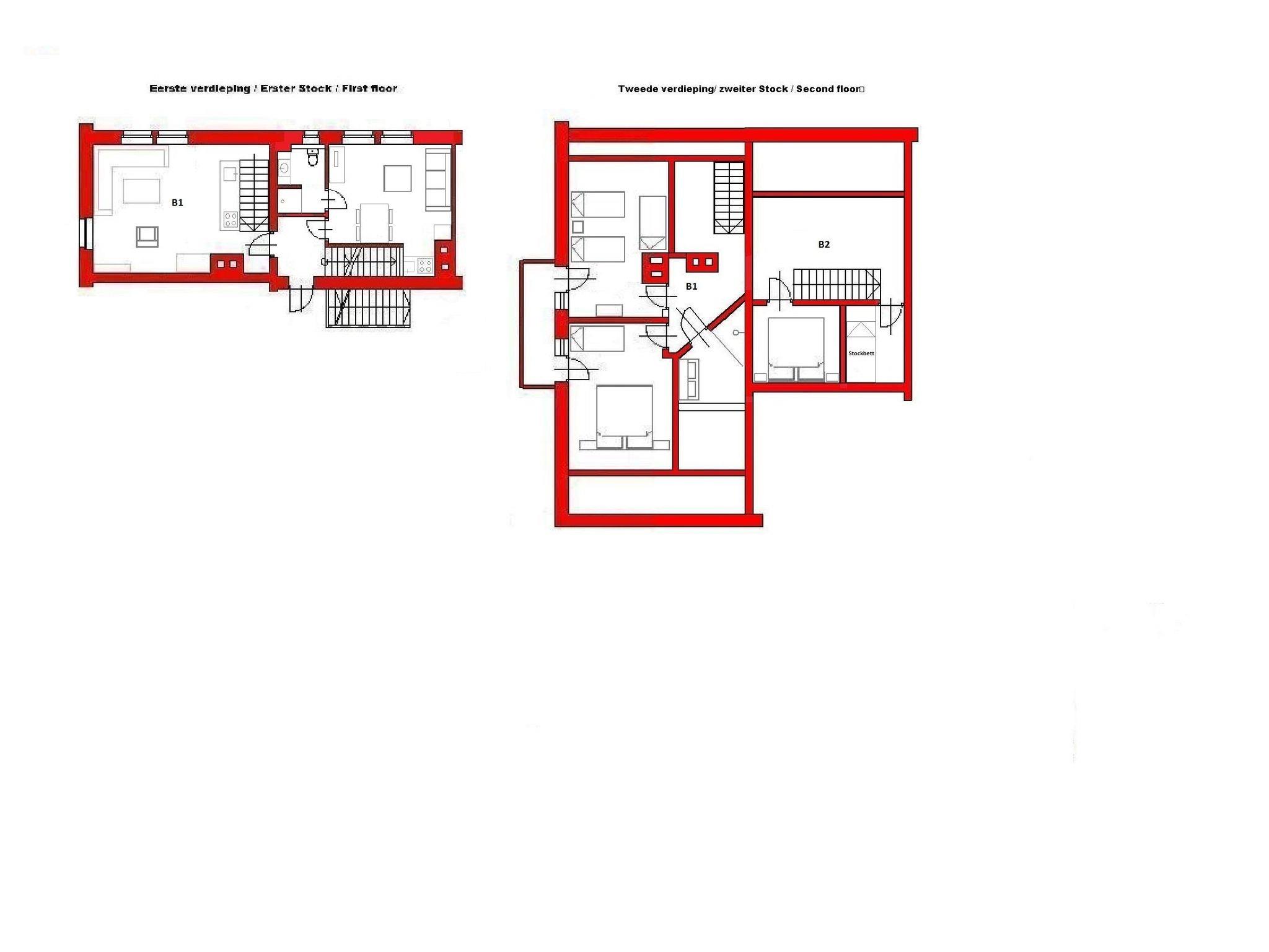Eine zusammengesetzte Wohnung aus zwei Wohnungen (B1 + B2), mit 4 Schlafzimmern, 2 Badezimmern und 2 Wohnküchen.