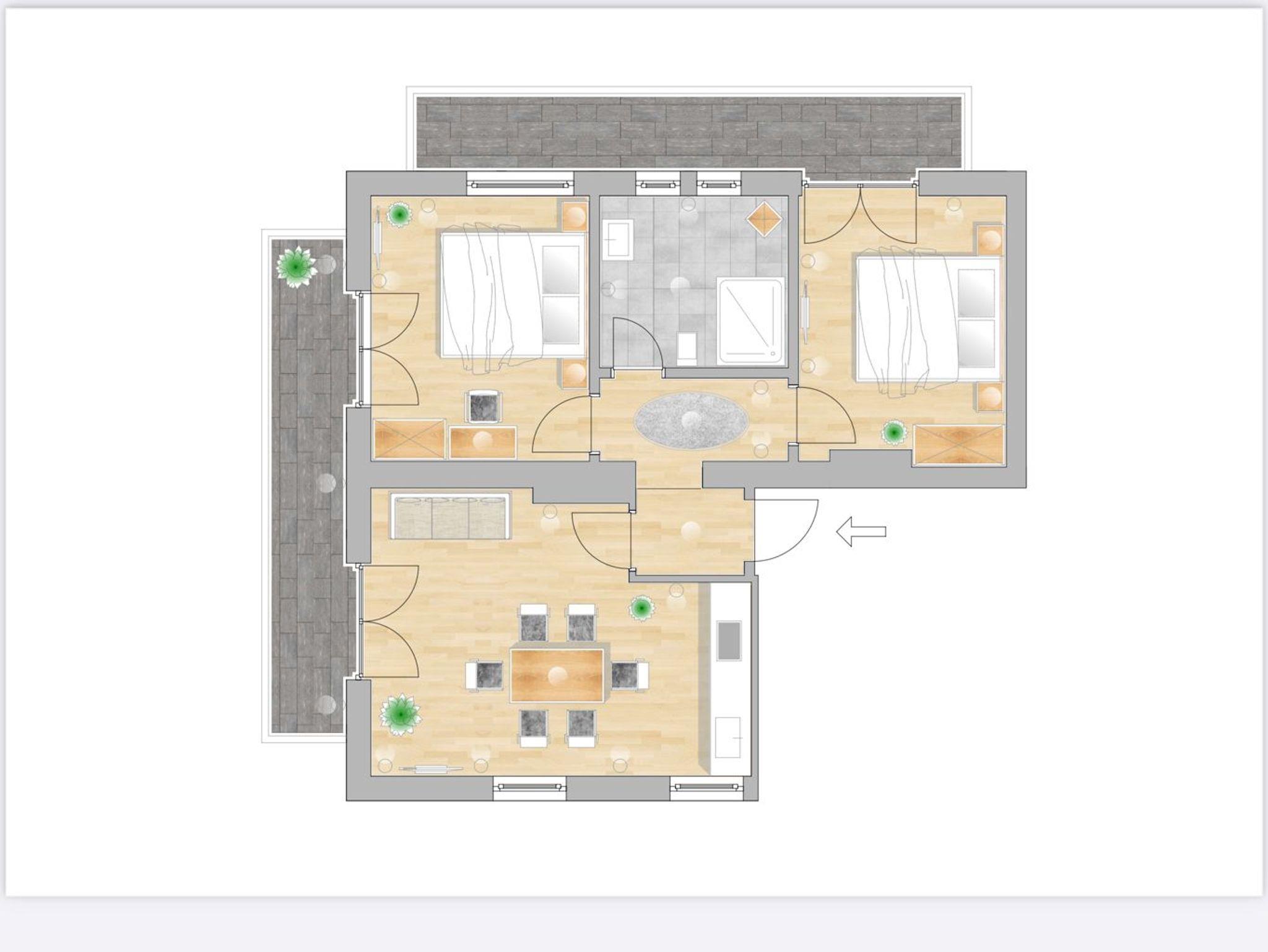 Das Appartement (ca. 60 m2) verfügt über zwei getrennte Schlafzimmer mit jeweils 2 Einzelbetten, einem Wohn/Essbereich mit voll ausgestatteter Küche einem Bad und einem Vorraum.Das Appartement hat einen schönen Balkon mit traumhaftem Ausblick auf die Schlossalm. Erholen Sie sich in den im alpinen Lifestyle ausgestatteten und nach Westen ausgerichteten Appartement.