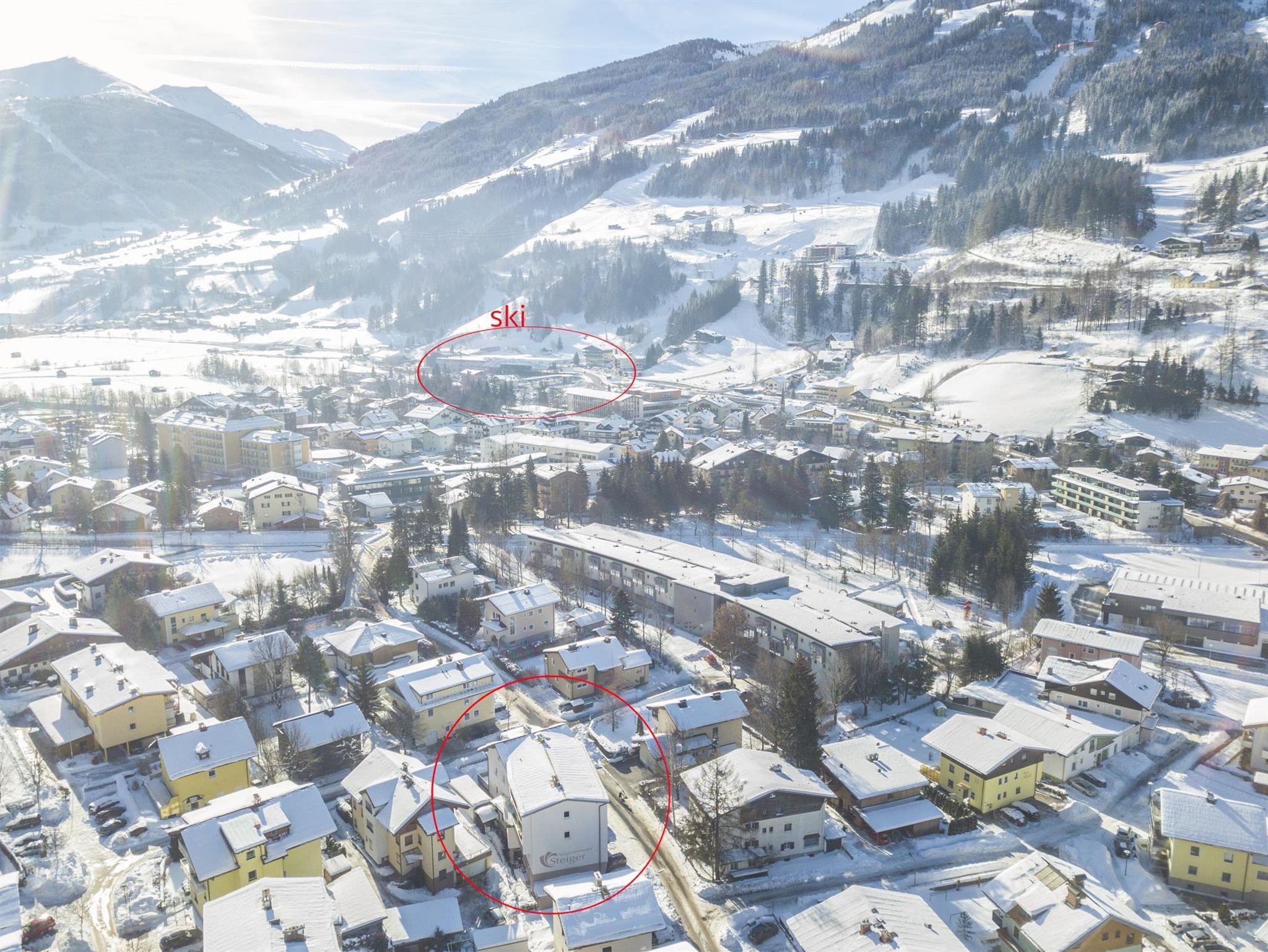 Modern und zentral: Im Herzen von Bad Hofgastein lädt das komplett renovierte Appartementhaus Steiger zum Urlauben ein. Skibushaltestelle vor dem Haus, Ortskern und Skilift fußläufig erreichbar (etwa 250 m) - der ideale Ausgangspunkt für einen unvergesslichen Winterurlaub! Geschäfte, Bäcker, Post und die Gasteiner Bergbahnen befinden sich in unmittelbarer Nähe, die Alpentherme Gastein ebenfalls.