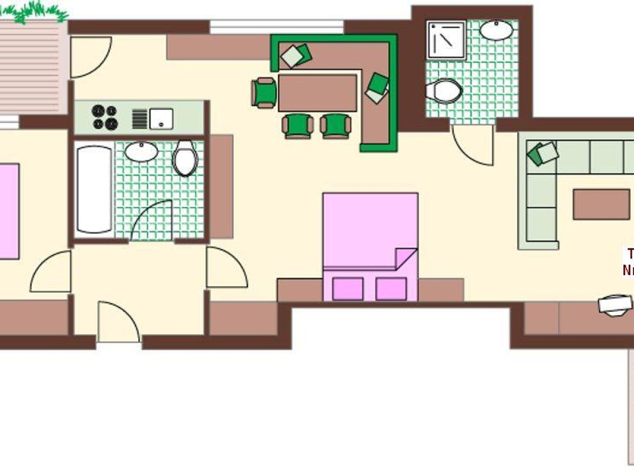 Die Wohnung Nr. 21 ist ein Zweiraumappartement mit 53 qm. Die Wohnung verfügt über ein Schlafzimmer (Doppelbett plus Kinderbett), einen Wohnschlafraum (Doppelbett, zwei Einzelcouchen), zwei Bäder (Bad/WC, Dusche/WC), Balkon und kl. Dachterrasse. Der Wohnschlafraum umfasst eine komplett eingerichtete Küchenzeile mit gemütlichem Essplatz und eine Sitzgarnitur.