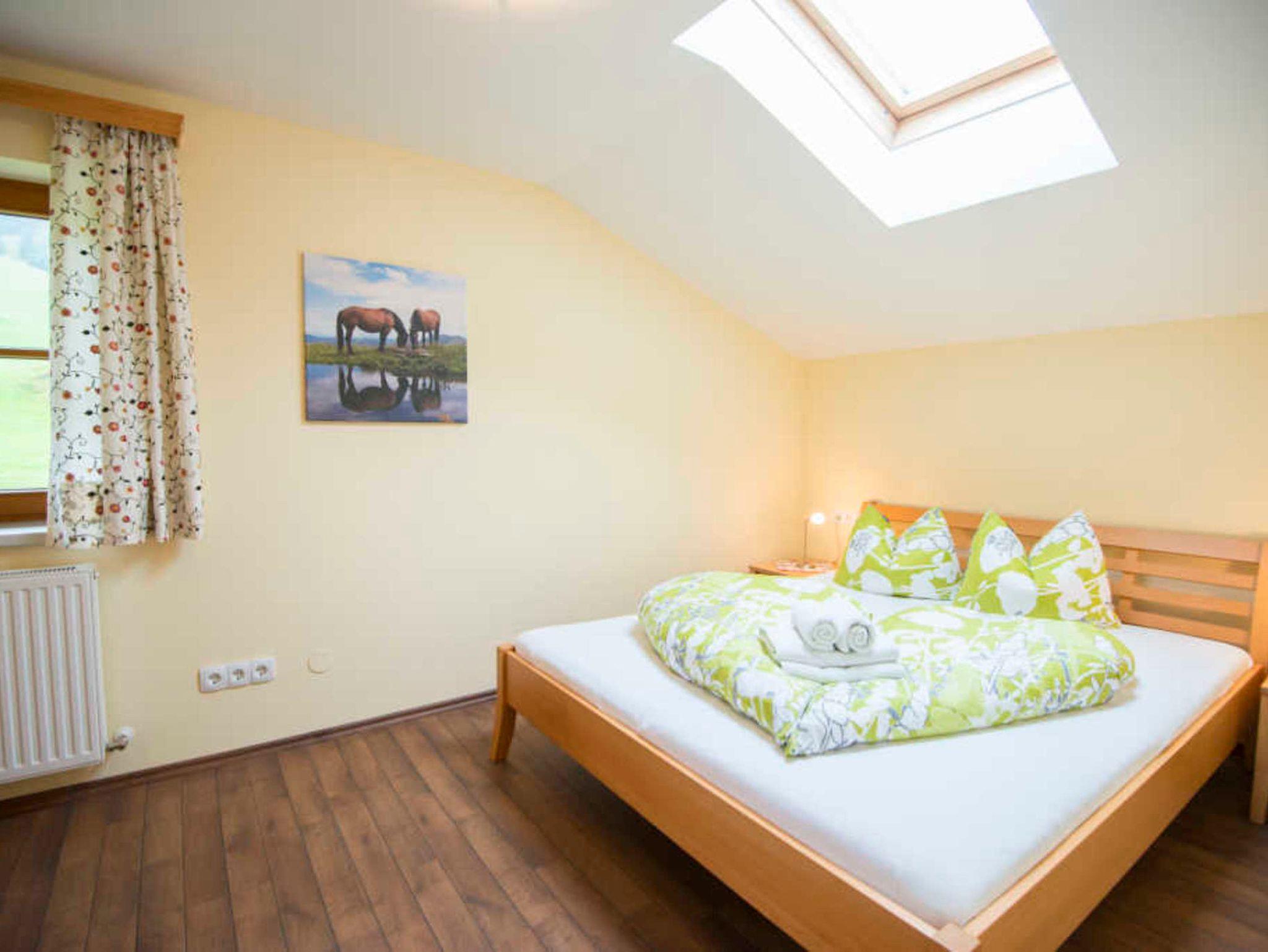 Diese Wohnung mit Balkon für 4-6 Personen mit 58 m² verfügt über zwei Schlafzimmer mit Doppelbett, einen Vorraum mit Garderobe, einem Bad mit Dusche/WC sowie über eine gut ausgestattete Küche mit gemütlicher Sitzecke. Die Küche ist mit Geschirrspüler, Kühlschrank mit Gefrierschrank, E-Herd mit Backofen, Ceran-Kochfeldern und Dunstabzug, Mikrowelle, Wasserkocher, Kaffeemaschine, Stabmixer... ausgestattet. Kochutensilien und Geschirr ist vorhanden sowie ein CD-Player mit Radio und USB-Anschluss. Bettwäsche, Hand- und Badetücher sind im Preis inkludiert. Gratis WLAN. Kleinkindausstattung auf Anfrage. Frühstückskorb mit hofeigenen Produkten gegen Aufpreis möglich.