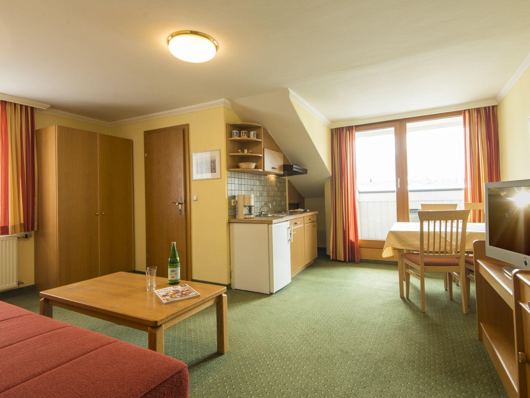 Appartement ca. 40m² bestehend aus einem Wohnraum mit ausziehbarer Couch, Essecke, Kochnische, 1 Schlafzimmer, Bad/WC, Balkon
