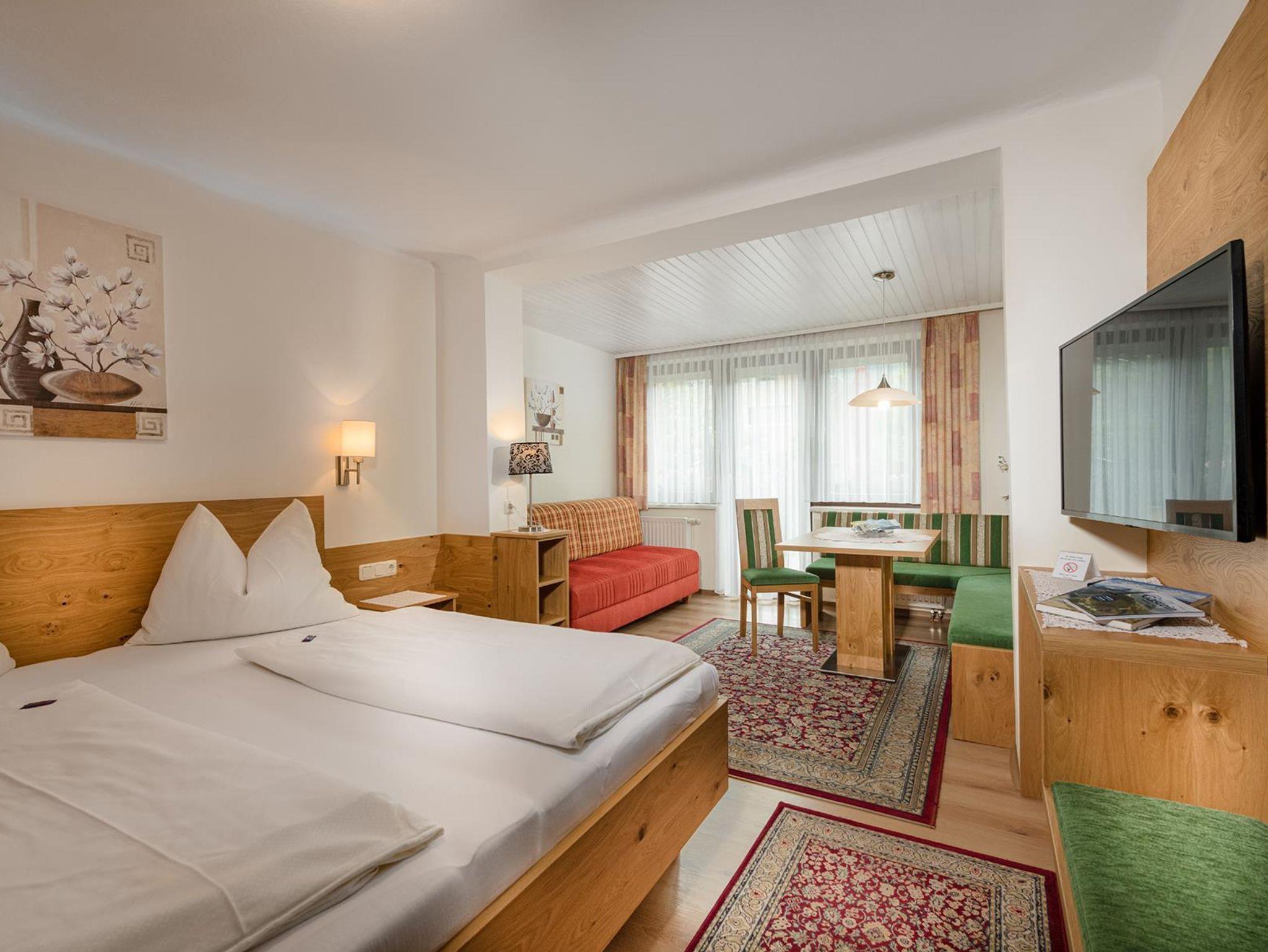 Liebevoll eingerichtetes Doppelzimmer mit DU/WC, Haarfön, Flachbild-TV, Safe, Telefon, Balkon, Loggia oder Terrasse. Einige Zimmer verfügen über eine zusätzliche Schlafcouch für eine 3. Person oder Kind.
