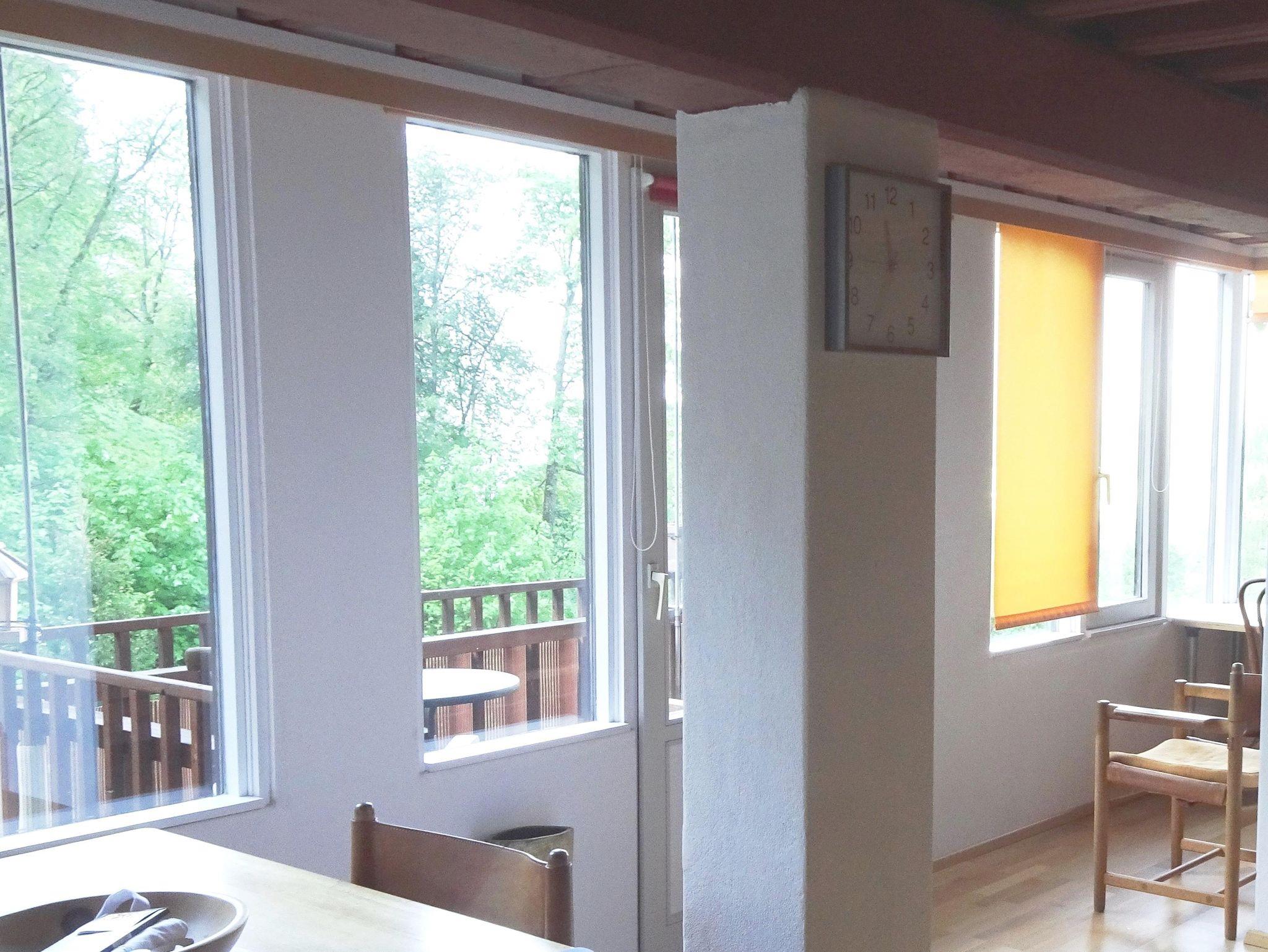 Die vom Architekten gestalteten Räume spielen mit persönlichem Flair, wie handgemalte Bilder , offen gestalteter Küche in kompletter Ausstattung und dem angrenzenden großen Esstisch für gesellige Abende, auch in größerer Runde. Am großen, offenen Kamin in der Raummitte lodert und