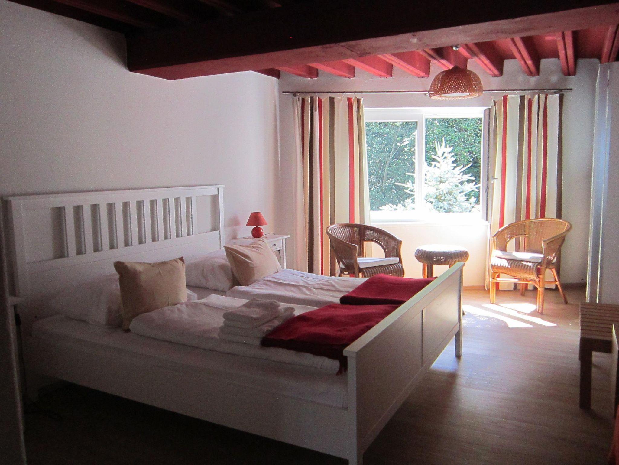 Wir bieten Ihnen 4 Schlafzimmer für 8 bis 10 Personen. Ein Schlafzimmer mit Doppelbett und ein Stockbett für ihre Kinder. Zwei Zimmer mit Doppelbetten und ein Zimmer mit Stockbett, besonders beliebt bei der jüngeren Generation. Im 1. Stock befindet sich ein Bad, sowie in jedem Zimmer ein eigenes Waschbecken. Auf beiden Wohnebenen befindet sich ein WC. Im Untergeschoss ist ein kleiner Ski-Stall.