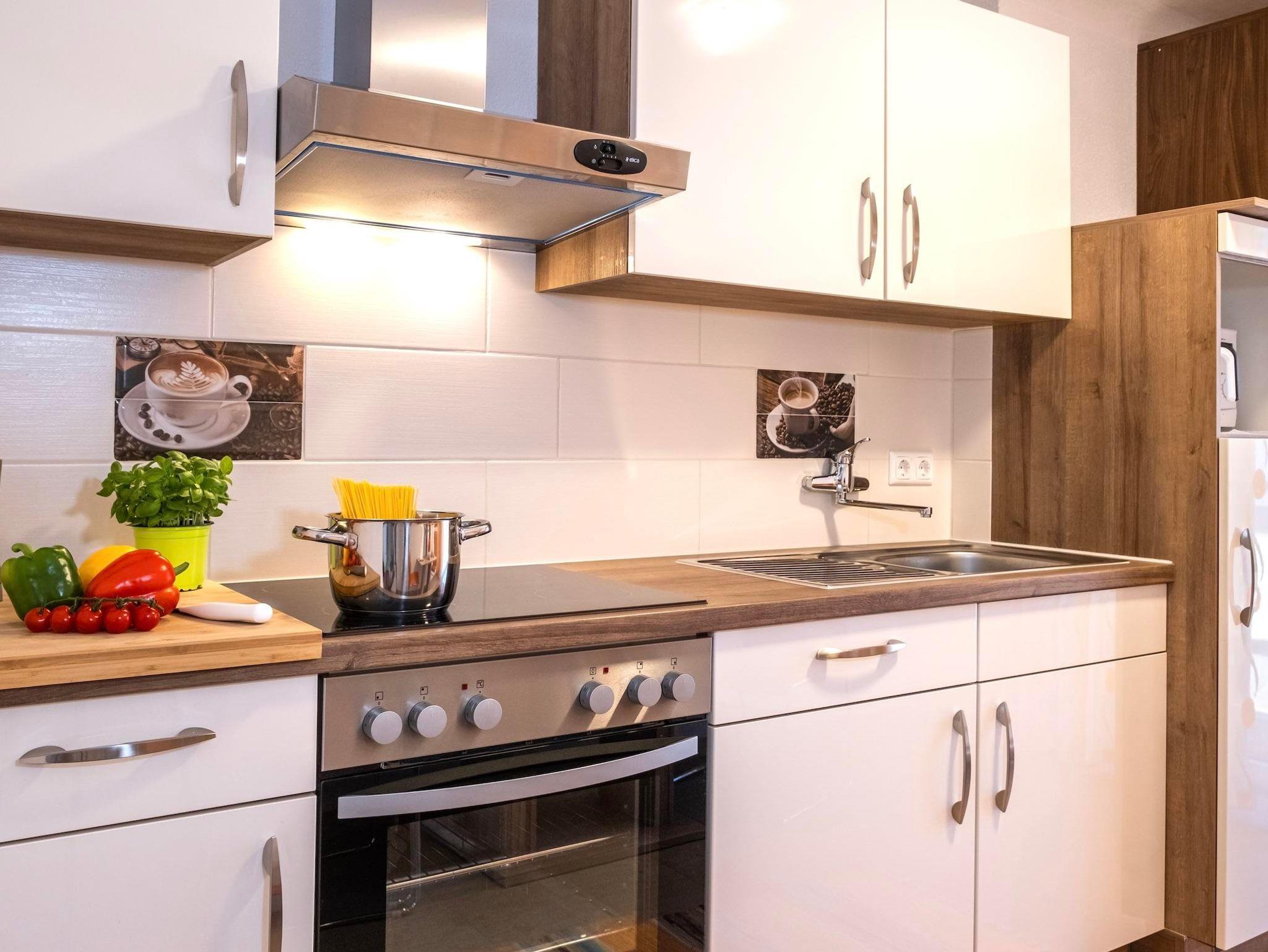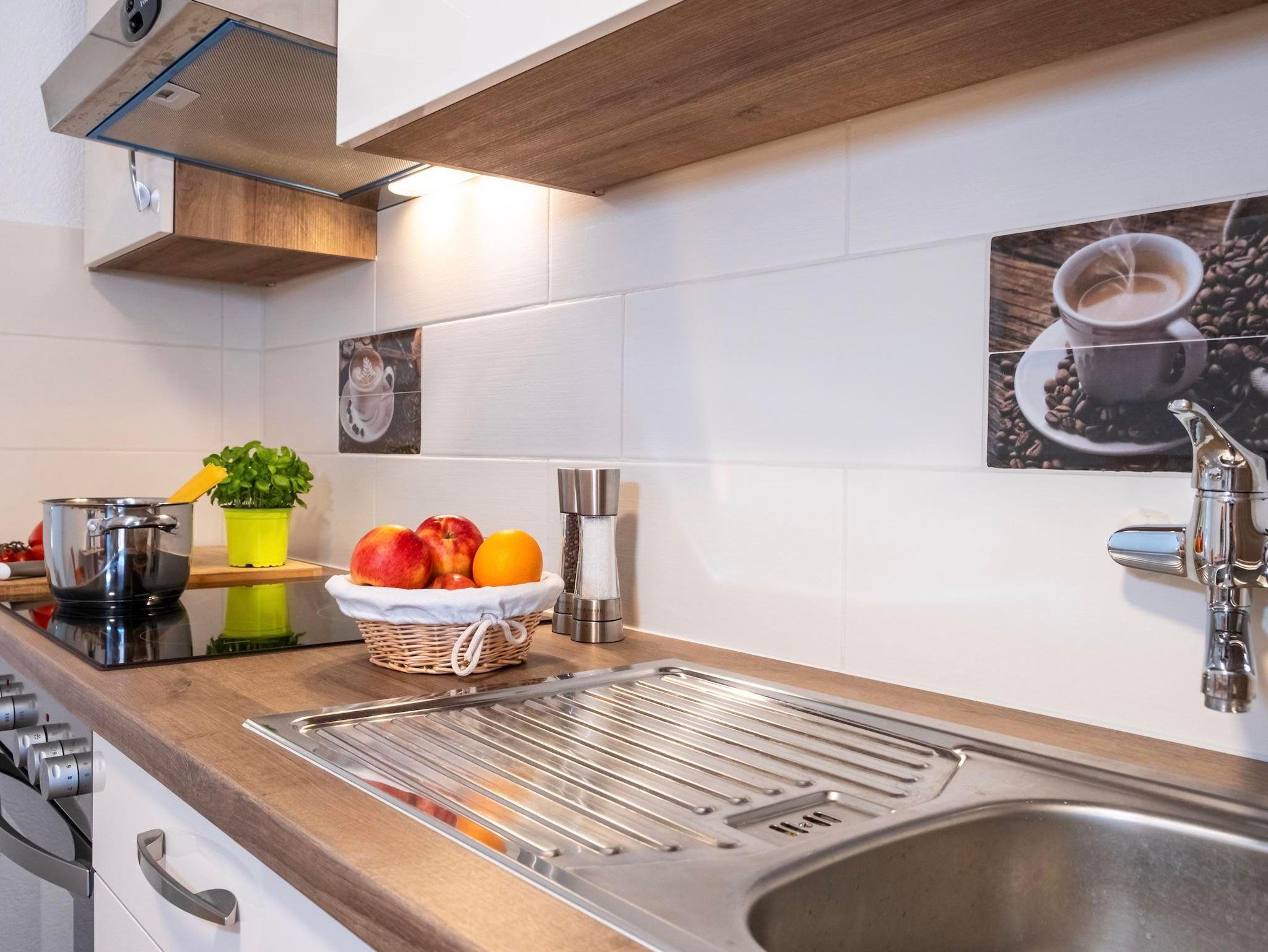 Die Ferienwohnung bietet ein Schlafzimmer mit einem Kingsize-Doppelbett, eine komplett ausgestattete Küche mit allen nötigen Kochutensilien (inkl. Mikrowelle, Backofen, Wasserkocher, Kaffeemaschine), sowie ein eigenes Badezimmer mit einer Duschkabine, Handtuchtrockner und Föhn.